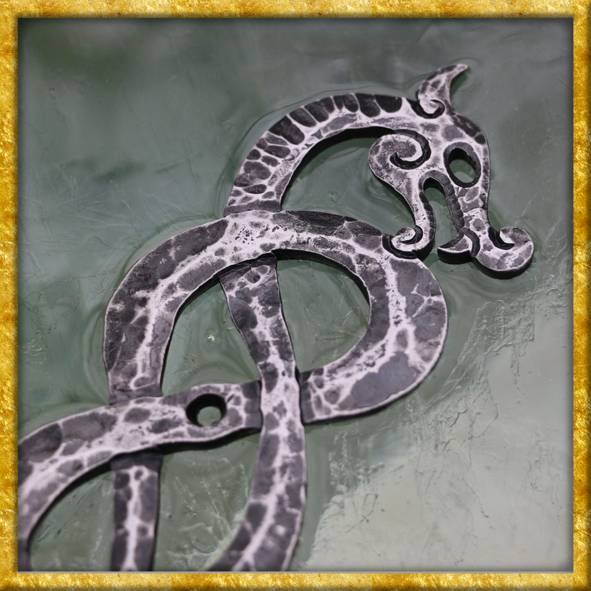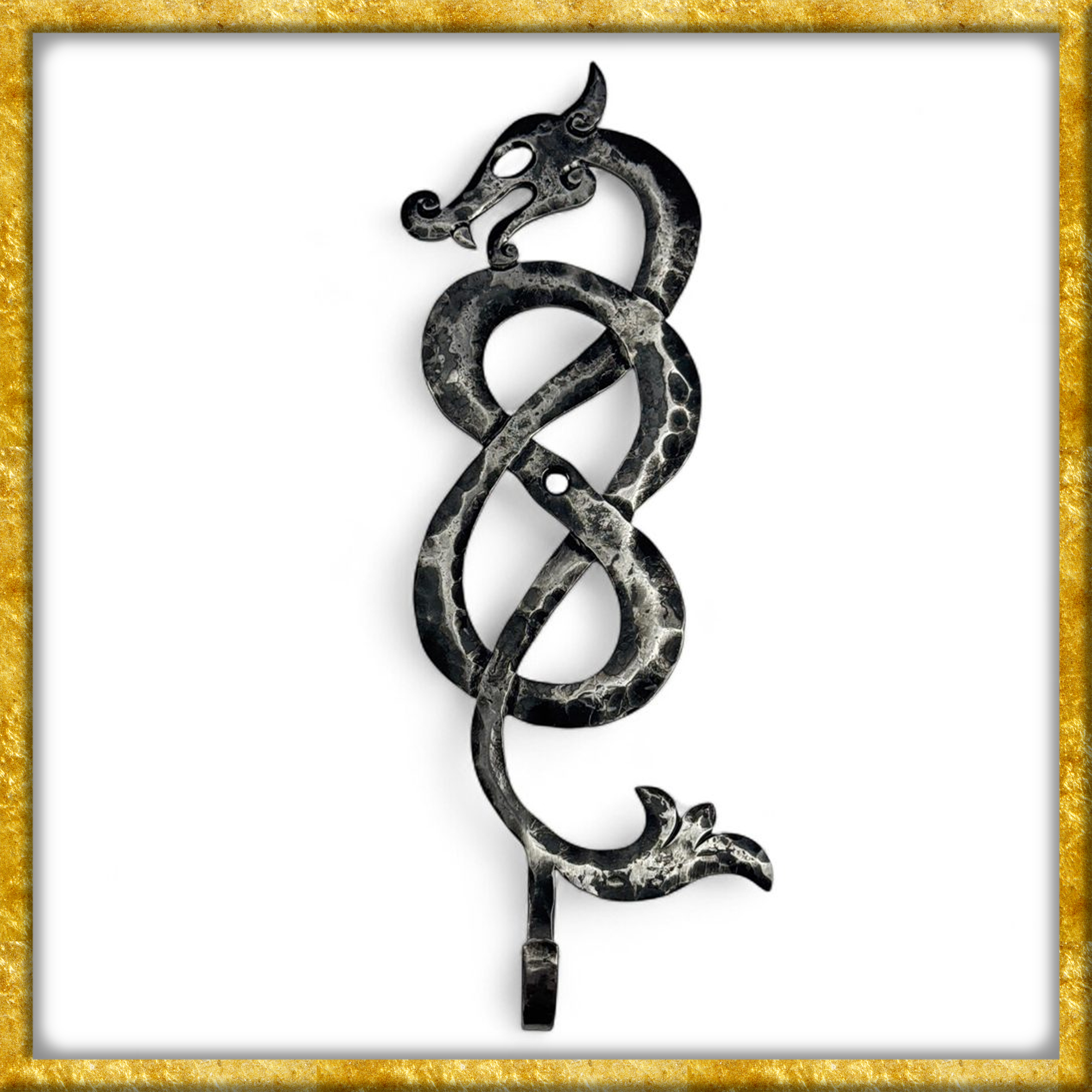Der geschmiedete Drache als Wandhaken kann mittels Schraube oder Nagel an einer Wand oder einem Balken befestigt werden. Der Haken wird sicherlich gefallen und lässt alle wissen, dass ein Wikinger im Haus wohnt. Durch sein einzigartiges Design eignet sich dieser Haken nicht nur hervorragend als Requisit für rustikal-historische Veranstaltungen wie Mittelaltermärkte/-lager und Reenactment-, Living History- oder Larp-Events, sondern auch perfekt für Euer Zuhause.