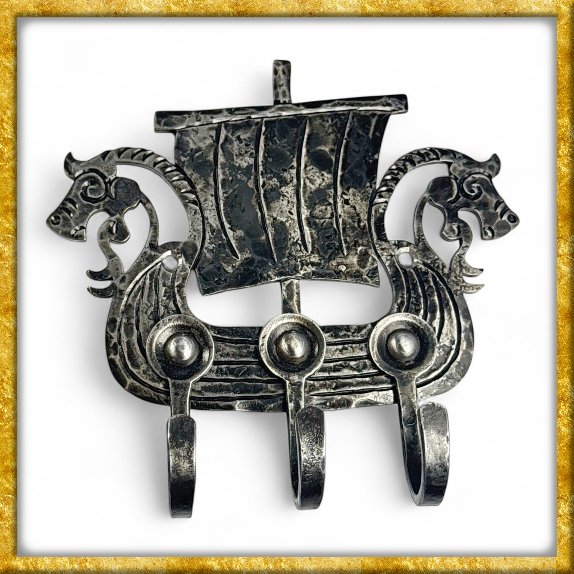 Dieses geschmiedete Wikingeschiff kann als Wandhaken mittels Schraube oder Nagel an einer Wand oder einem Balken befestigt werden. Der Haken wird sicherlich gefallen und lässt alle wissen, dass ein Wikinger im Haus wohnt. Durch sein einzigartiges Design eignet sich dieser Haken nicht nur hervorragend als Requisit für rustikal-historische Veranstaltungen wie Mittelaltermärkte/-lager und Reenactment-, Living History- oder Larp-Events, sondern auch perfekt für Euer Zuhause.