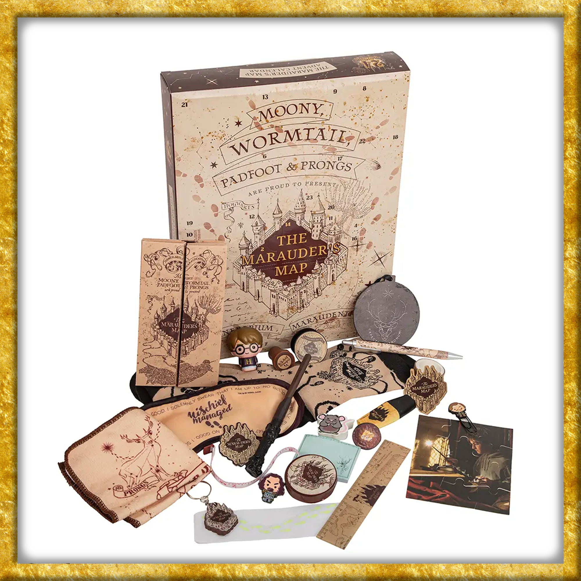 Offiziell lizenzierter Adventskalender mit 24 Geschenkartikeln zum Thema Harry Potter in Form der Karte des Rumtreibers. Enthalten sind unter anderem Socken, Textmarker, Aufkleber, Karte des Rumtreibers, Büroklammer, Anstecker, Notizblock, Gummi-Schlüsselanhänger, Kinderstempel, Lineal, Stift, Radiergummi, Schlafmaske, Pin, Puzzle, Massband, Weihnachtsdekoration, Magnet, Handtuch, Zauberstab-Stift, Washi-Tape, PopSocket, Gewebter Aufnäher, Squishy. Ein wundervolles Geschenk für alle kleinen und grossen Harry Potter Fans.