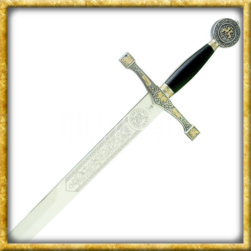 Dies ist das Schwert Excalibur in der Originalreplik aus den Filmen. Mit diesem Schwert wird ein Original-Zertifikat vom spanischen Hersteller Marto geliefert.