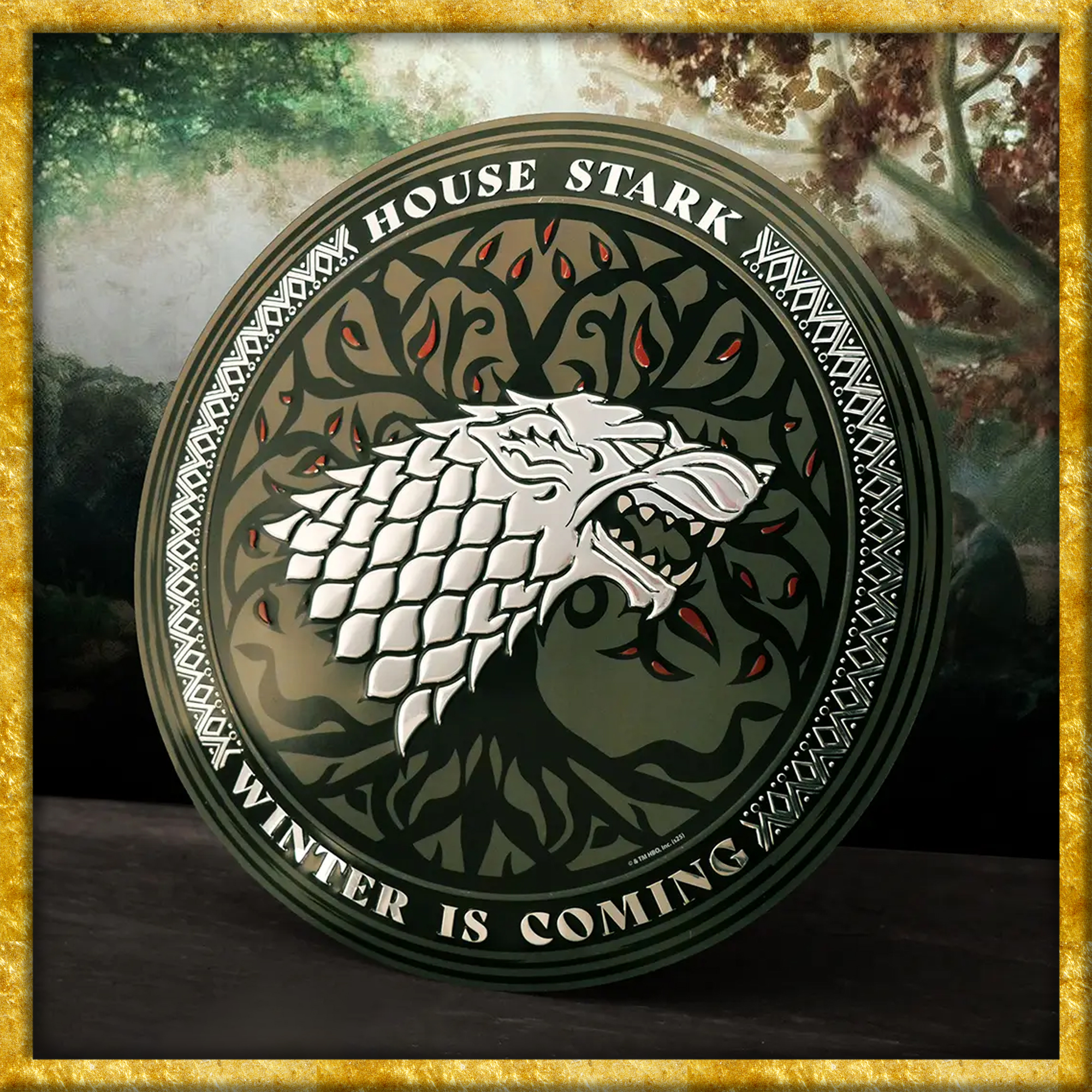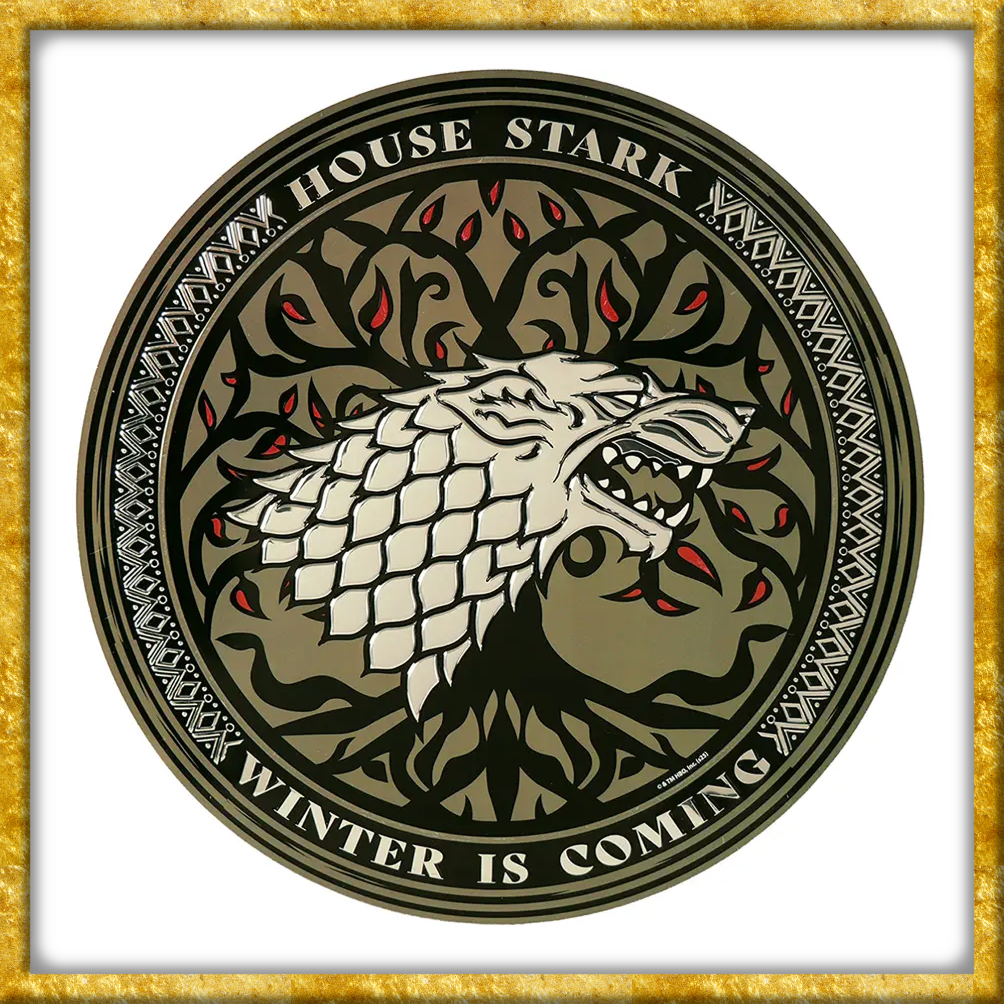 Verleiht Eurem Zuhause eine originelle Note mit dieser dekorativen Metallplakette, welche das Familienwappen des Hauses Stark aus Game of Thrones abbildet. Diese offiziell lizenzierte Plakette ist rund, mit einem Durchmesser von 30cm erhältlich und besteht aus Aluminium. Die Plakette lässt sich leicht anbringen, entweder mit dem mitgelieferten doppelseitigen Klebeband an der Wand oder einfach auf einem Regal oder Schreibtisch. Diese robuste, stilvollen und preisgünstigen Plakette bietet eine erschwingliche, originelle Dekoration, perfekt für Fans und Liebhaber der Familie Stark.