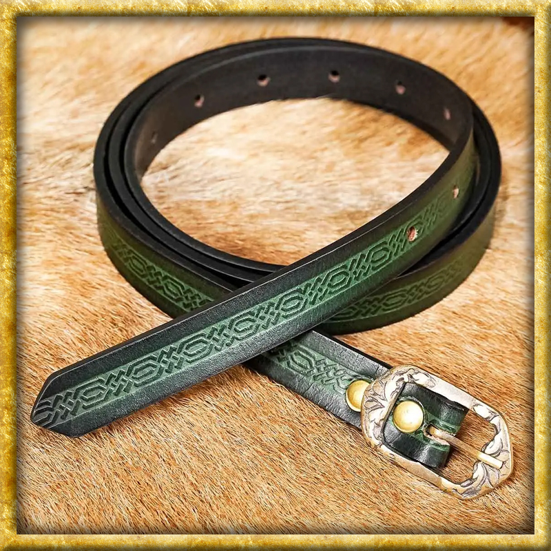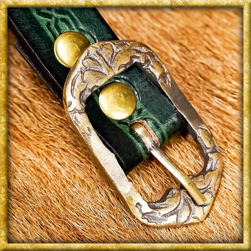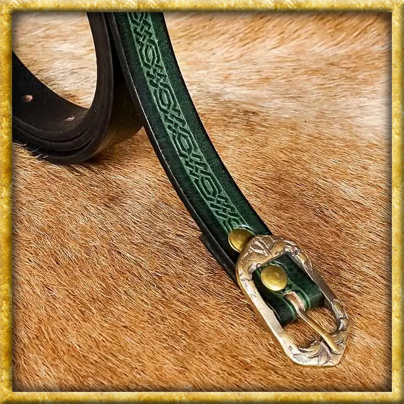 Dieser aus echtem Büffelleder in Handarbeit hergestellte Mittelaltergürtel ist in verschiedenen Längen und Farben verfügbar. Der Gürtel verfügt über schöne, mittelalterliche Prägungen sowie eine antike Schnalle aus Bronze, welche ebenfalls verziert ist. Dieser Gürtel passt zu LARP-Charakteren und Cosplay-Kostümen gleichermassen wie zu einem coolen, modernen Outfit.