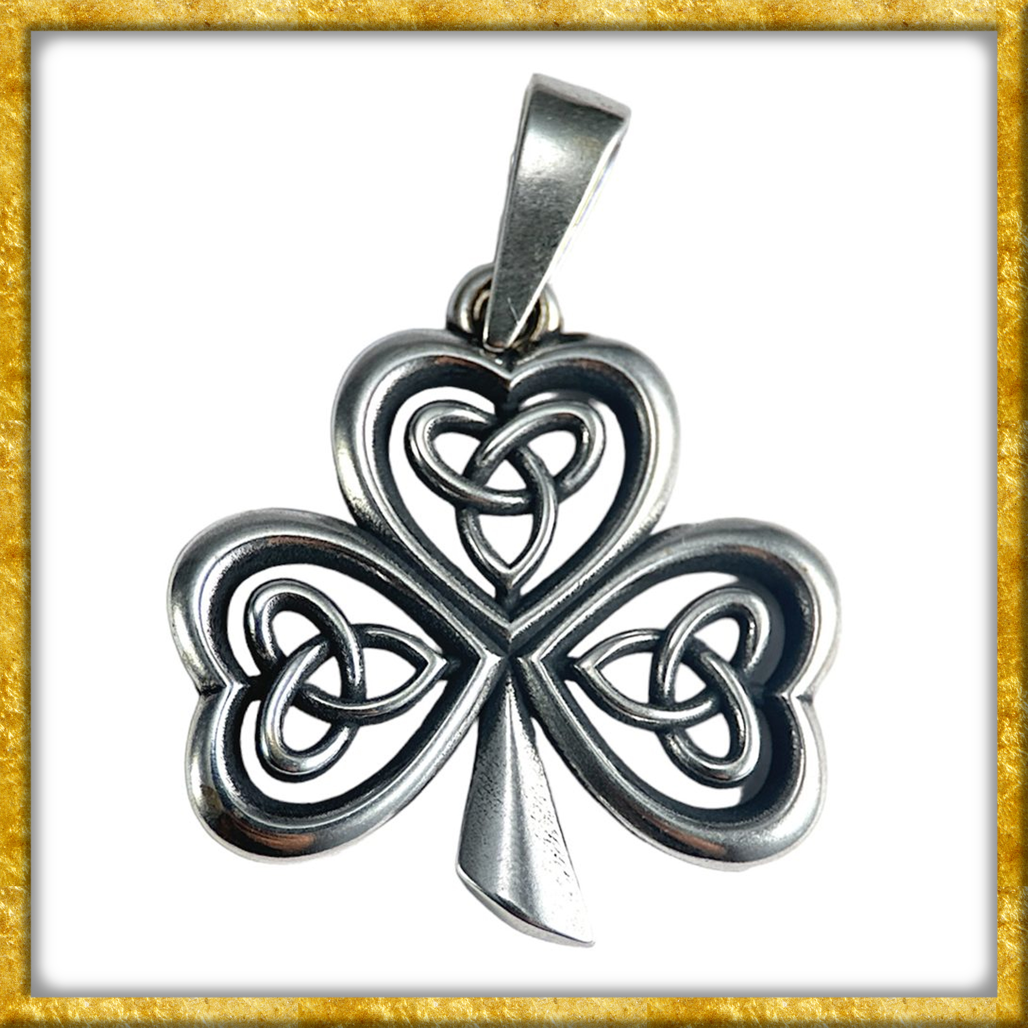 Das irische Kleeblatt, bekannt als Shamrock, ist das nationale Symbol Irlands und ein Symbol für den irischen Stolz. Die grüne Farbe des Kleeblatts ist heute das Symbol Irlands und bei irischen Festen auf der ganzen Welt allgegenwärtig. Der aus Sterlingsilber gefertigte Anhänger strahlt ebenfalls den Stolz der Iren aus. Dank seiner Grösse von ca. 2,6cm x 3,5cm und einem ungefähren Gewicht von 4g, bietet der Anhänger einen optimalen Tragekomfort und verkörpert schlichte Eleganz, was einige Blicke auf sich ziehen wird.