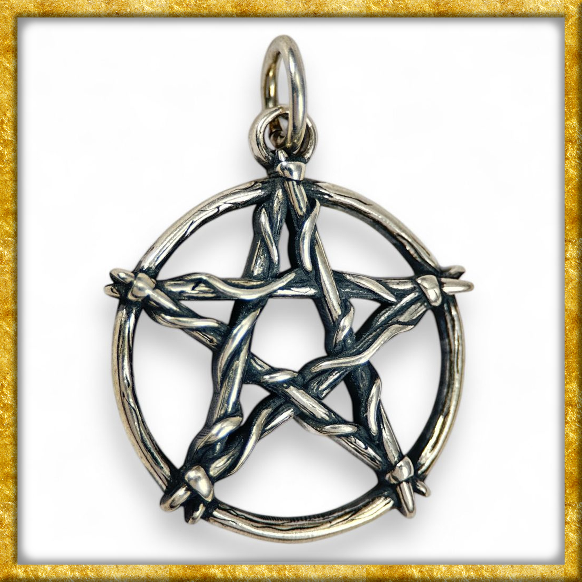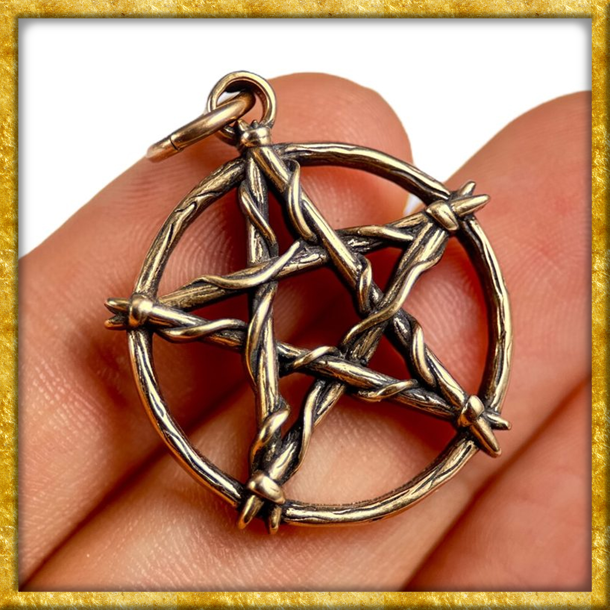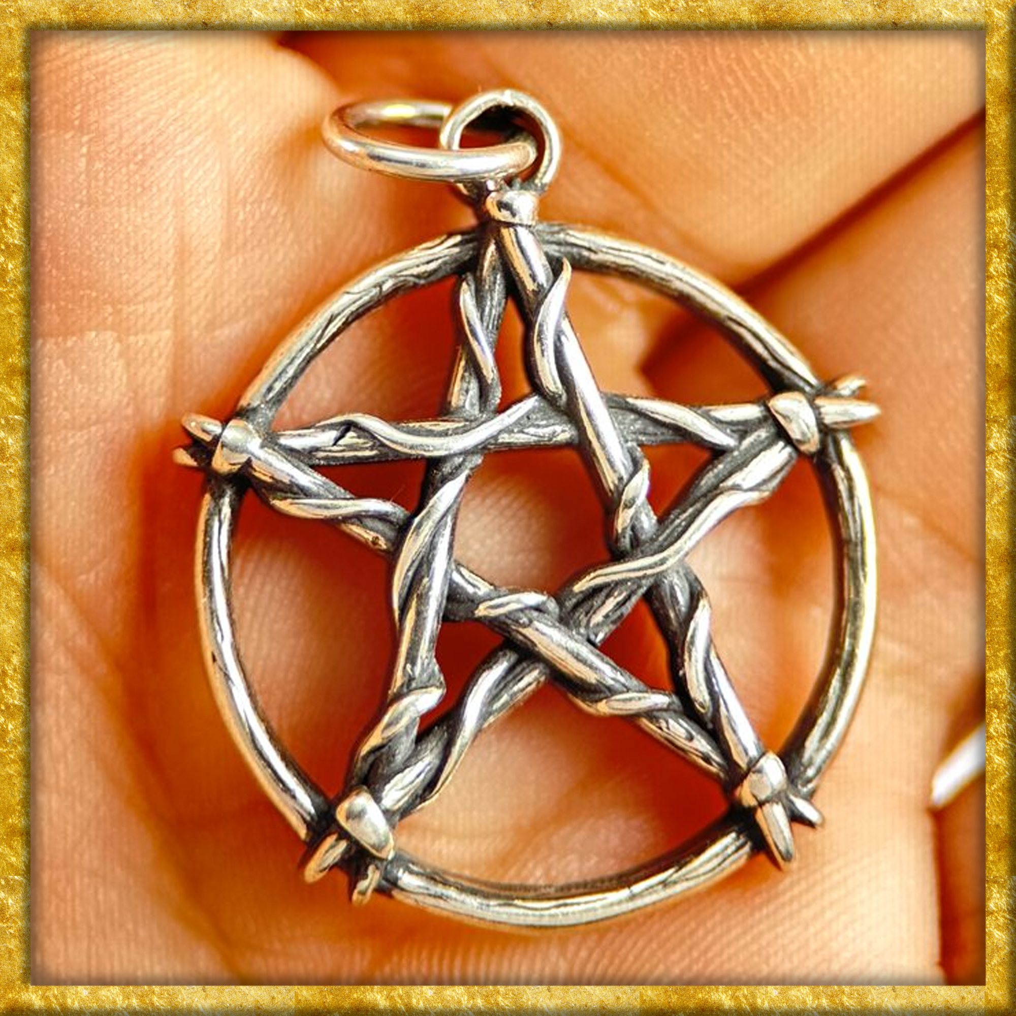 Dieser ausdrucksstarke Anhänger aus hochwertigem 925er Sterlingsilber oder edler Bronze zeigt eines der ältesten und kraftvollsten Symbole der Menschheitsgeschichte. Das kunstvoll umschlungene Pentagram ruht harmonisch in einem Kreis und steht seit jeher für Schutz, Balance und die Verbindung der Elemente. In vielen mittelalterlichen Kulturen galt dieses Zeichen als mächtiges Schutzsymbol und als Ausdruck von Wissen, Naturverbundenheit und innerer Stärke.