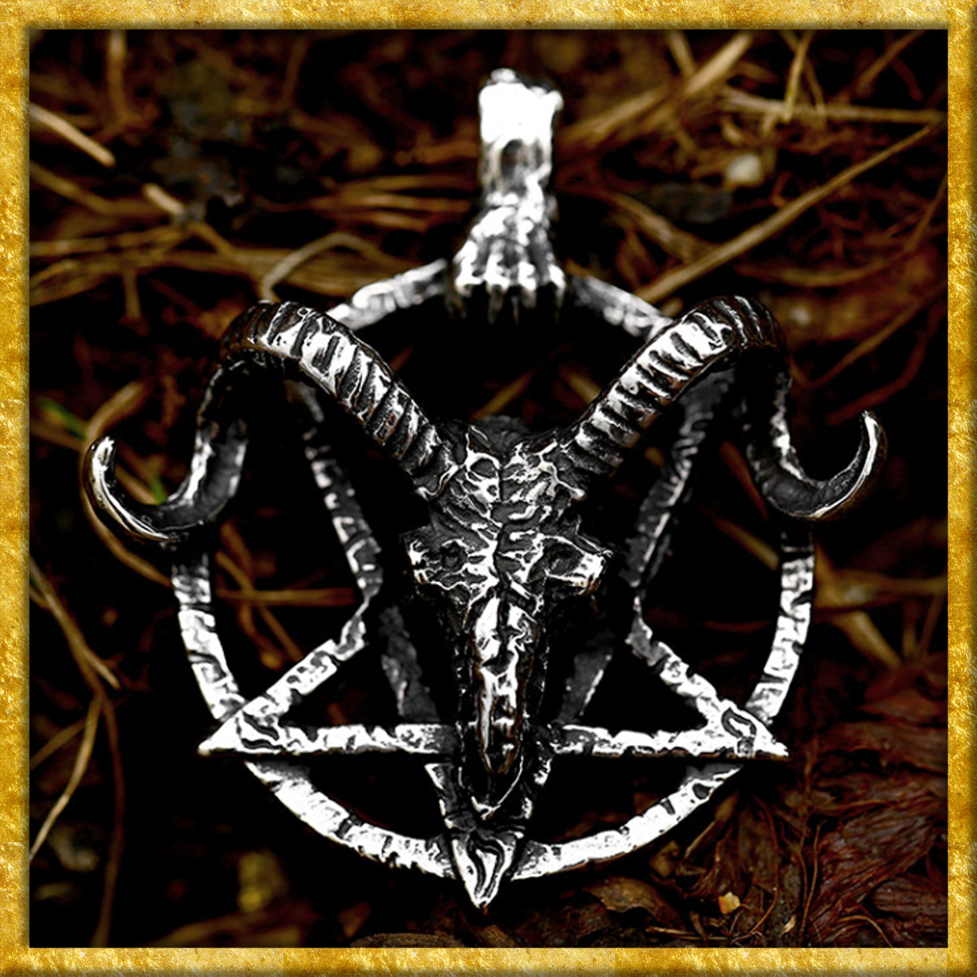 Dieser grosse und schwere Anhänger ist ein echtes Statement für alle, die dunkle Symbolik und ausdrucksstarken Schmuck lieben. Im Zentrum steht ein kraftvolles Pentagramm, in dessen Mitte ein dämonischer Schädel thront. Die Kombination aus Symbol und Motiv verleiht dem Anhänger eine mystische, leicht bedrohliche Ausstrahlung und macht ihn zu einem Blickfang mit klarer Haltung.