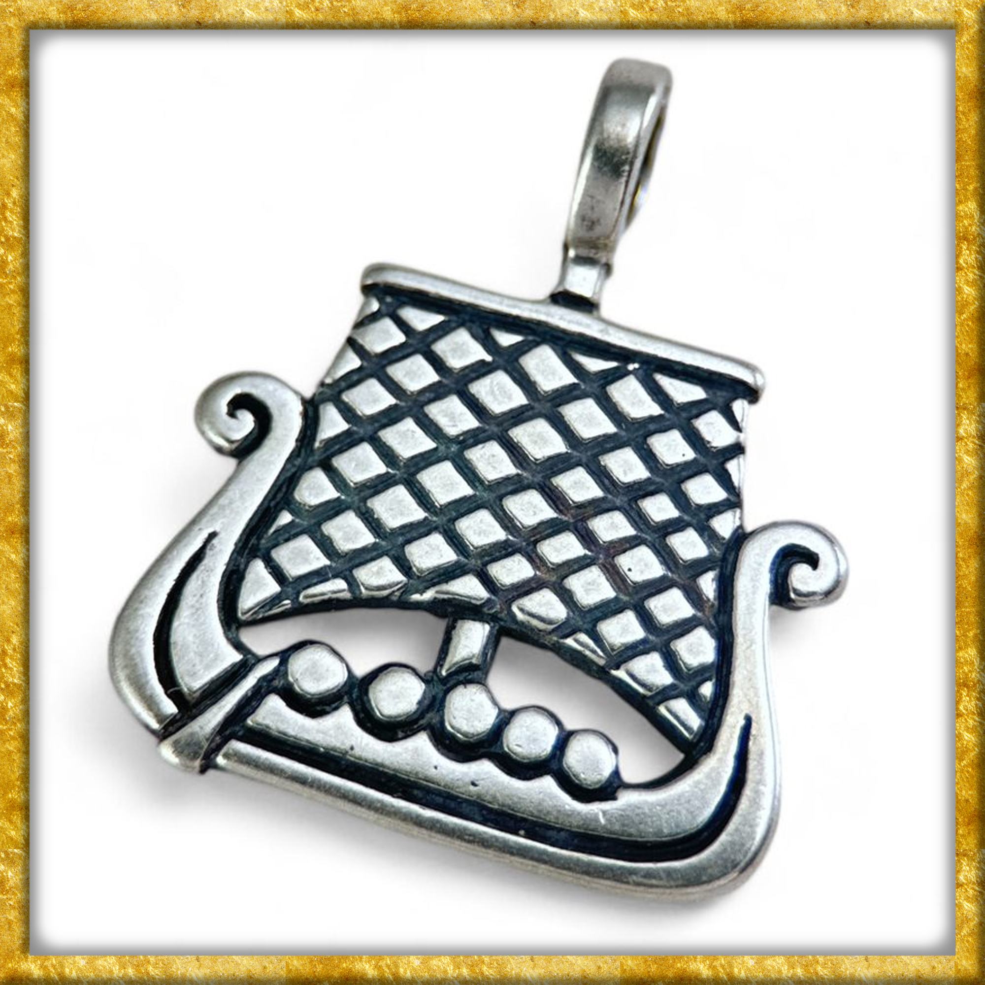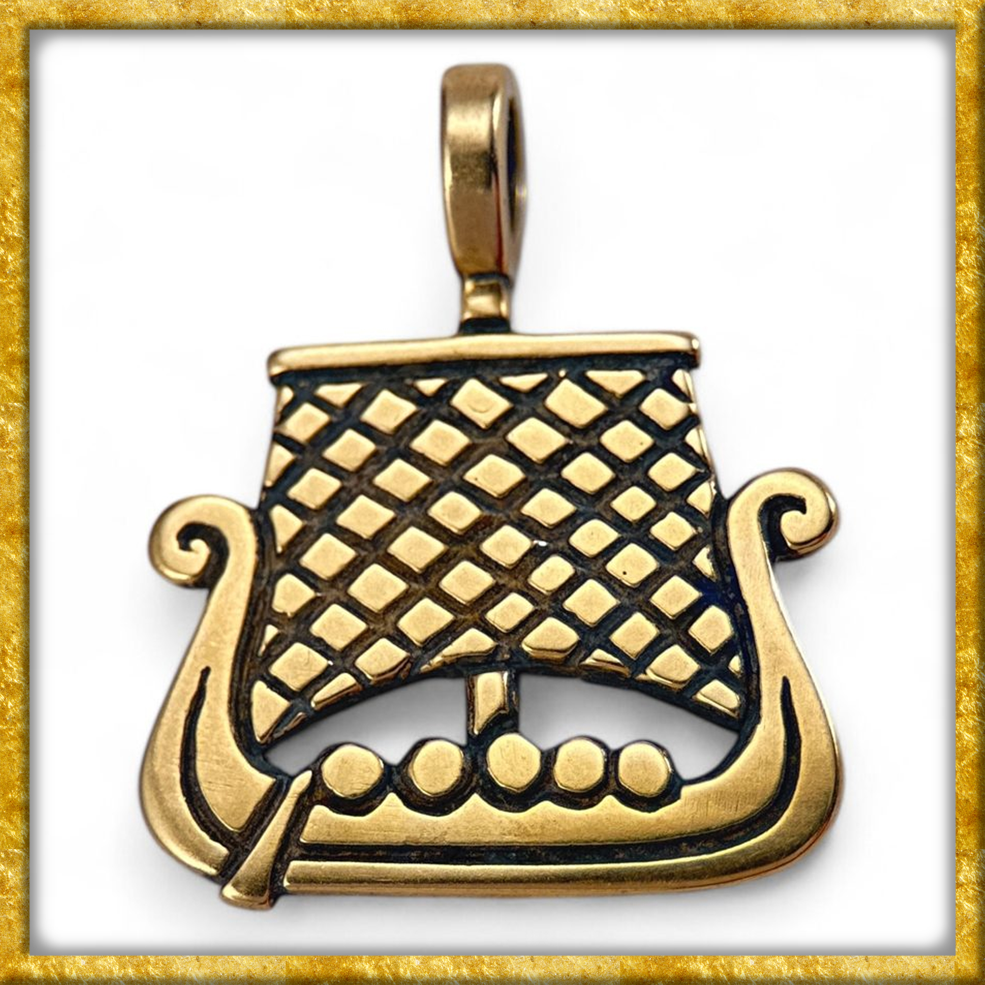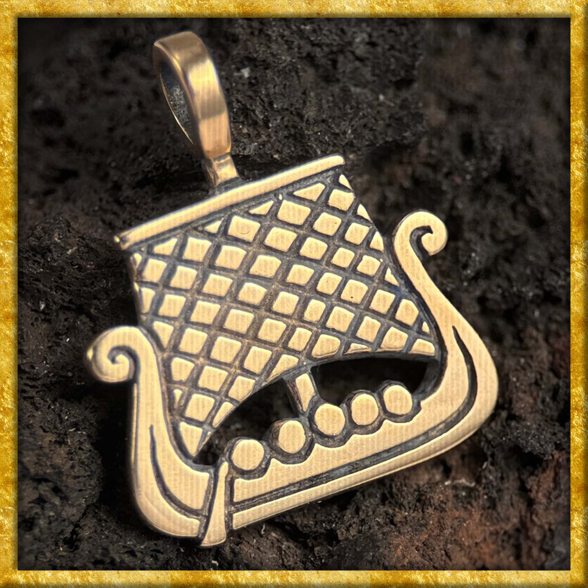 Dieser Wikinger-Schiff Anhänger aus Silber oder Bronze ist ein Symbol für Reise, Freiheit und nordischen Geist. Der doppelseitige Wikinger-Schiff Anhänger trägt die Seele des Nordens in sich. Inspiriert von gravierten Bildsteinen aus vorwikingerzeitlichem und wikingerzeitlichem Skandinavien, erzählt er von Seefahrten, Entdeckerlust und dem Mut, neue Wege zu gehen.