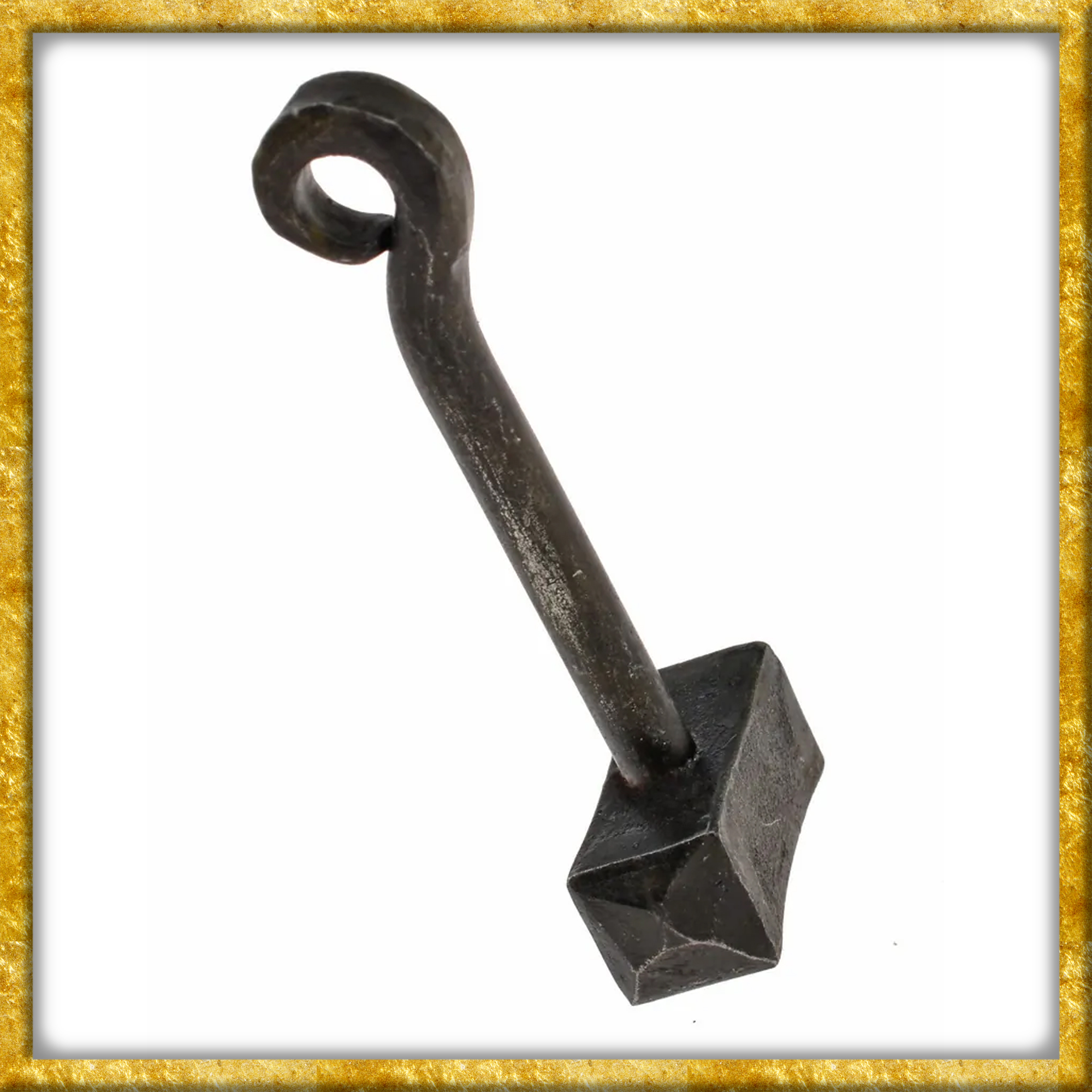 Dieser rustikale Anhänger aus Eisen wurde als historische Umsetzung einer zeitgenössischen Interpretation von Thors Hammer von Hand geschmiedet. Geschmiedete Hammer-Anhänger aus Eisen waren bereits in der Wikingerzeit weitverbreitet und als Symbol des nordischen Gottes Thor als Amulett sehr beliebt. Mit dem Tragen eines Hammer-Anhängers zeigte der Träger, dass er sich als Heide vom sich verbreitenden Christentum distanzierte. Thors Hammer wurde auch Mjölnir genannt, was Malmer oder Blitz bedeutete, denn er war der magische Kriegshammer des nordischen Gottes Thor, mit dem er die Riesen und die Midgardschlange am Ende der Welt bekämpfte.