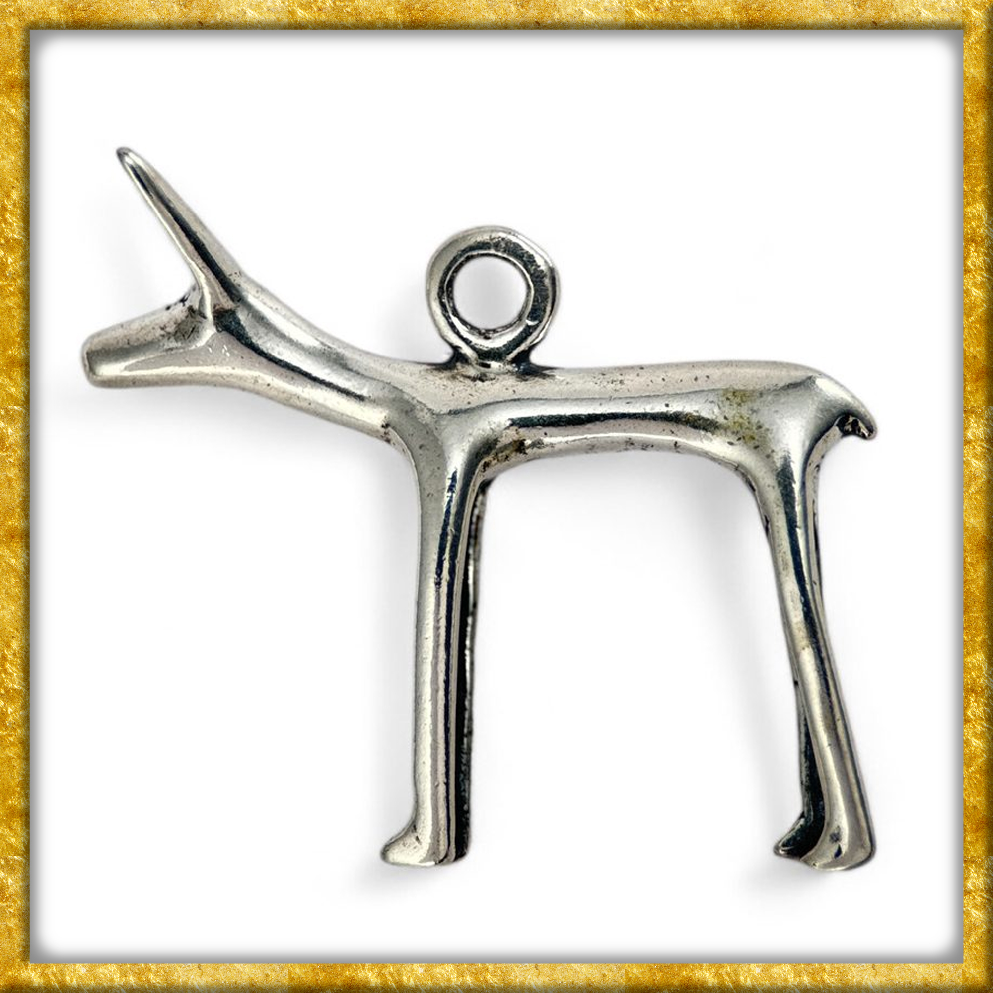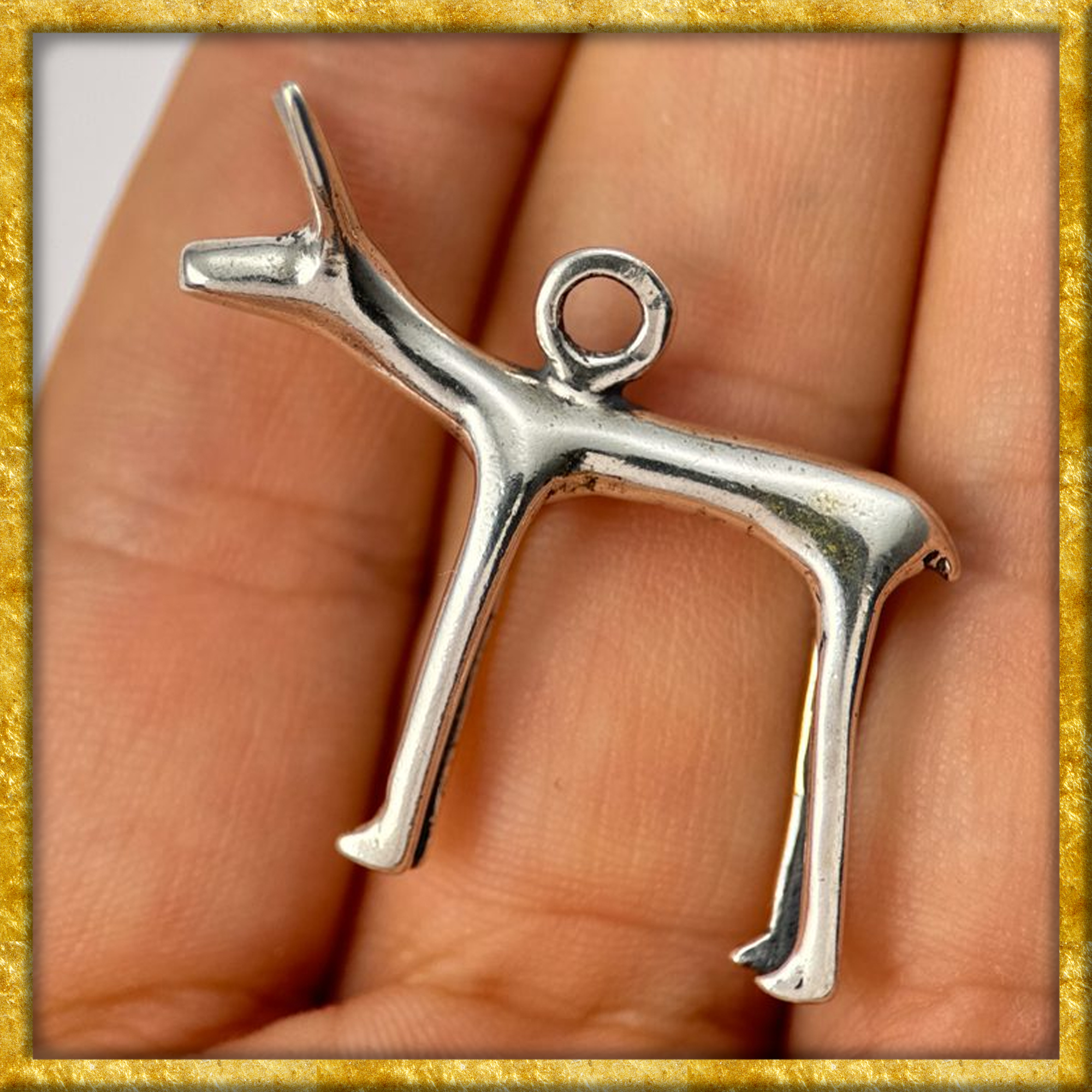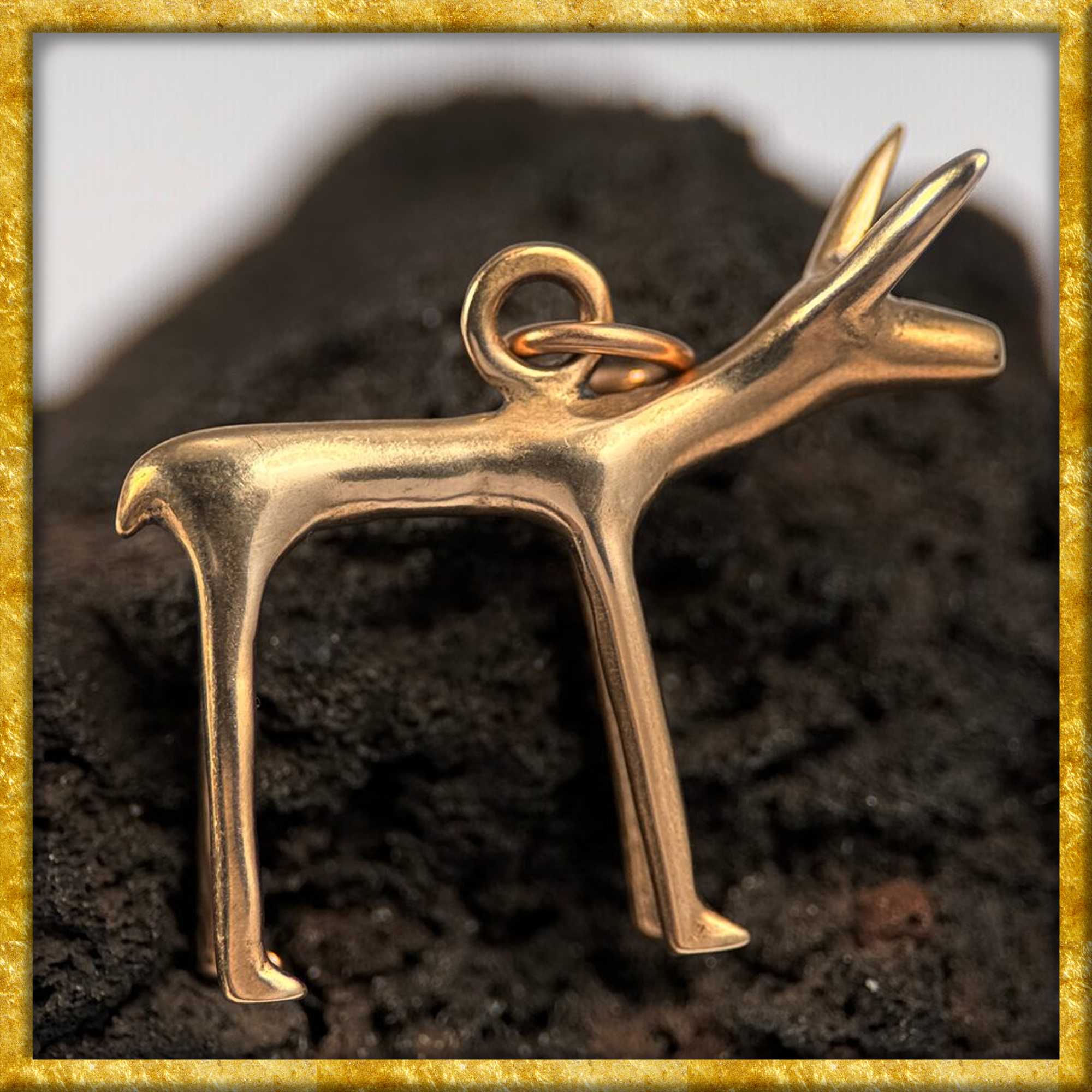 Dieser aussergewöhnliche Anhänger ist eine detailgetreue Replik eines keltischen Schmuckfundes aus dem 1. Jahrhundert v. Chr. und stammt aus dem bedeutenden Oppidum Stare Hradisko in Mähren. Das Motiv, je nach Deutung Hund oder Hirschkuh, steht in der keltischen Symbolwelt für Wachsamkeit, Treue, Schutz sowie für die enge Verbindung zur Natur und zur Anderswelt.