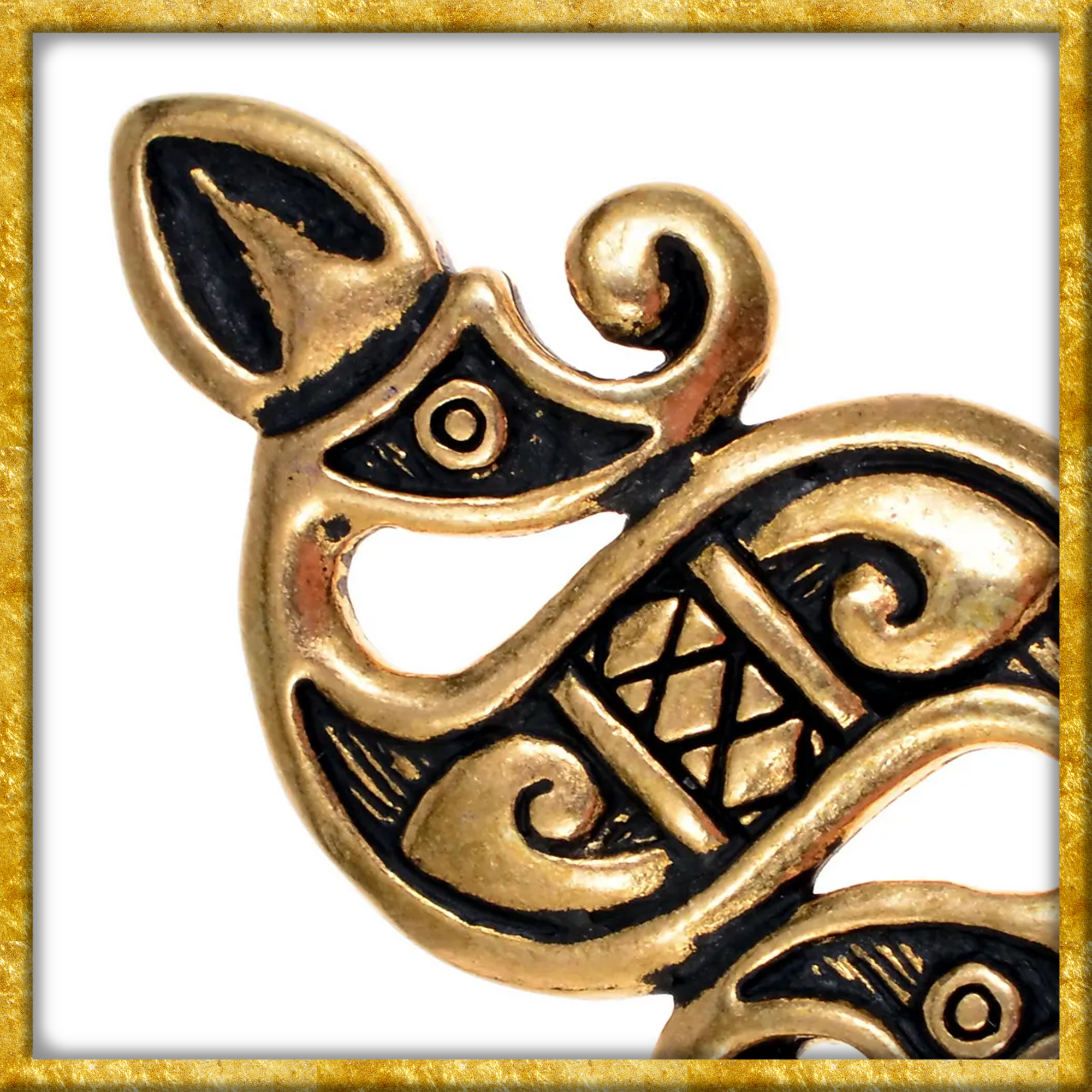 Dieses zierliche Seepferdchen-Amulett basiert auf dem Vorbild einer keltischen Dragonesque-Fibel aus dem 1. Jahrhundert n. Chr. Die seepferdchenförmige Dragonesque-Fibel verbreitete sich bei den keltischen Briten nach der römischen Eroberung Englands und vereint keltisches Kunstverständnis mit römischen Einflüssen.
