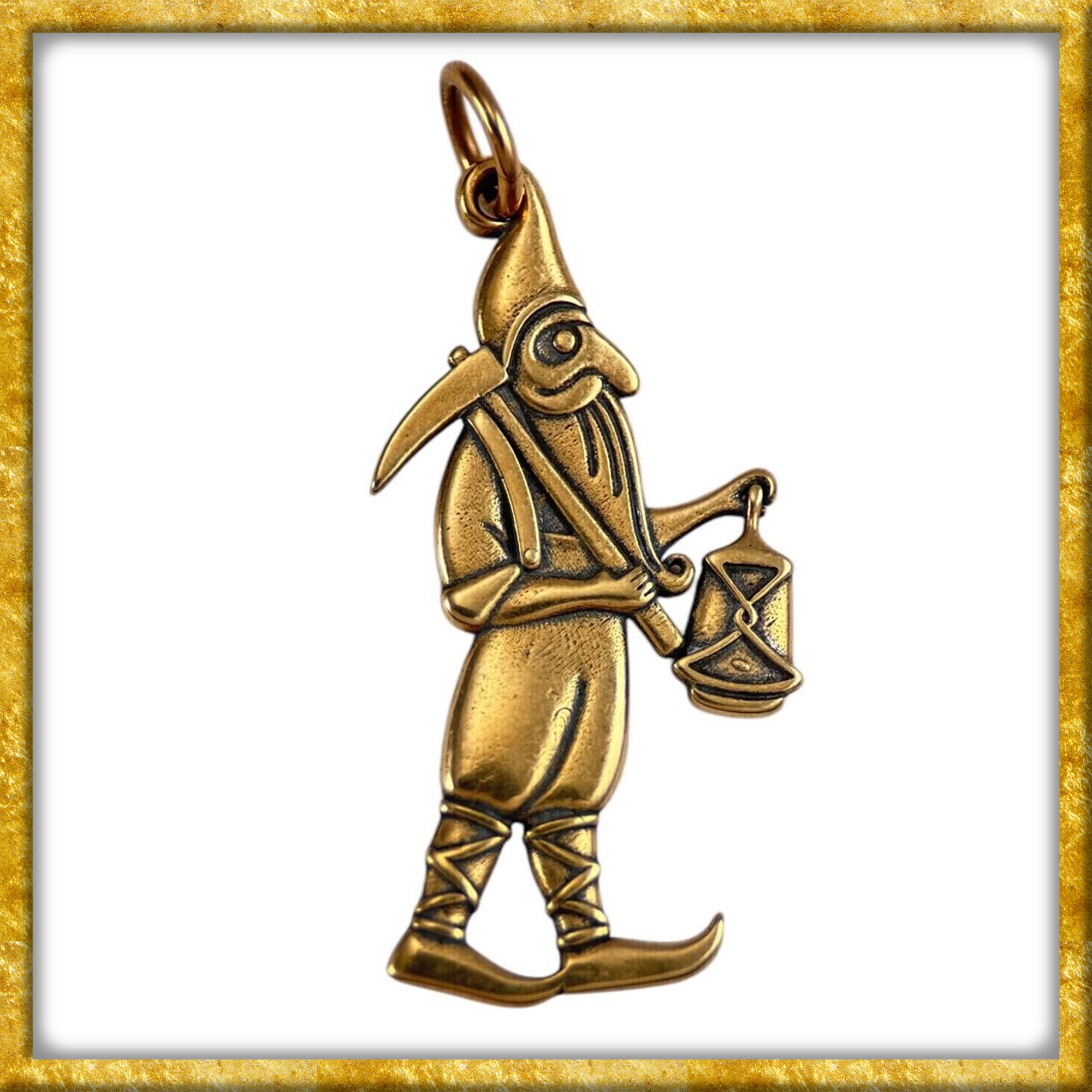 Dieser detailreich gearbeitete Anhänger zeigt einen stilisierten mittelalterlichen Bergmann, auch bekannt als Permonik oder Bergzwerg. Mit Grubenlampe und Werkzeug ausgestattet, verkörpert er die geheimnisvolle Welt des mittelalterlichen Bergbaus und die enge Verbindung zwischen Mensch, Erde und verborgenen Schätzen. Gefertigt aus hochwertigem Silber 925 oder Bronze und nach dem historischen Wachsausschmelzverfahren gegossen, trägt jedes Stück den Charakter echter Handwerkskunst.