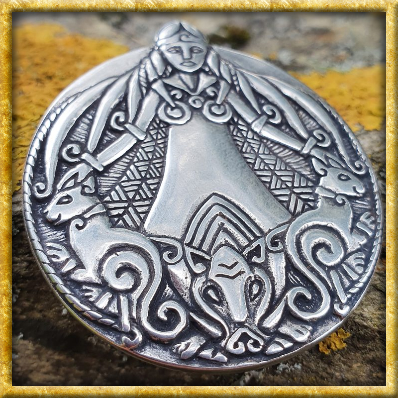 Dieser beeindruckende Wikinger-Anhänger zeigt das kraftvolle Bildnis der nordischen Göttin Freya – Symbol für Liebe, Magie und Kampfesmut. Gefertigt aus massivem 925er Sterlingsilber, vereint dieser Anhänger die Stärke und Anmut der Göttin in einem kunstvollen Schmuckstück. Die Rückseite ist so gestaltet, dass sich eine Halskette oder ein Lederband mühelos befestigen lässt, sodass du deinen Stil frei wählen kannst.