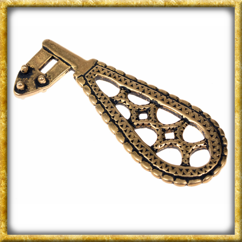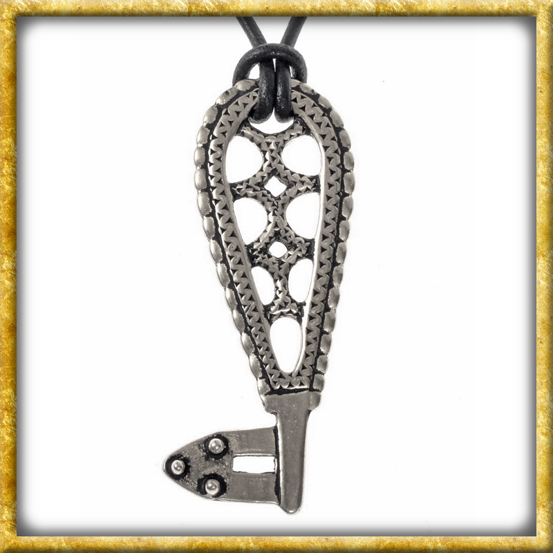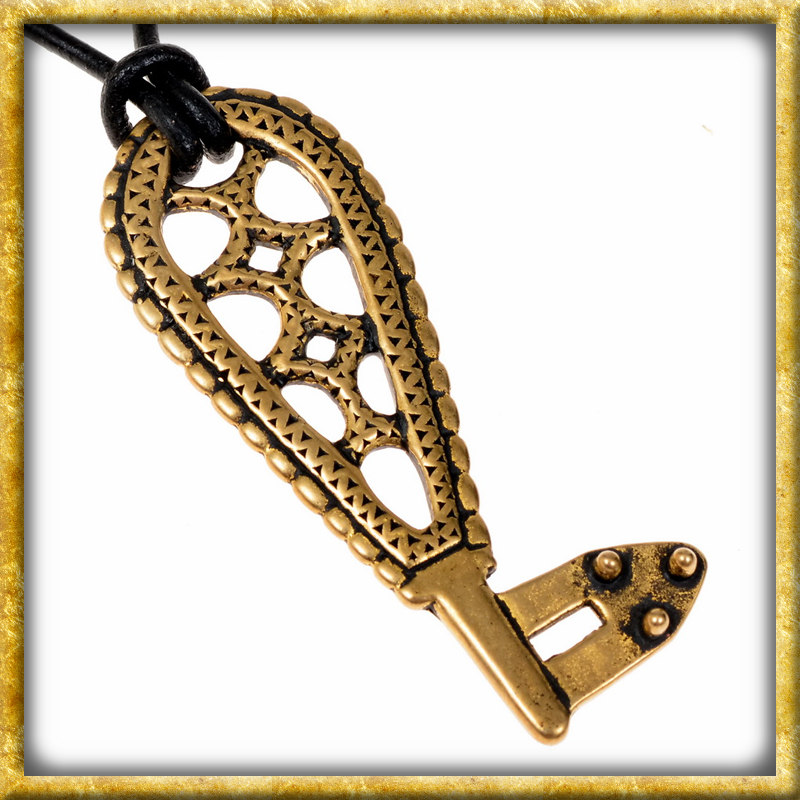 Dieser Anhänger in Form eines Wikingerschlüssel ist hochwertiger Bronze, versilbert oder in 925er Sterlingsilber erhältlich. Der originale Wikingerschlüssel wurde in der westnorwegischen Region Sogn gefunden und befindet sich heute im Besitz des Universitäts-Museums Bergen. Ein 2mm starkes Lederband in 1m Länge wird mitgeliefert.