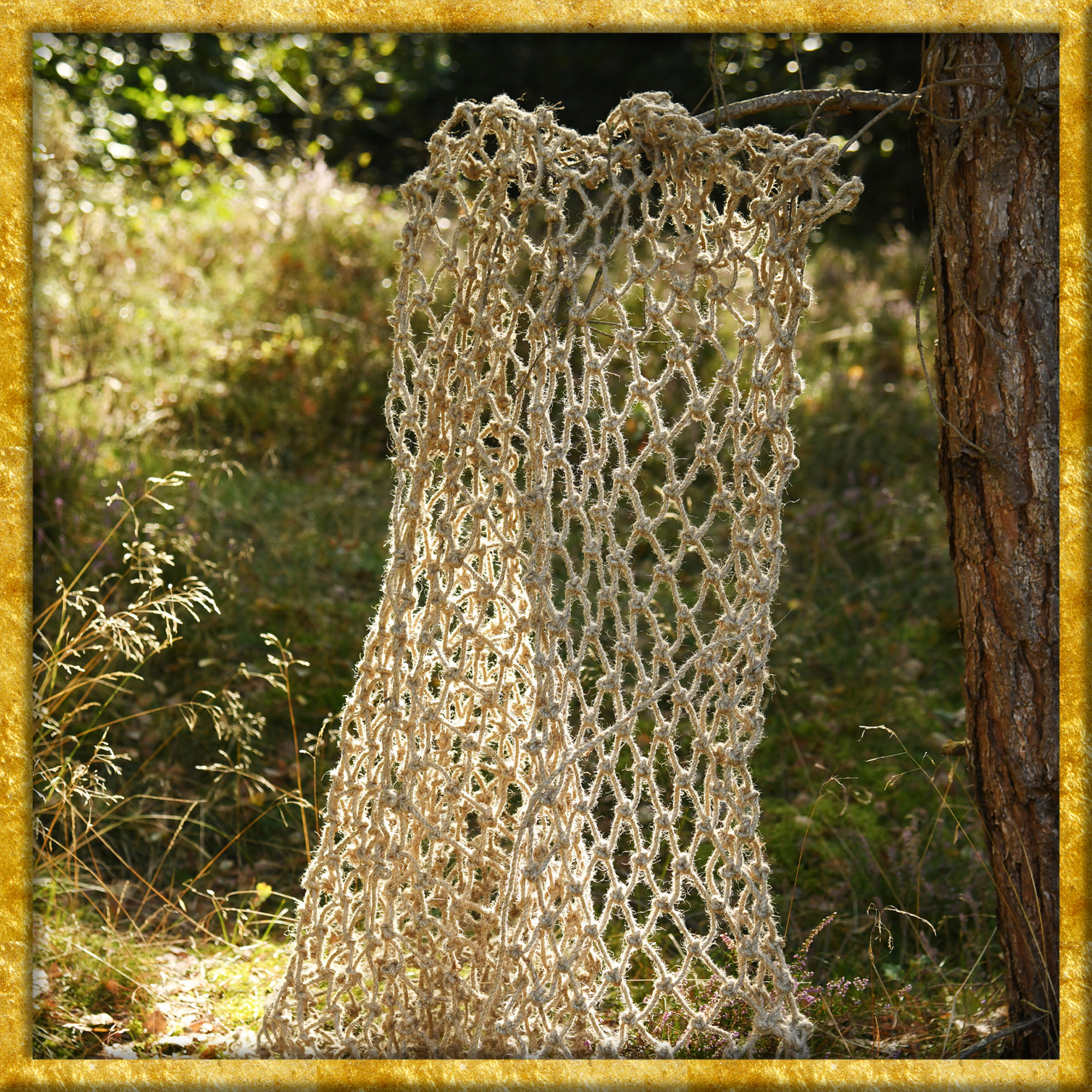 Dieses Gladiatorennetz, auch Rete genannt, ist aus 4mm starker Jute handgeflochten. Die Maschengrösse beträgt ca. 4,5 x 4,5cm. Das Netz eignet sich für die historische Darstellung von Gladiatoren und Gladiatorenkämpfe.