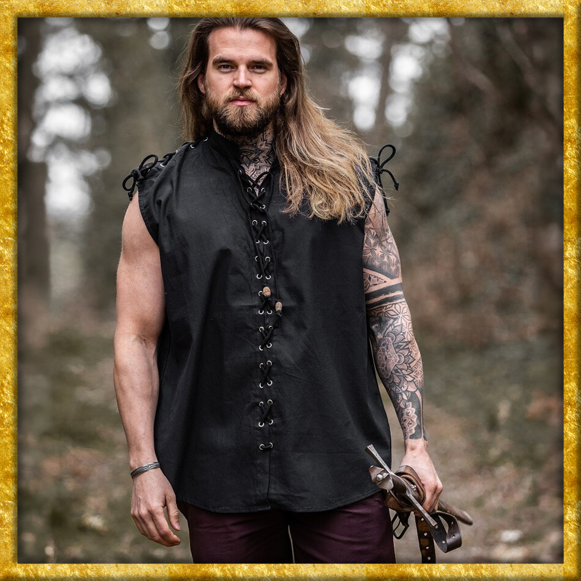 Egal ob Du an einem Mittelaltermarkt teilnimmst oder ein Fan von LARP bist, unser ärmelloses Schnürhemd Ott ist ideal für Dich. Es lässt sich leicht mit anderen Kleidungsstücken kombinieren und verleiht Deinem Outfit das gewisse Etwas. Die hochwertigen Materialien sorgen dafür, dass Du auch bei langen Abenteuern stets bequem unterwegs bist.