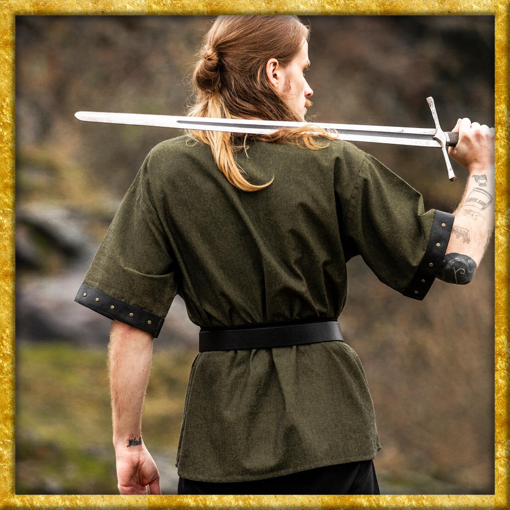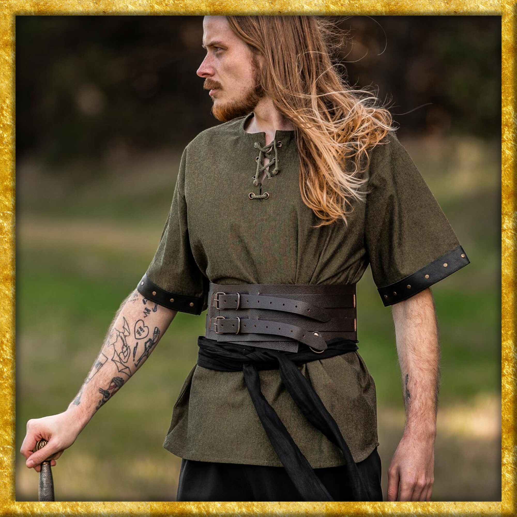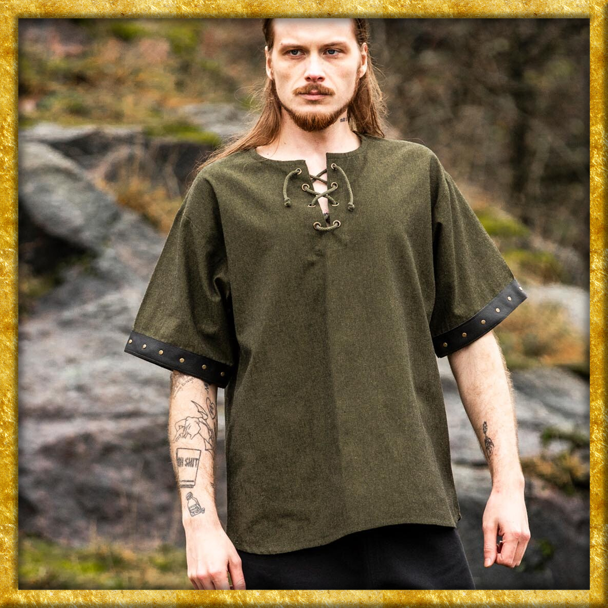 Dieses Hemd ist inspiriert von den robusten Kleidungsstücken der Wikinger und des Mittelalters. Damals war Kleidung nicht nur funktional, sondern auch Ausdruck von Stand und Persönlichkeit. Die Lederapplikationen und das schlichte Design des Hemds erinnern an die handwerkliche Kunstfertigkeit vergangener Zeiten, ohne dabei auf moderne Annehmlichkeiten zu verzichten. Ein wahrhaft zeitloses Stück, das die Stärke und den Geist dieser Epoche widerspiegelt.