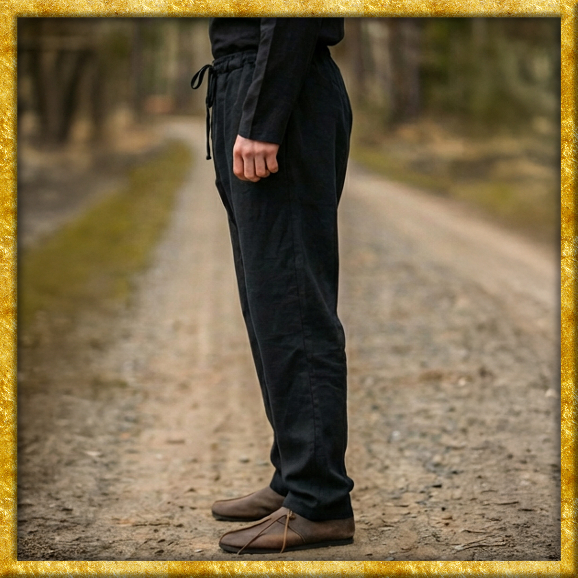 Unsere Mittelalter Hose Peter ist von den klassischen Designs der mittelalterlichen Mode inspiriert. Solche Hosen waren weit verbreitet und dienten als robustes Kleidungsstück für den täglichen Gebrauch. Die bewusste Entscheidung, auf Hosentaschen zu verzichten, verleiht der Hose eine authentische Note und versetzt Dich direkt in die Epoche der Ritter und Burgen.