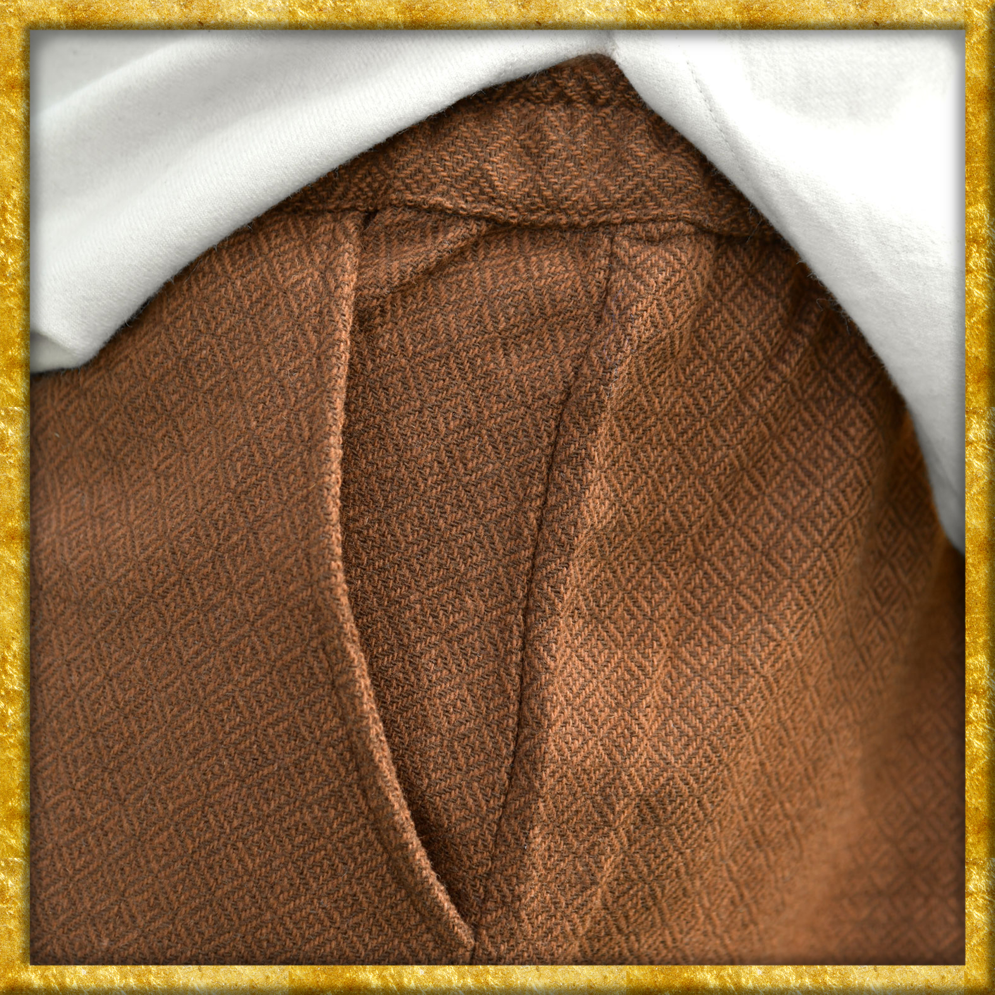 Die Hose besteht aus 100% Wolle in Diamantköperbindung und überzeugt durch ihre hochwertige Qualität und ein angenehmes Tragegefühl. Das für Diamantköper typische, kleine Muster aus versetzen Rauten kommt durch die Verwendung von hell- und dunkelbrauner Wolle in Kette und Schuss besonders schön zu Geltung. Zudem ist Wolle von Natur aus wärmend, was diese Hose zum idealen Kleidungsstück für kältere Tage macht.