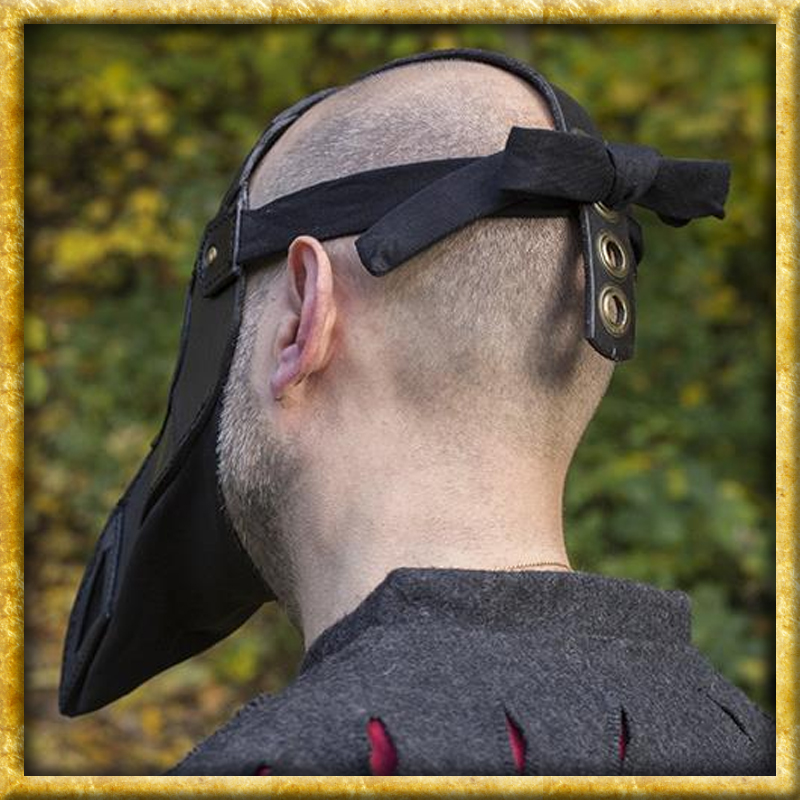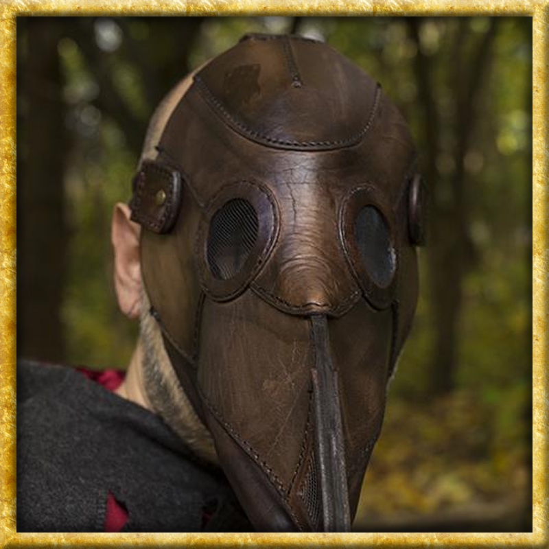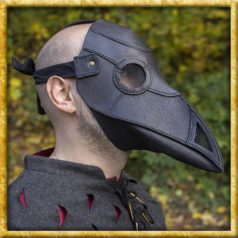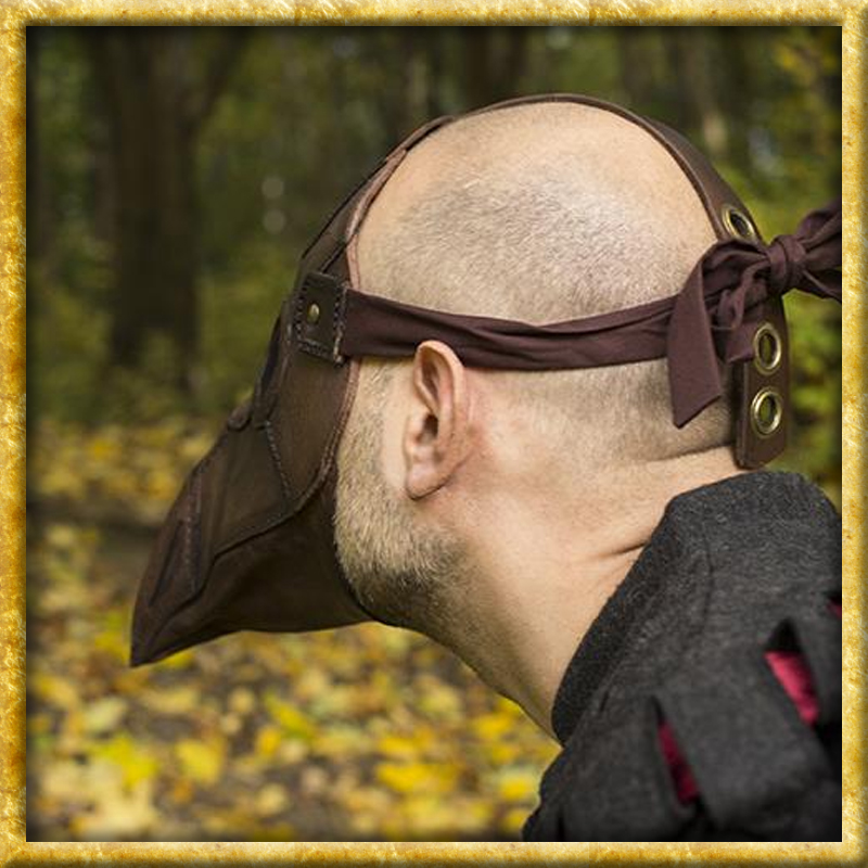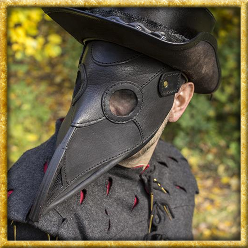 Eine authentische und in Handarbeit hergestellte Pestmaske in braunem oder schwarzem Leder. Mit einem verstellbaren Lederriemen und zwei Stoffbändern ist die Pestmaske von Epic Armoury für jeden geeignet. Hergestellt aus natürlichem, vollnarbigem Qualitätsleder und robuster Naht, ist dies ein Produkt, das einem LARP oder Reenactment widerstehen kann. Pestmasken wurden ursprünglich entworfen im Europa des 17. Jahrhunderts von Charles de L'Orme. Sie wurden von Pestärzten getragen, die sich um die Kranke und Sterbende kümmerten. Die lange schnabelartige Nase war mit Kräutern und Stroh gefüllt, um die schlechte Luft herauszufiltern.