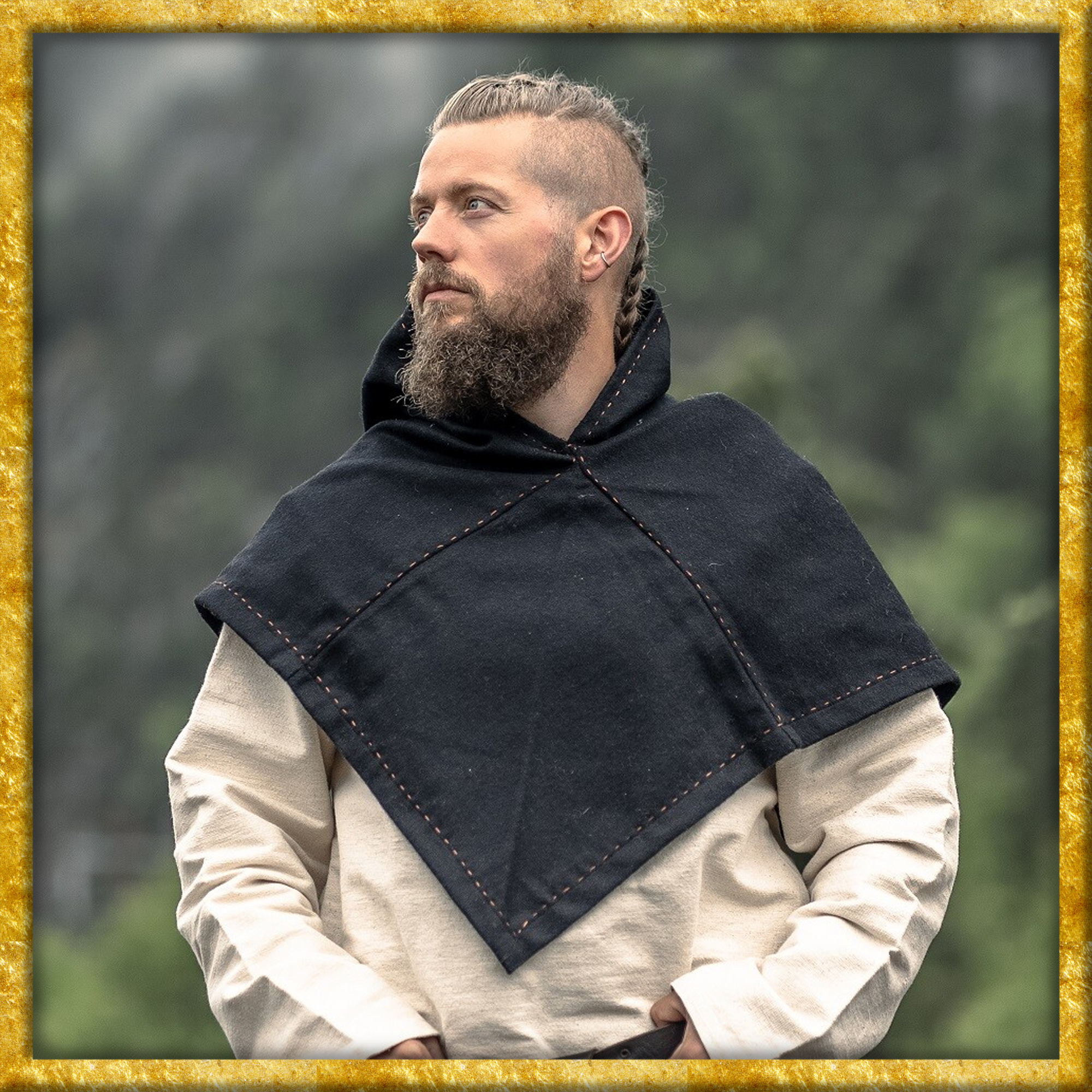 Egal ob Du ein Reenactment-Enthusiast bist oder einfach nur die Einzigartigkeit dieser Epoche schätzt: Die Skjoldehamn Gugel ist Dein idealer Begleiter. Ihr ikonisches Kapuzendesign mit spitzer Kappe und die symmetrisch gestalteten Nähte verleihen Deinem Outfit einen unverwechselbaren mittelalterlichen Charme. Tauche ein in Dein Abenteuer und fühl Dich wie ein Teil der Geschichte.