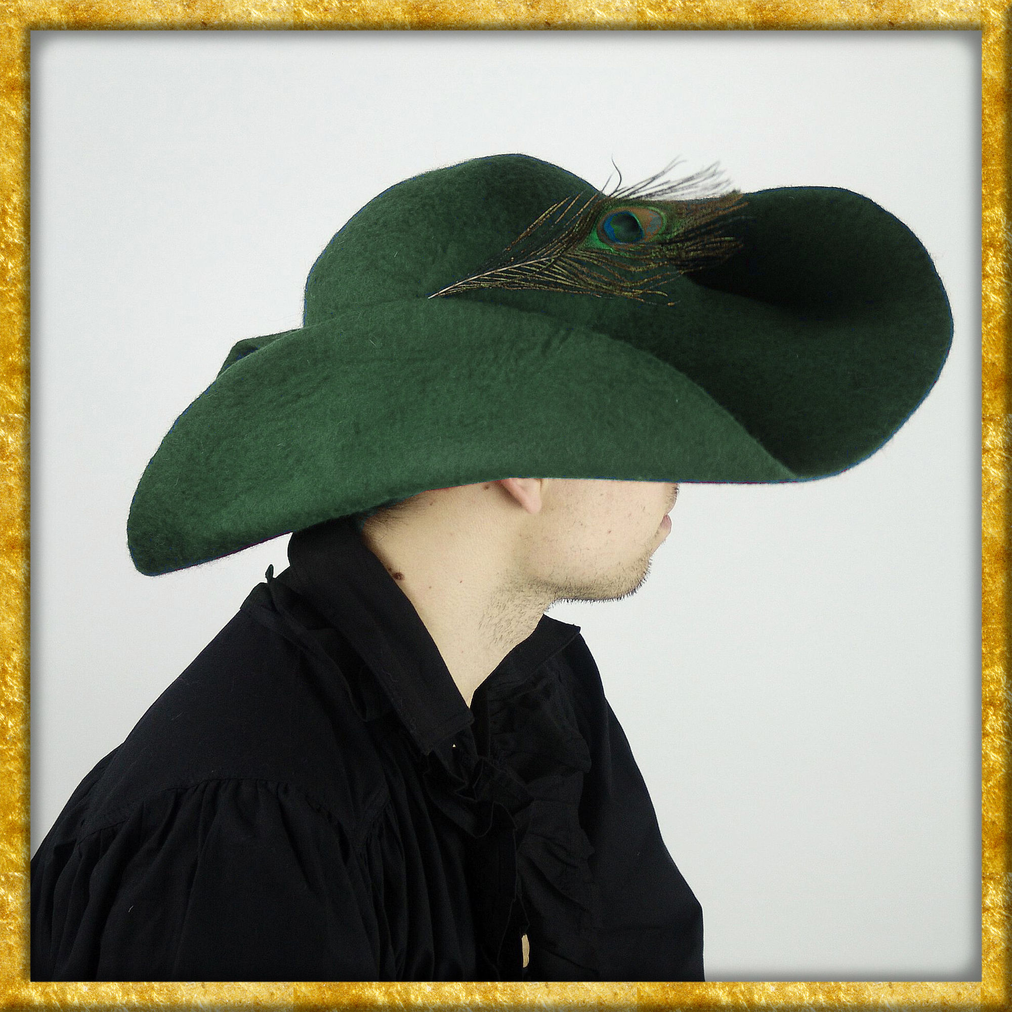 Dieser Mittelalter Wollfilzhut mit einer kleinen Feder ist in verschiedenen Farben erhältlich. Er schützt vor Sonne und Regen und ist ein ideales Accessoire für Mittelaltermärkte und LARP.