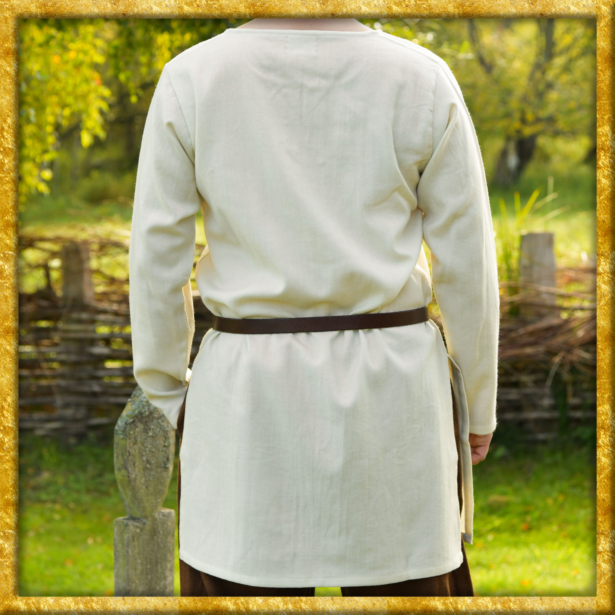 Durch ihre schlichte Gestaltung ist diese Mittelalter Tunika vielseitig einsetzbar. Sie kann für zusätzliche Wärme getragen und mit einem aufwendig gearbeiteten Obergewand kombiniert werden. Alternativ kann sie mit einem robusten Ledergürtel und den passenden Accessoires auch als schlichtes Obergewand getragen werden.