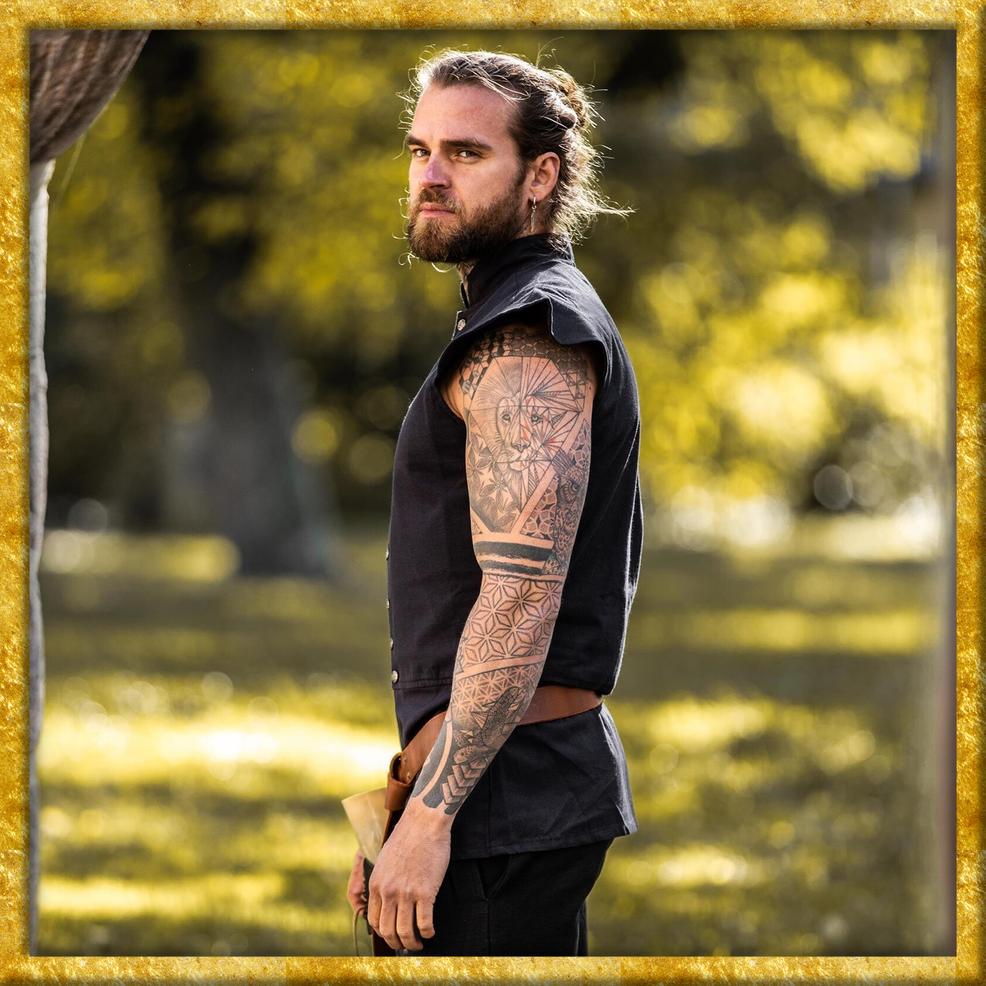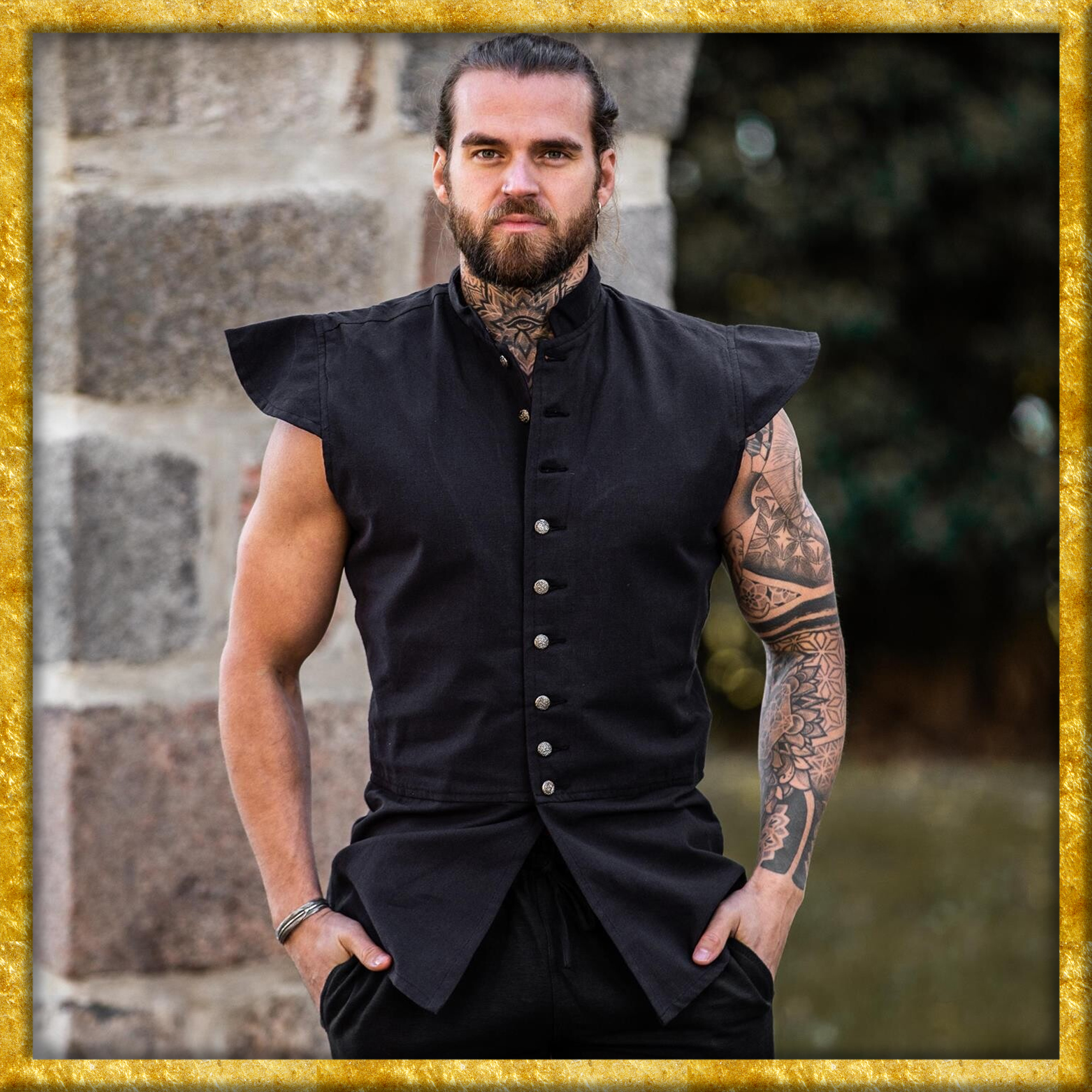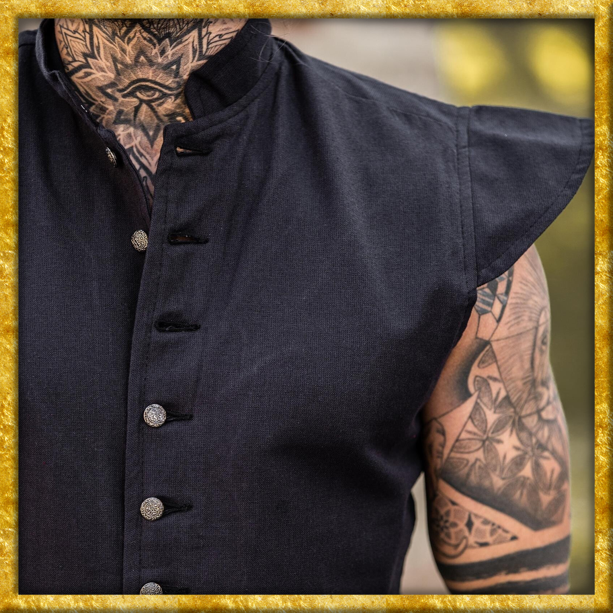Dieser hochwertige Mittelalter Wams ist auf der Innenseite mit Baumwolle gefüttert. Auf der Vorderseite lässt er sich mittels Metallknöpfen bequem öffnen und schliessen. Der Wams ist in den Farben Grün, Blau und Tabakbraun verfügbar.
