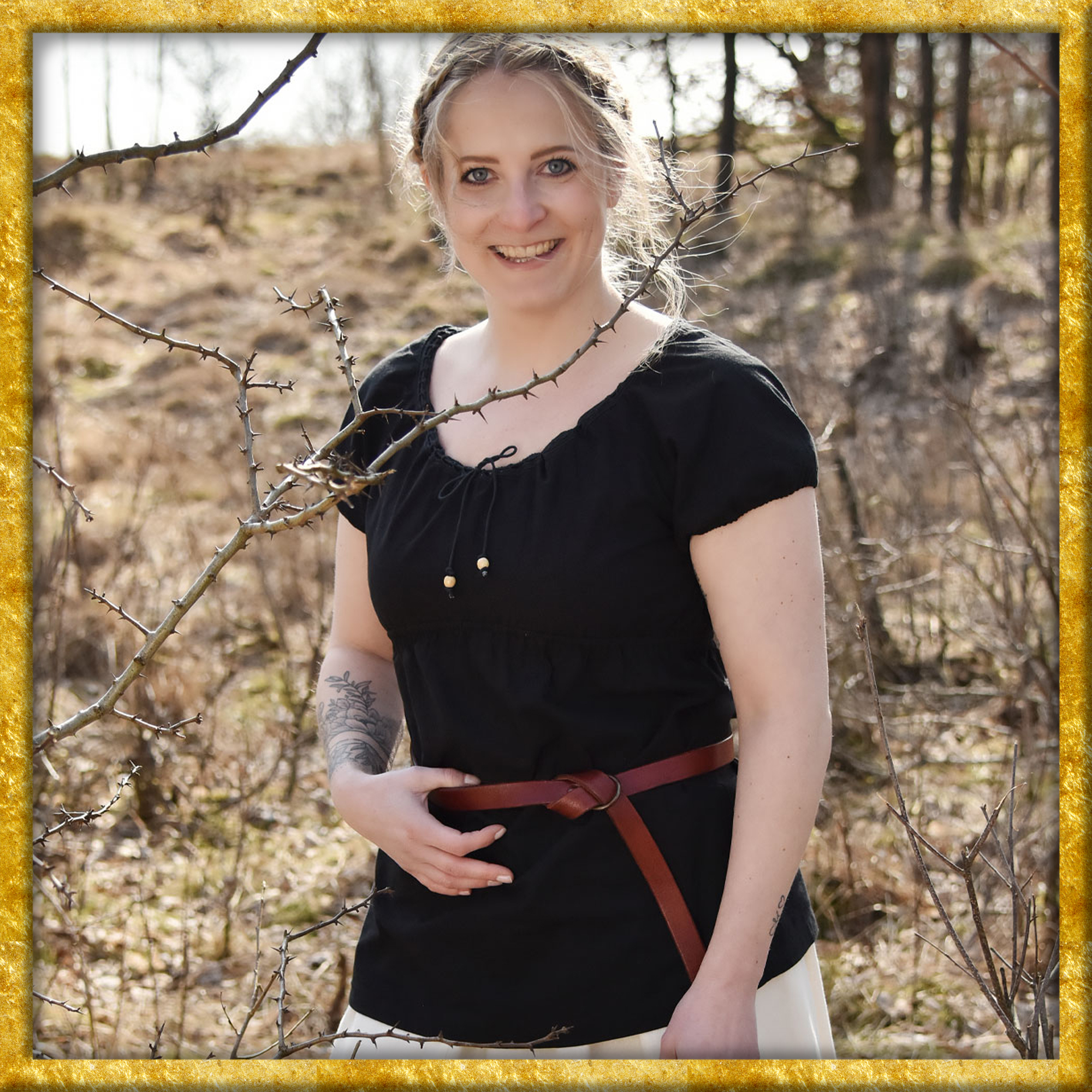 Blusen sind zwar historisch gesehen nicht dem Mittelalter, sondern der Renaissance zuzuordnen, ergeben aber in Kombination mit Rock und Mieder bzw. Miedergürtel einen schönen mittelalterlichen Look. Auch zu einem Kleid lassen sich Blusen besonders gut kombinieren.