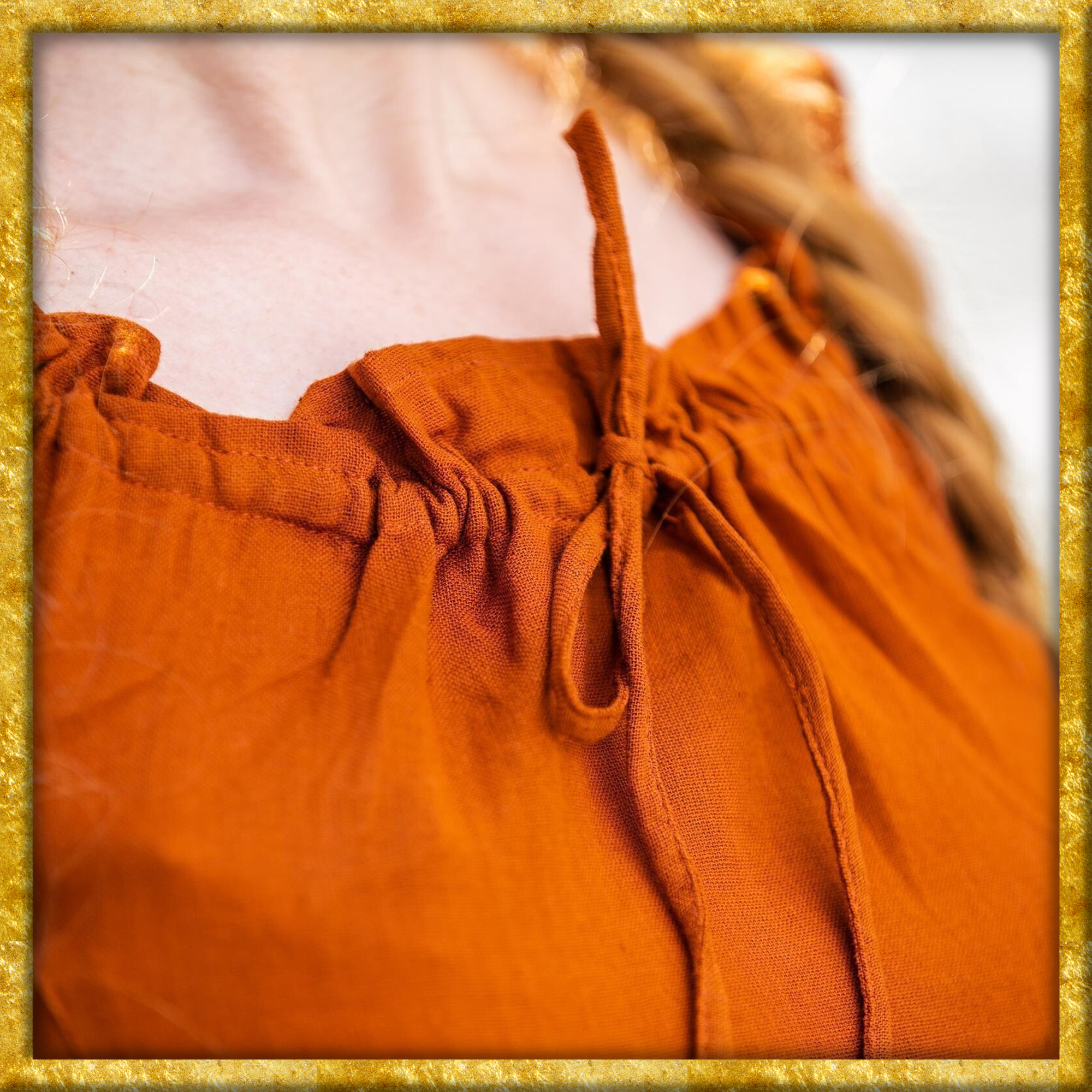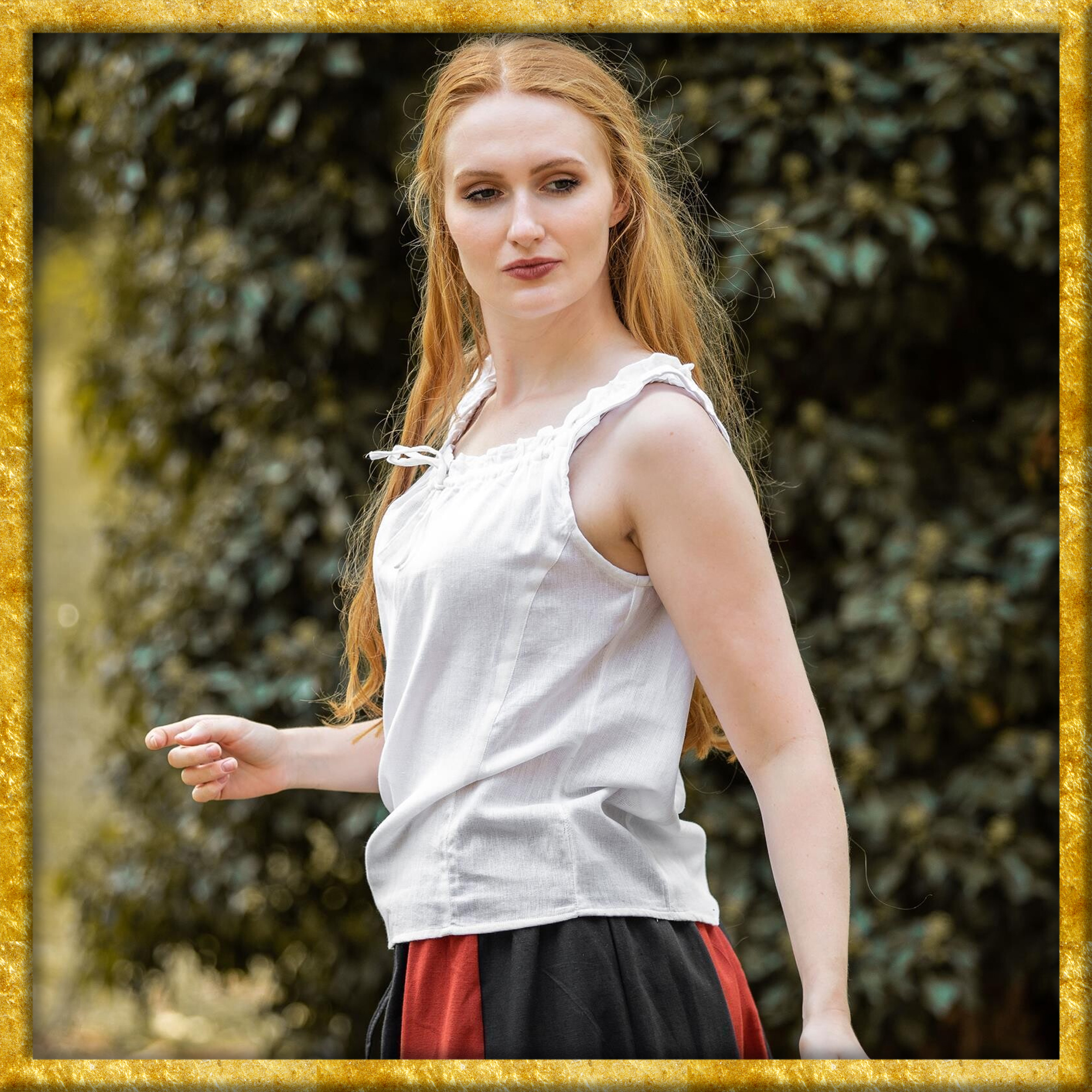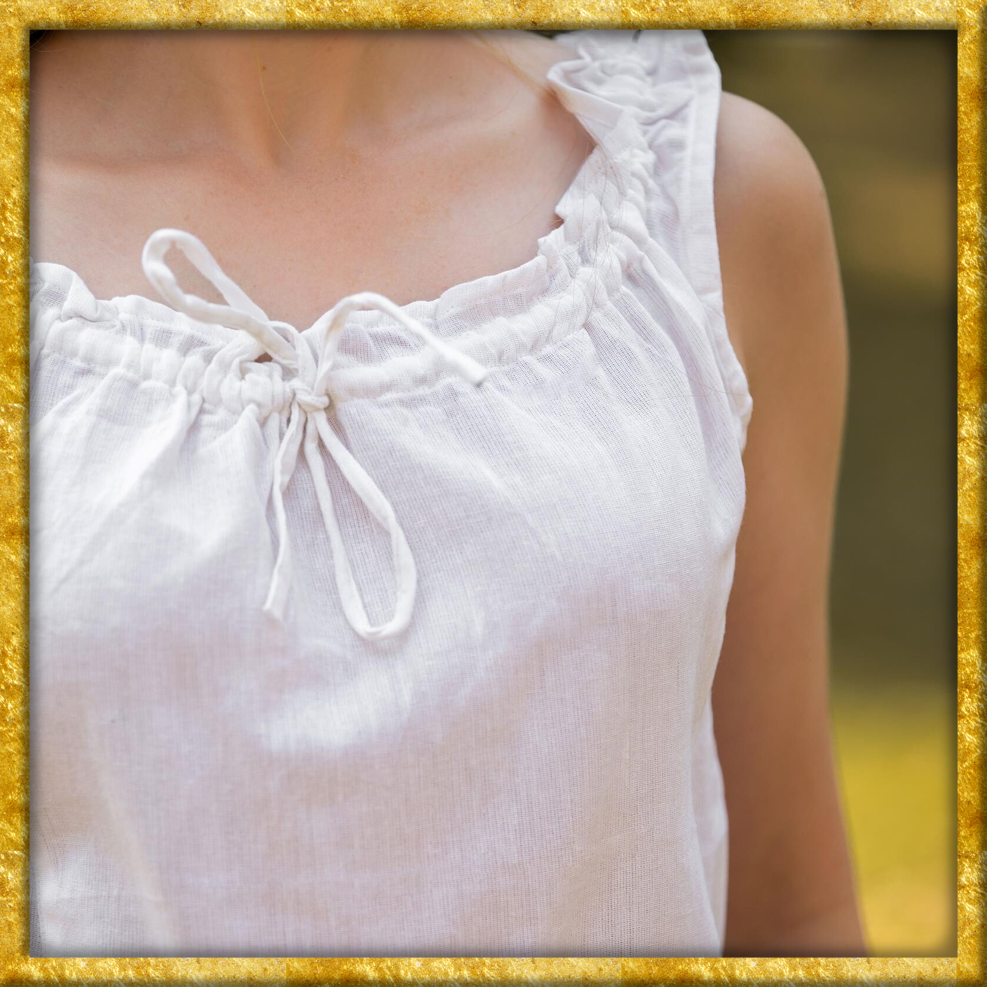 Unsere ärmellose Sommerbluse Adele ist der perfekte Begleiter für warme Tage. Inspiriert von mittelalterlichen Designs, vereint sie moderne Leichtigkeit mit historischem Charme. Die Bluse zeichnet sich durch ihren lockeren Sitz und einen eleganten Tunnelzug am Décolleté aus, der dir die Möglichkeit bietet, die Weite individuell anzupassen. Die leicht gerafften Armausschnitte verleihen der Bluse eine charmante Note. Mit ihrer geraden Saumlinie und dem schlichten Silhouette-Design bietet unsere Bluse sowohl Komfort als auch Stil.