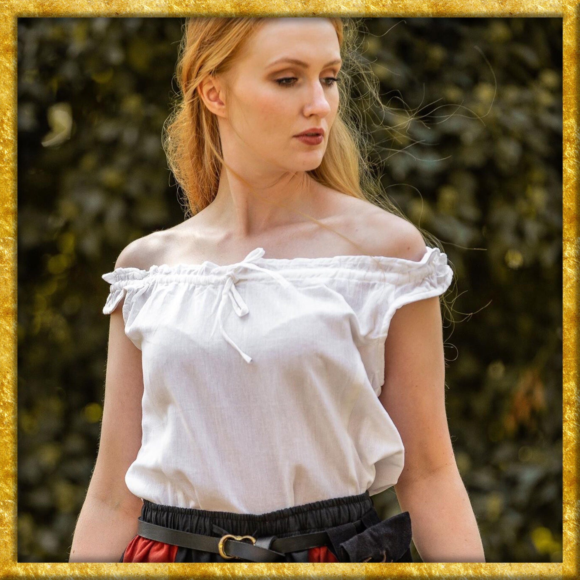 Inspiriert von den modischen Elementen des Mittelalters, bringt unsere Bluse eine Prise Geschichte in deine Garderobe. Damals wurde Kleidung oft schlicht gehalten und war dennoch funktional und ansprechend im Design. Die Nutzung des Tunnelzugs erinnert an die handgefertigten Details jener Zeit, die den Trägern ermöglichten, ihre Kleidung individuell zu gestalten. Lass dich von der historischen Atmosphäre verzaubern und fühle dich wie eine Heldin vergangener Zeiten.