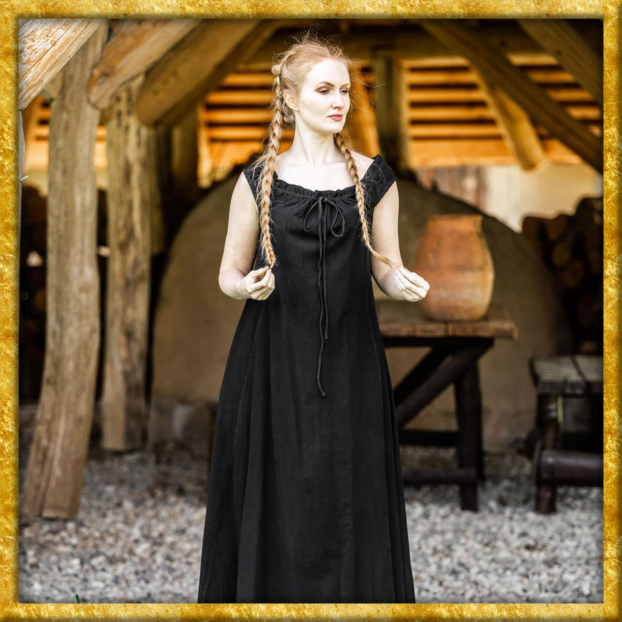 Egal ob auf einem Mittelaltermarkt oder einer festlichen Veranstaltung – das Kleid Ella ist Dein perfekter Begleiter. Die schlichte Eleganz ohne Muster oder Verzierungen lässt Dir Raum für kreative Kombinationen mit verschiedenen Accessoires und betont zugleich Deine natürliche Schönheit. Lass dieses Kleid Deine Geschichten erzählen und fühle Dich wie eine Königin in Deinem Alltag.