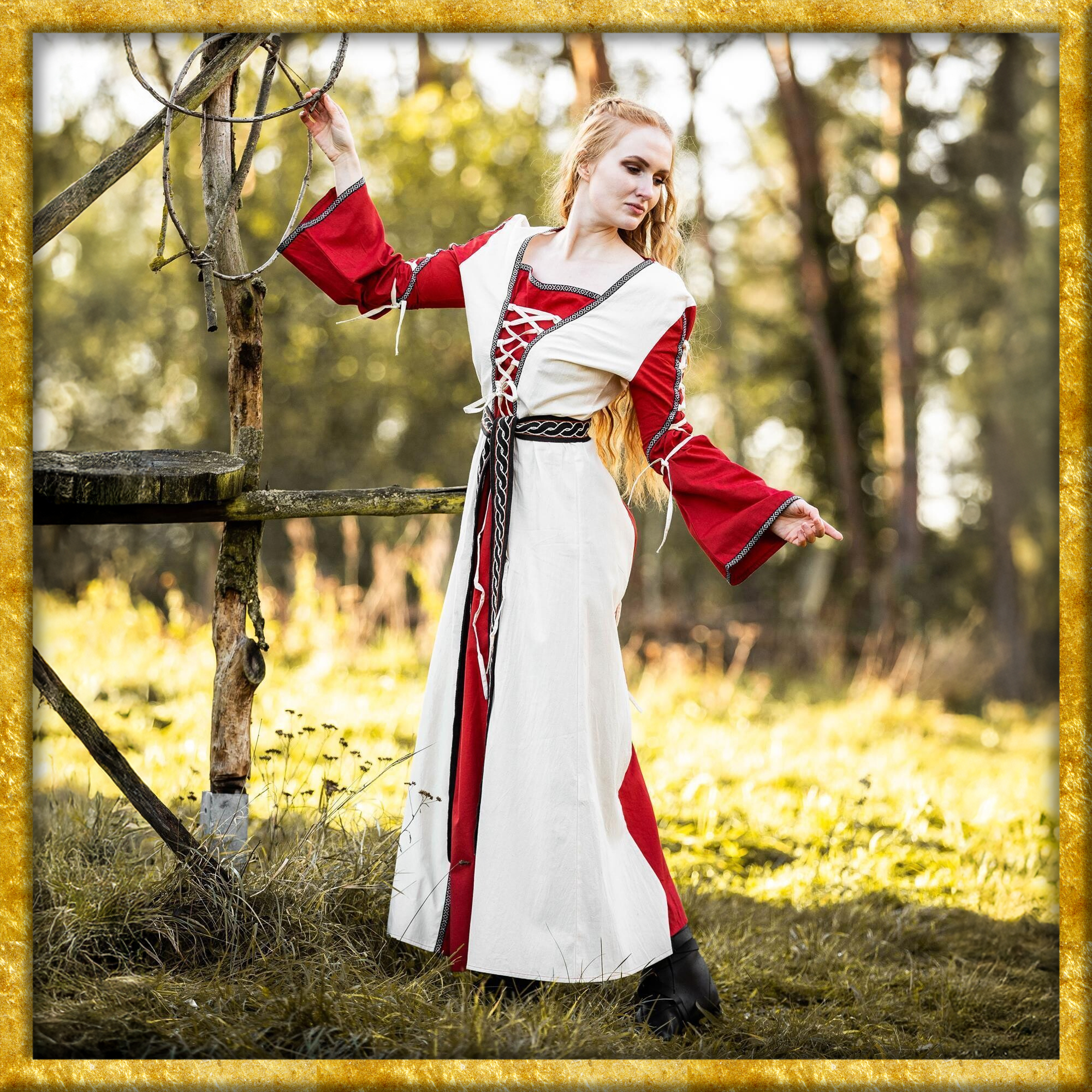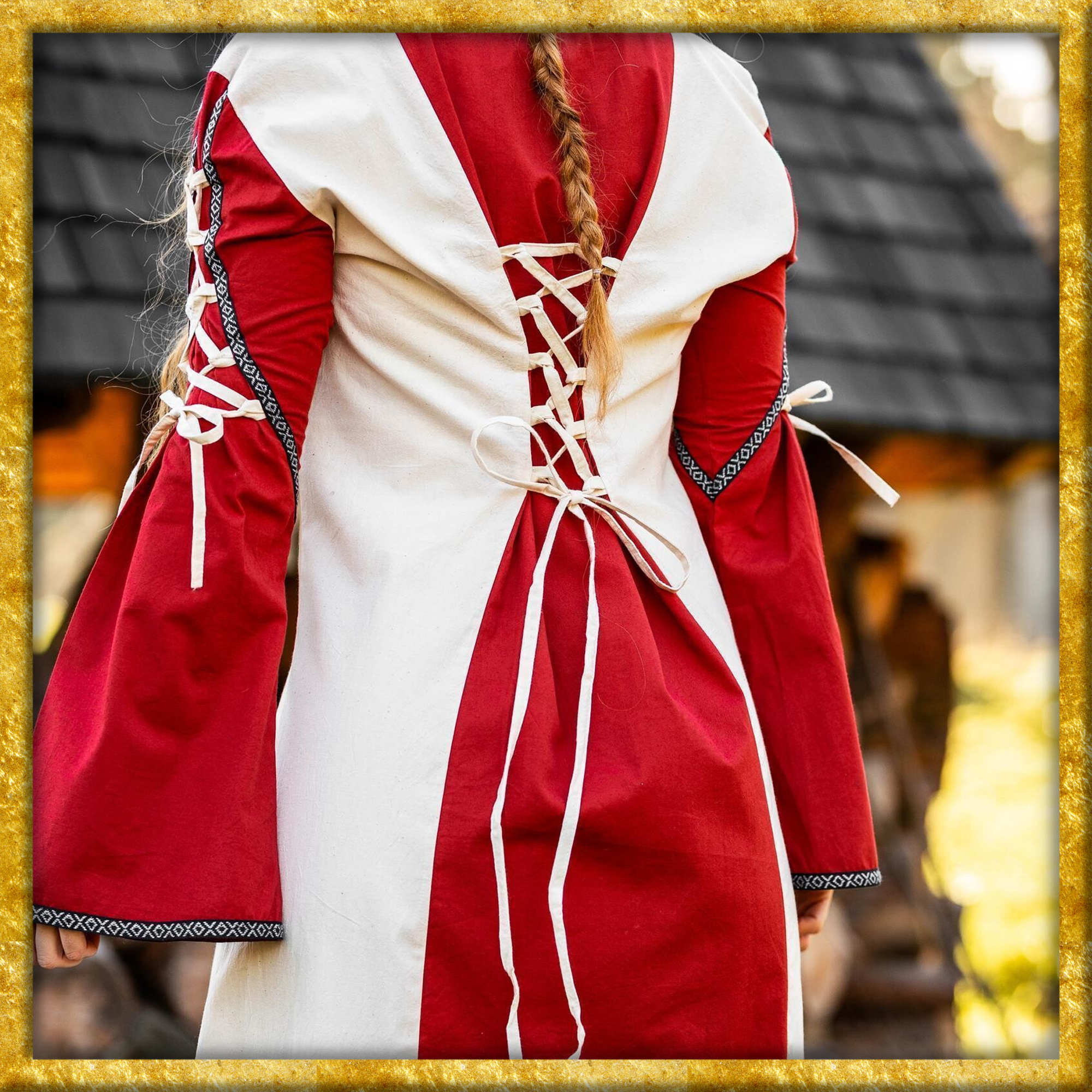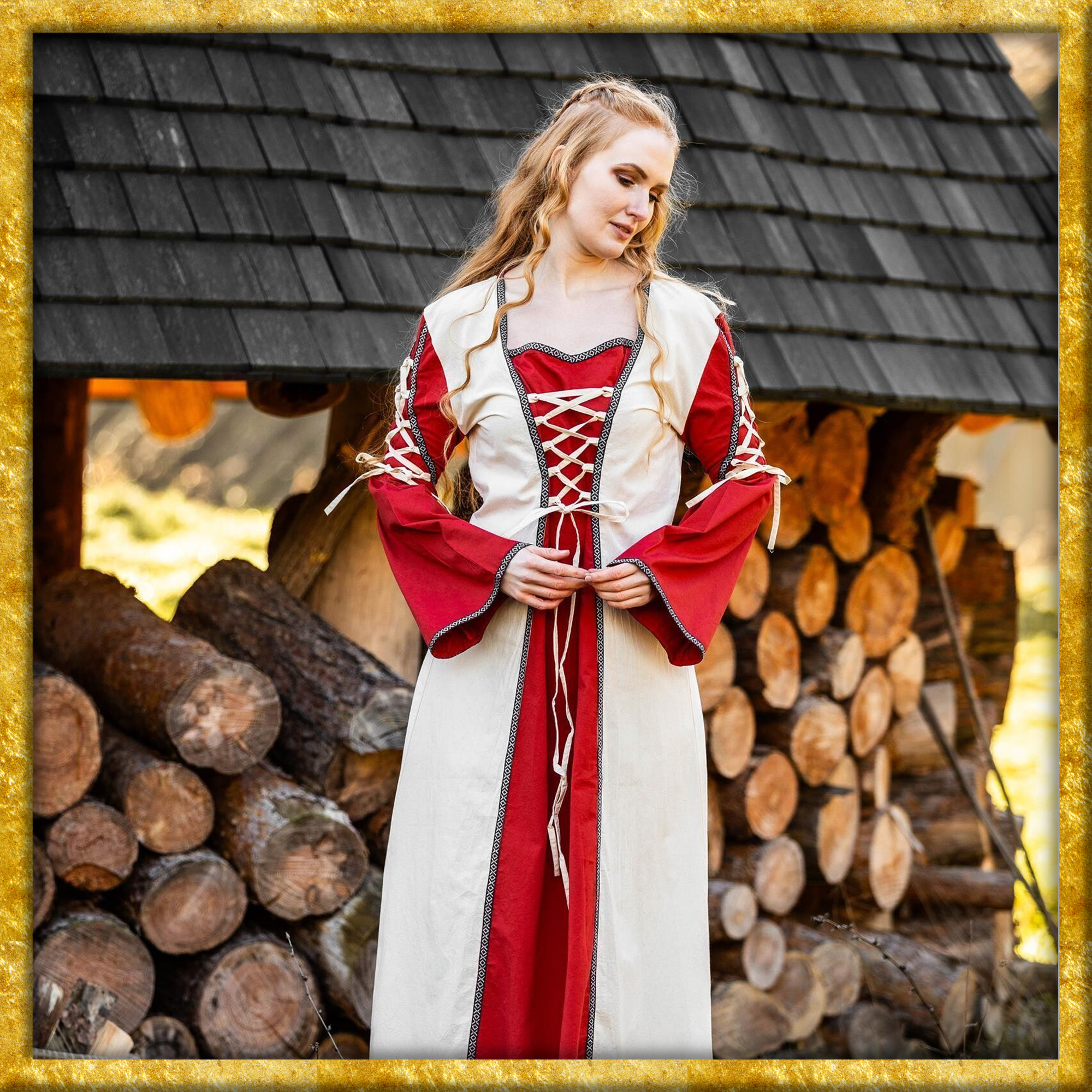 Gefertigt aus 100% Baumwolle, bietet das Amalia Mittelalter Kleid einen angenehmen Tragekomfort und eine leichte Textur, ideal für historische Feste, LARP-Events oder thematische Hochzeiten. Kombiniere das Amalia Mittelalter Kleid mit passenden Accessoires, wie einem historischen Kopfschmuck oder einem eleganten Gürtel, um Deinen Look zu vervollkommnen.