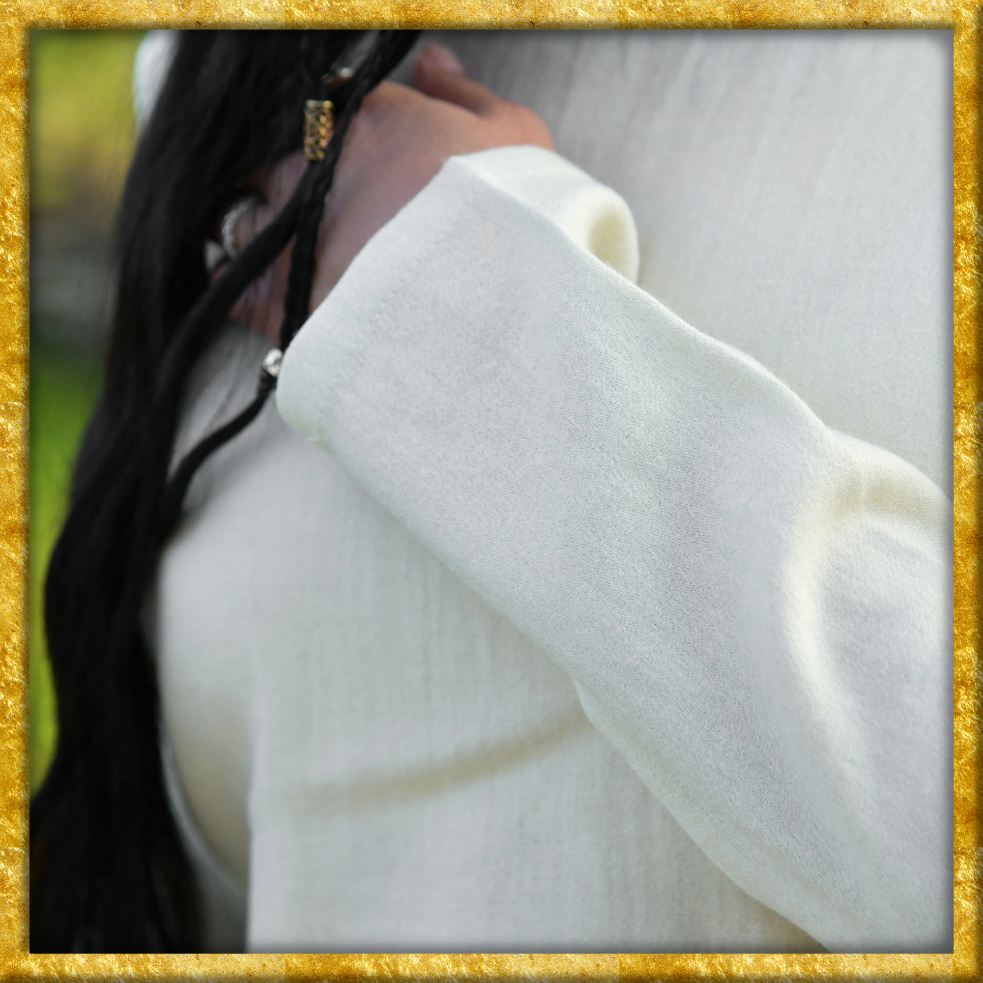Das Wikinger Kleid ist aus 100% Wolle gefertigt und überzeugt durch seine hochwertige Qualität und ein angenehmes Tragegefühl. Das langärmlige Kleid ist bodenlang und locker geschnitten. Es verfügt über einen klassischen Rundhalsausschnitt. Eingesetzte Gehren (Keile) an den Seitennähten sorgen für einen schön schwingenden Rockteil.