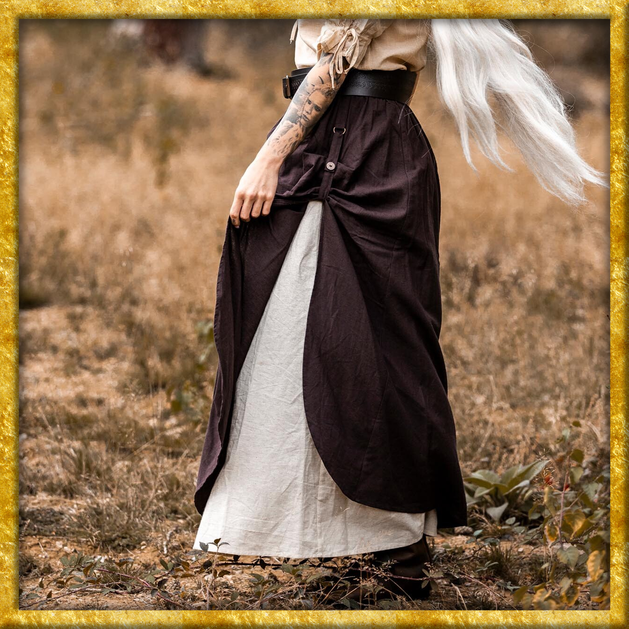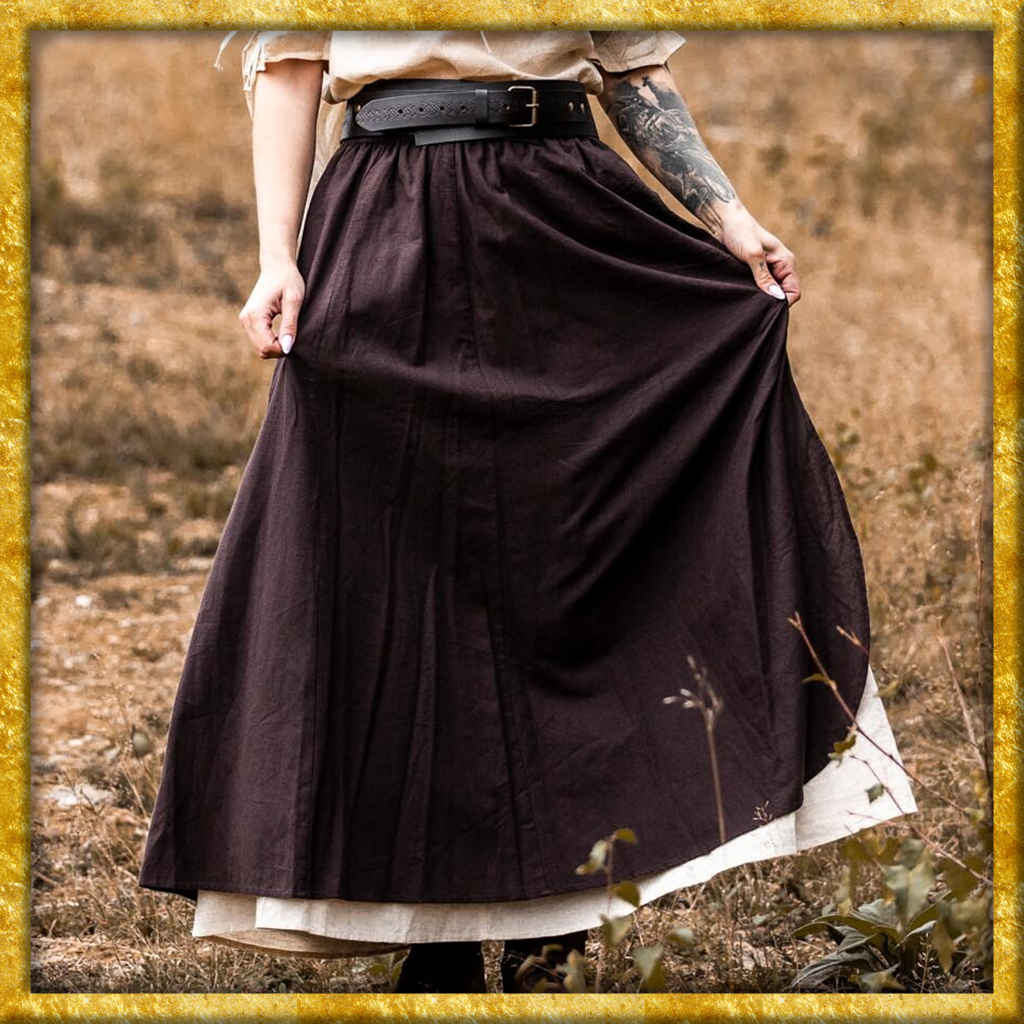 Kombiniere diesen einzigartigen Mittelalter Rock mit anderen Teilen aus unserer Kollektion und schaffe so Deinen ganz persönlichen Look für das nächste Mittelalter-Event, LARP-Abenteuer oder einfach für den Alltag!