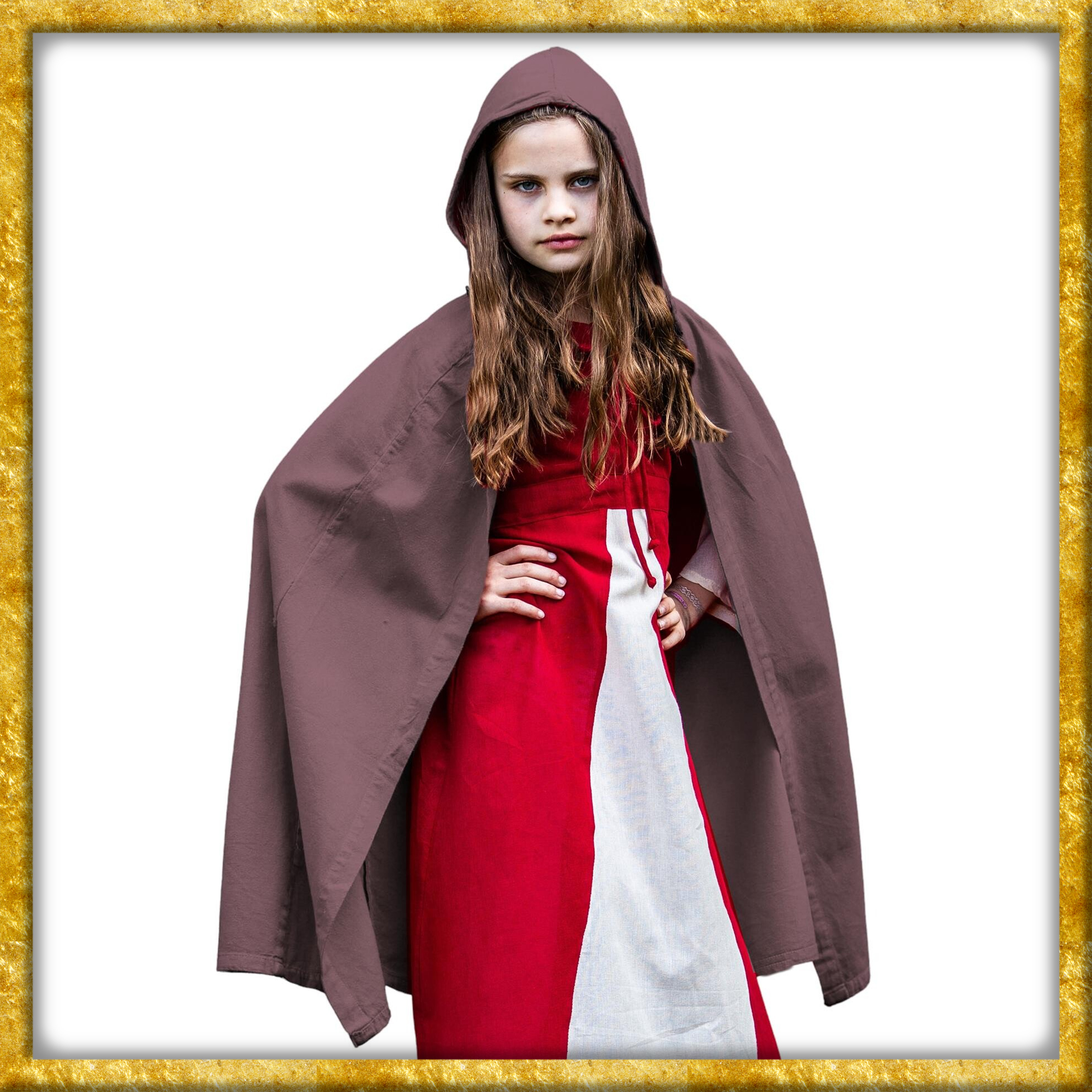 Dieser wundervolle Mittelalterumhang für Kinder besteht aus 100% Baumwolle. Er verfügt über eine kurze Kapuze und ist lang geschnitten. Ein ideales Kleidungsstück für kleine Besucher von Mittelaltermärkten, LARP und Kostümveranstaltungen.
