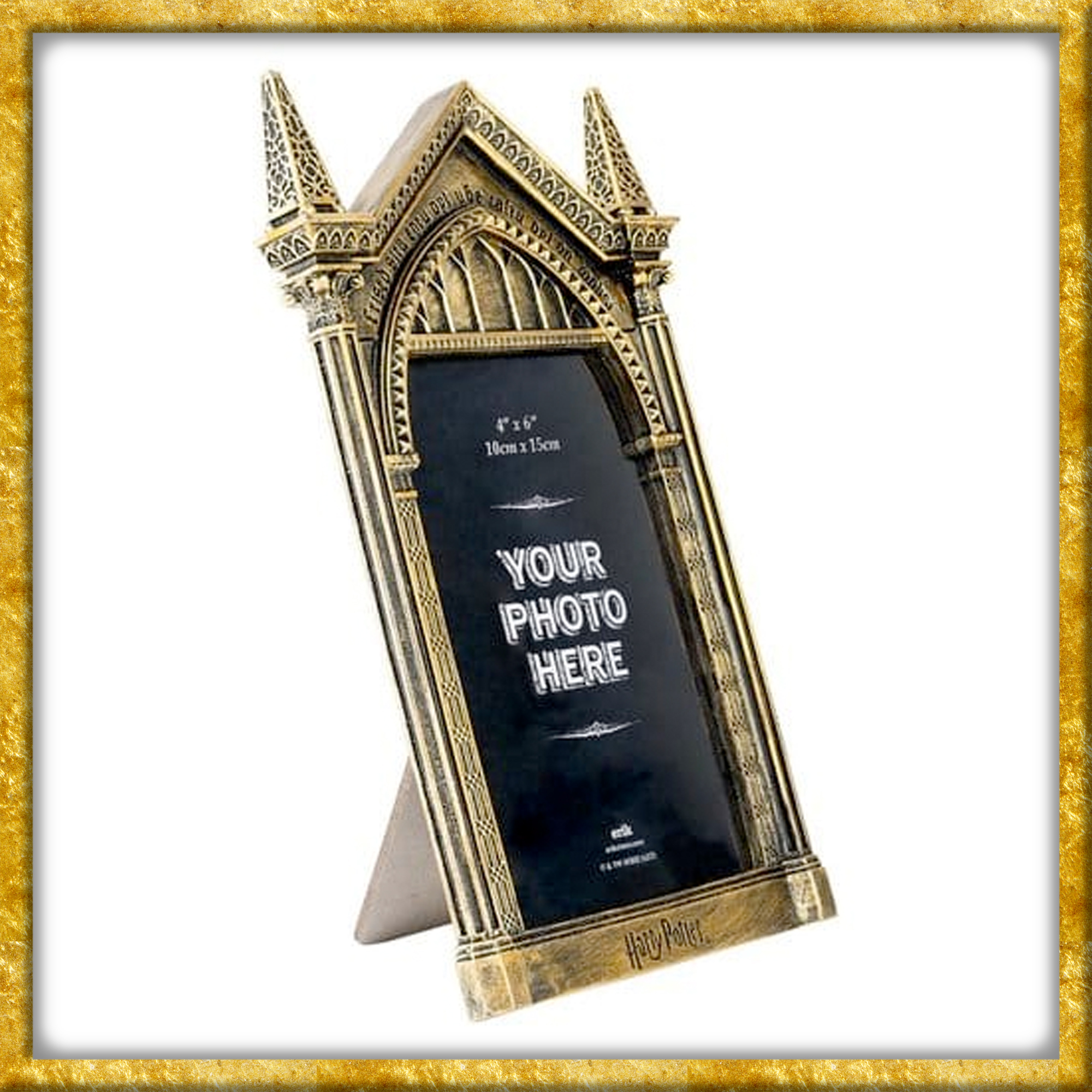 Aus Harry Potter erscheint dieser originelle 3D-Fotorahmen, kompatibel für 10cm x 15cm grosse Fotos. Der Rahmen wurde aus Harz hergestellt, geprägt und ist handbemalt. Er misst 14cm x 23,4cm x 3cm. Dank dem Ständer lässt sich der Fotorahmen aufstellen und ziert so jede Kommode.