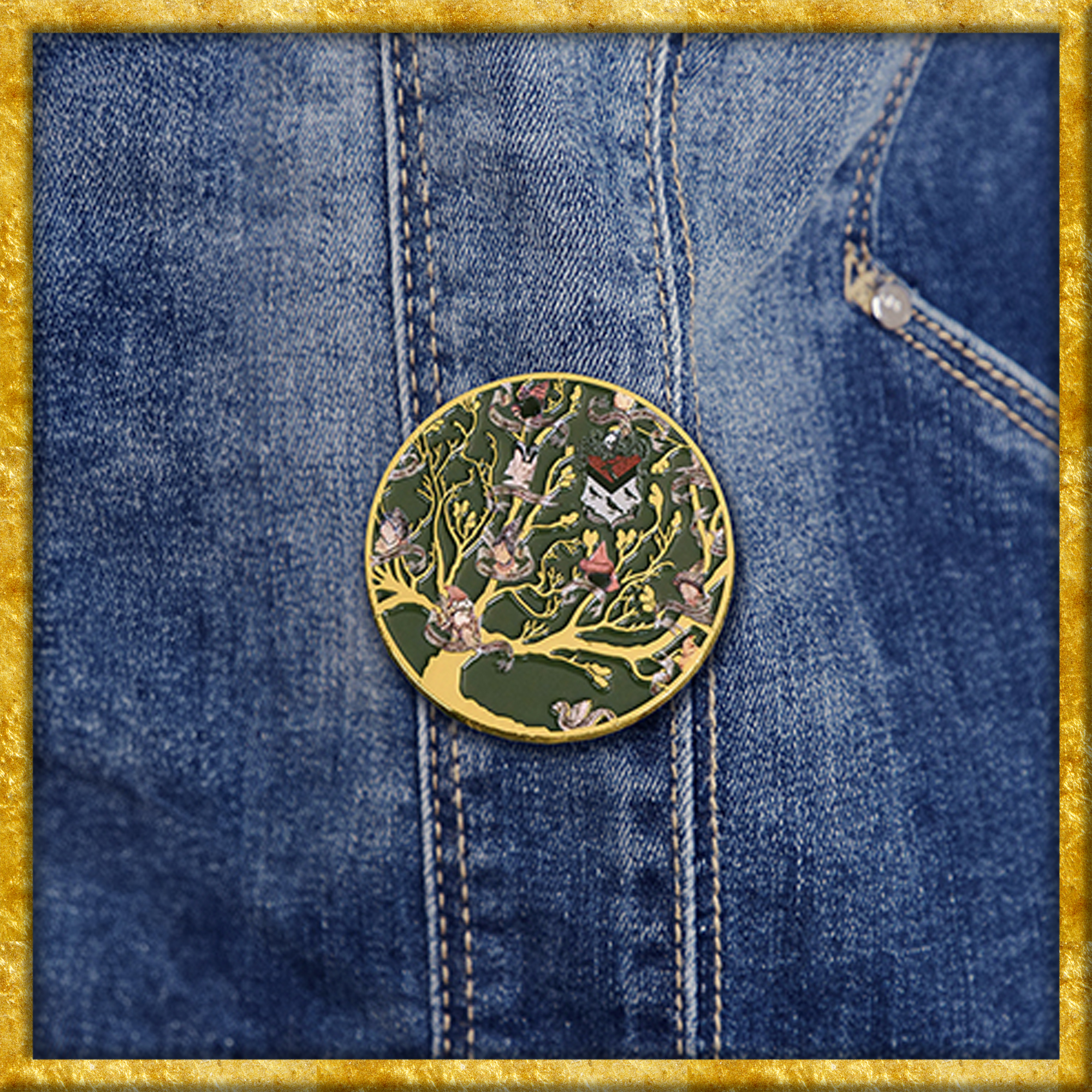 Offiziell lizenzierter Ansteckpin aus Harry Potter, welcher die edle Tapete des Stammbaumes der Familie Black abbildet. Der Anhänger wurde aus Zink gefertigt und überzeugt durch die detailreichen Verzierungen.