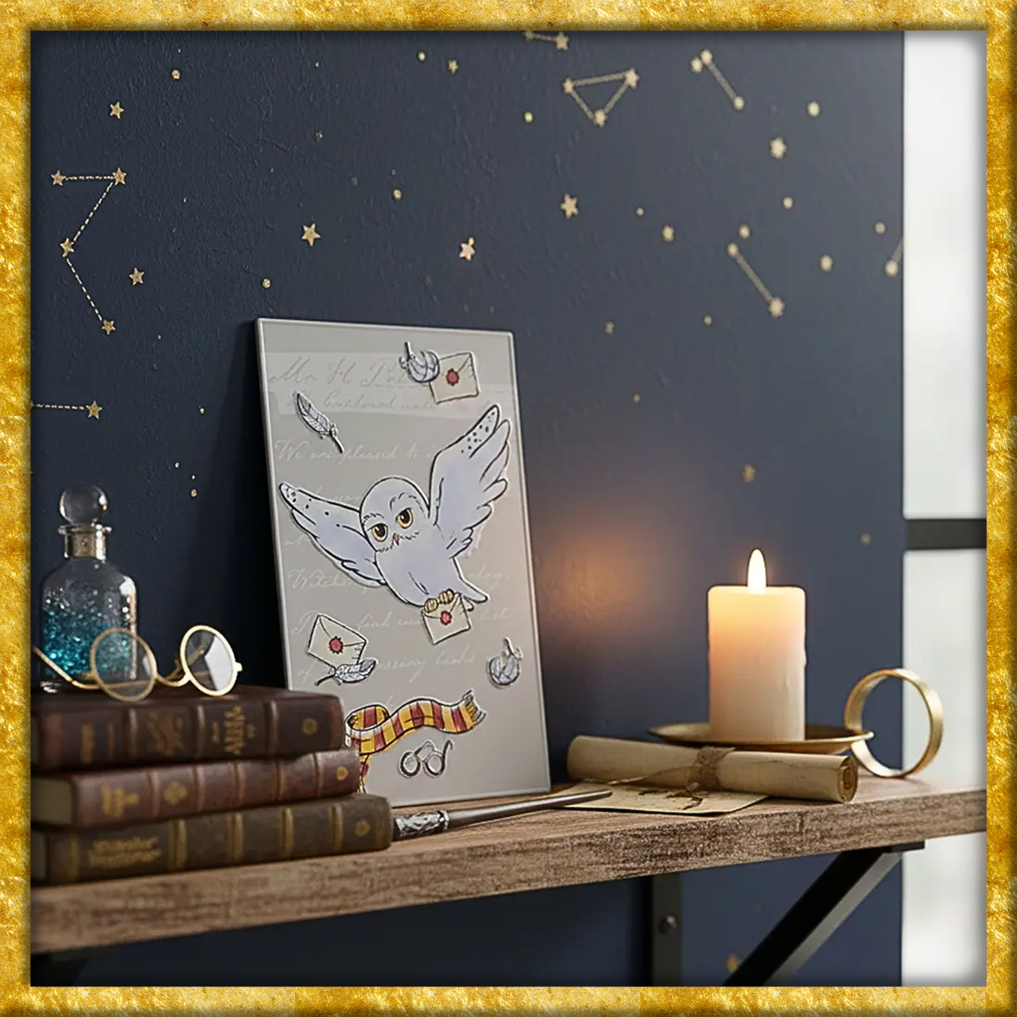 Dieses hochwertige und offiziell lizenzierte Harry Potter Blechschild zeigt Harrys Eule Hedwig. Das Blechschild besitzt an den Ecken eine Ausstanzung zum bequemen Aufhängen. Ein schönes Accessoire zum verschönern eines Kinderzimmers oder einer Wohnung.