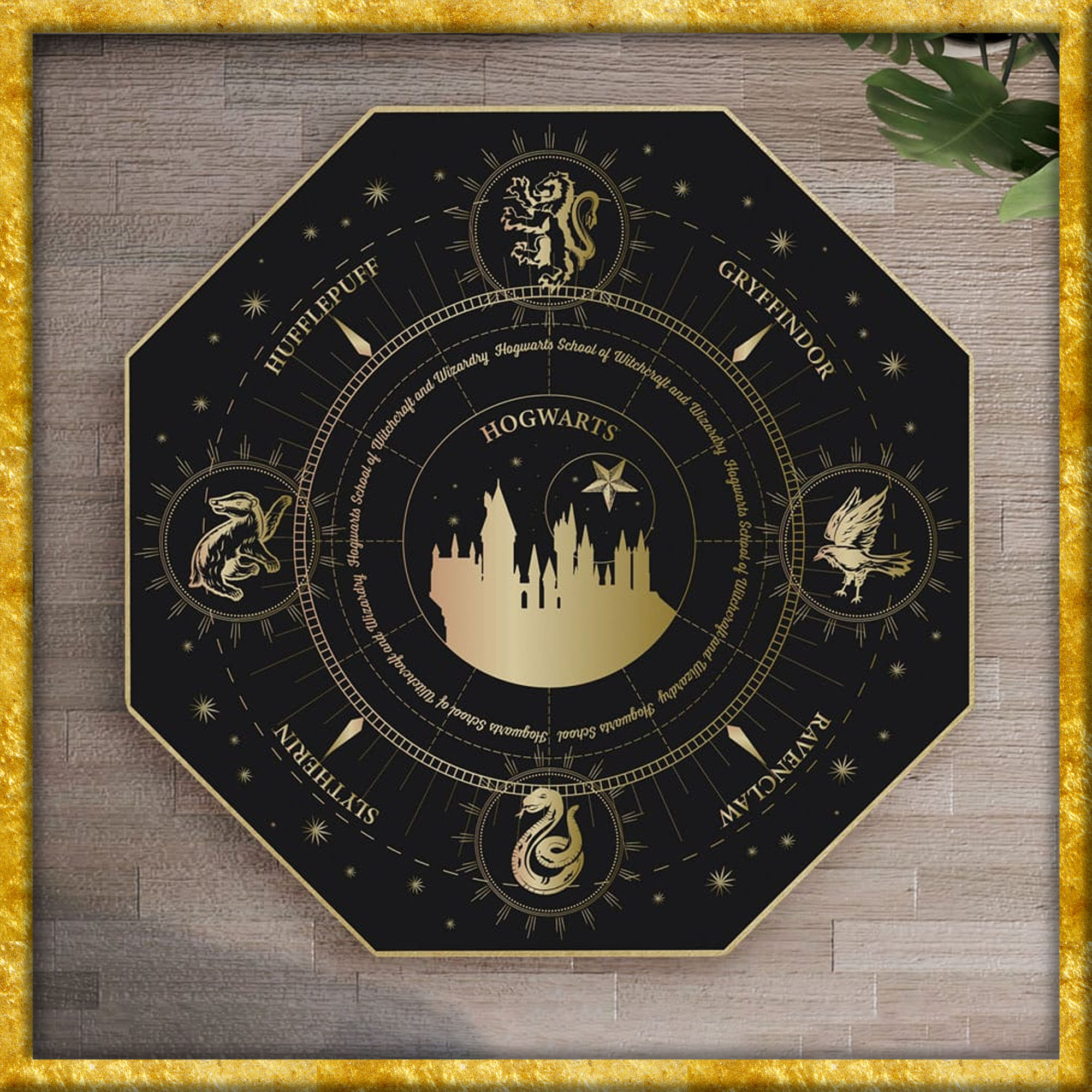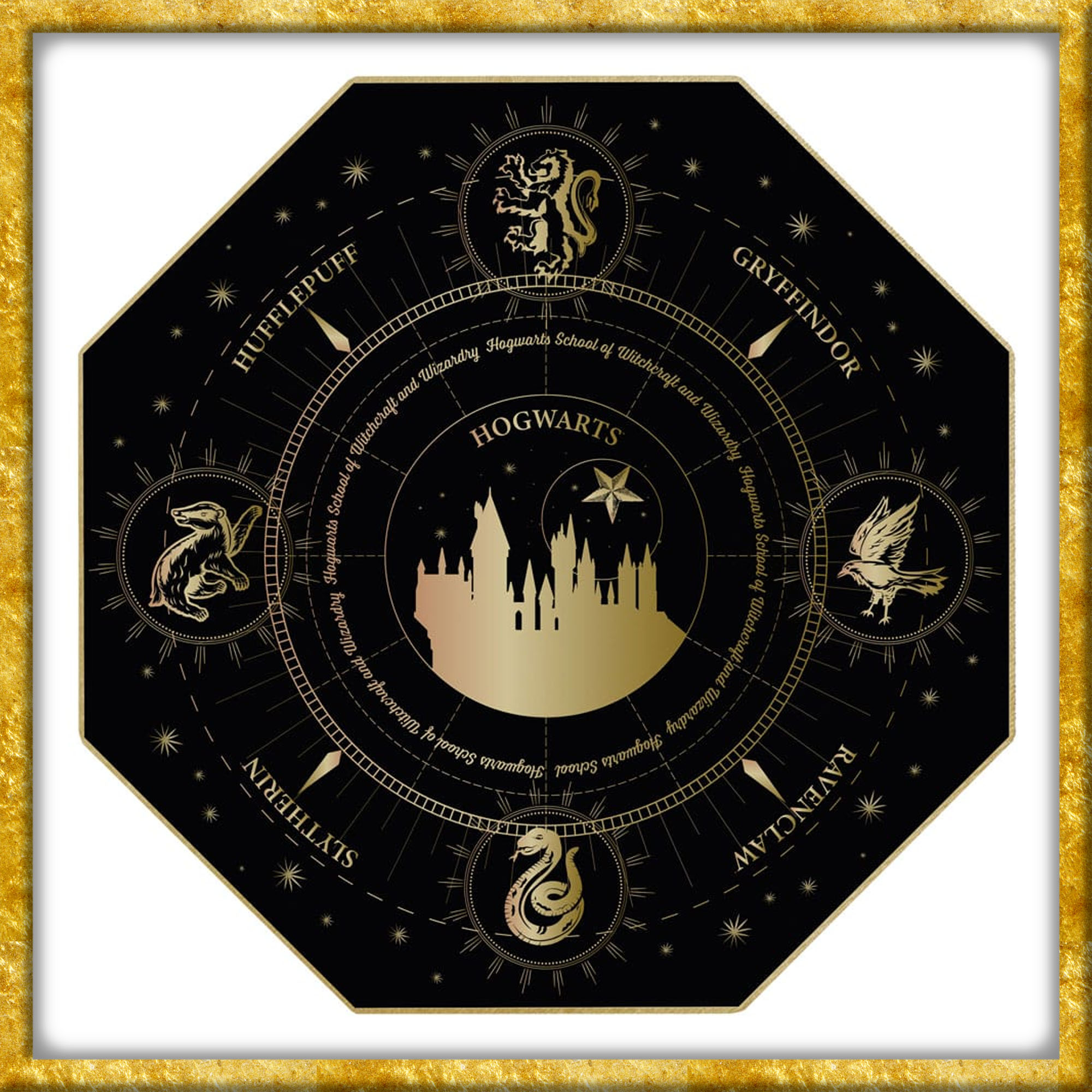 Schloss Hogwarts ist ein grosses, siebenstöckige hohes Gebäude in Schottland, durch Magie unterstützt, mit vielen Türmen und Türmchen und sehr tiefen Kerken. Es wurde im späten Frühmittelalter ca. 993 errichtet von einem magischen Architekten und den vier berühmtesten Zauberern dieses Zeitalters, den Hogwartsgründern Godric Gryffindor, Helga Hufflepuff, Rowena Ravenclaw und Salazar Slytherin. Das Schloss beherbergt die Hogwartsschule für Hexerei und Zauberei, die als die beste Zauberschule in der Welt betrachtet wird. - Quelle Harry Potter Fandom