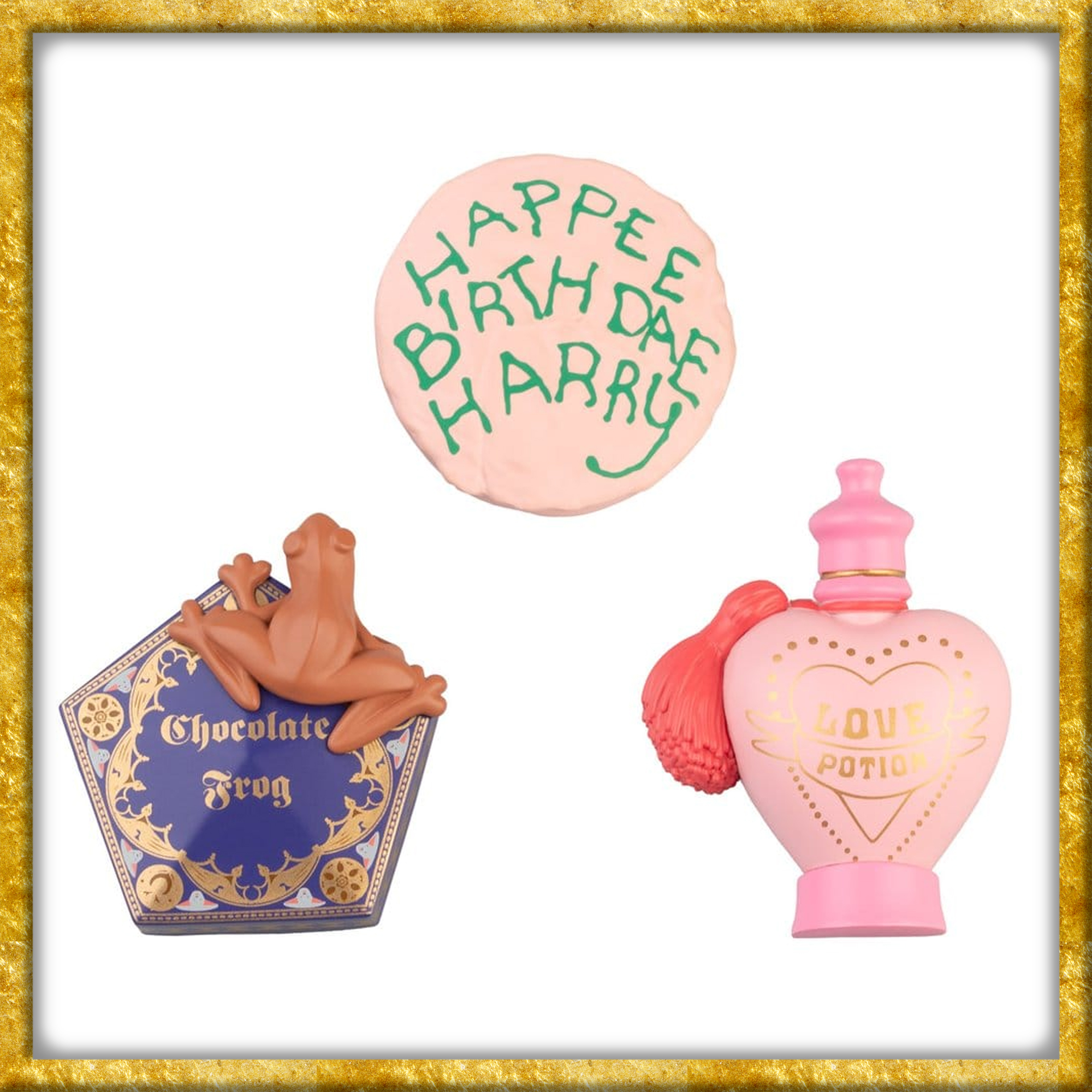 Dieses offiziell lizenzierte Magnet-Set aus der Harry Potter, welches den Liebestrank, eine Packung der beliebten Schokofrösche wie auch Harry's Geburtstagskuchen repräsentiert, wurde aus PVC hergestellt. Mit seinen Massen von 5cm x 6cm x 2cm ist es ein Schmuckstück für jede Magnetwand.