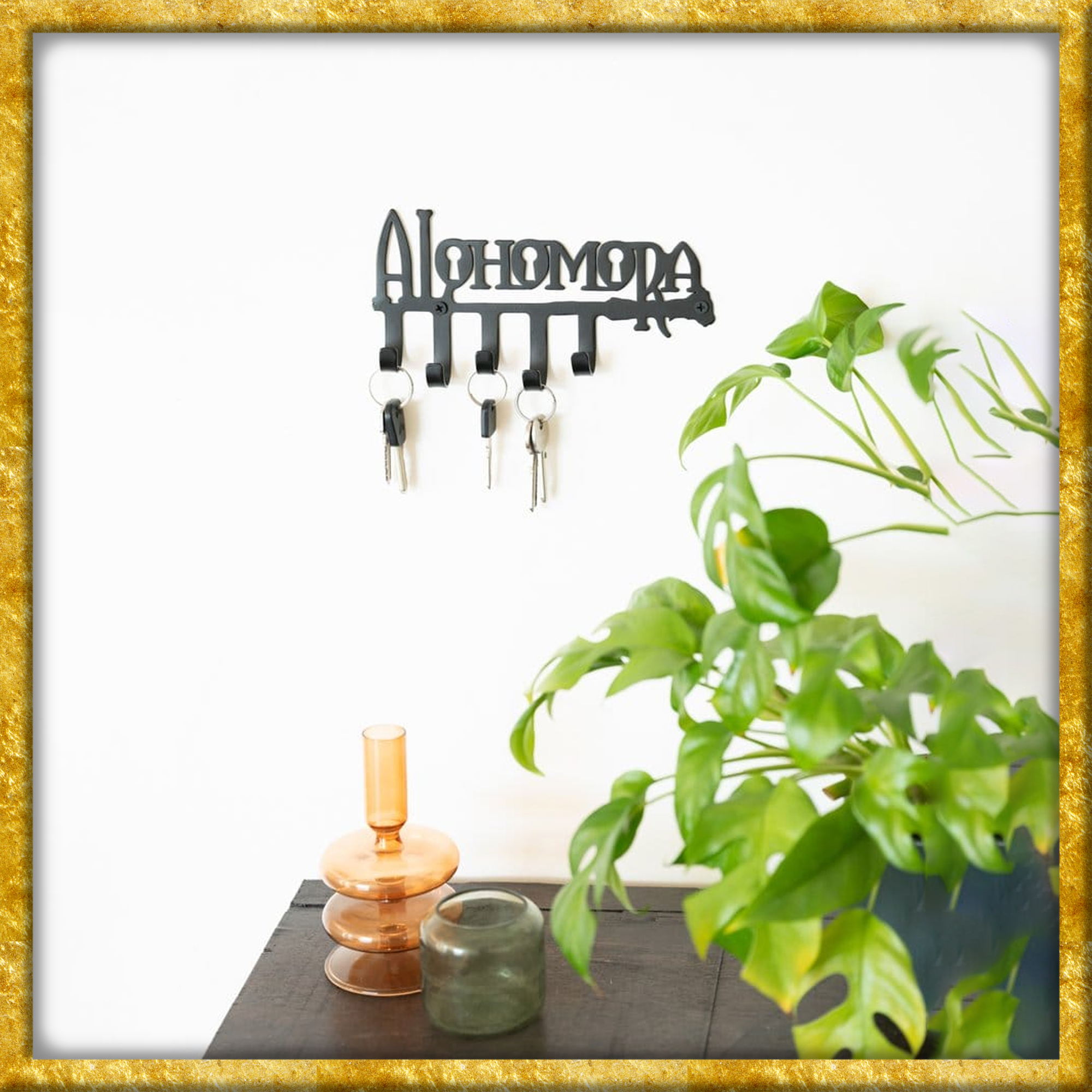 Dieser wundervolle Harry Potter Schlüsselhalter aus Eisen zeigt den bekannten Zauberspruch Alohomora. 5 Haken bieten Platz für Schlüssel, Ringe und vieles mehr. Der Schlüsselhalter wird mit 2 Dübeln und 2 Schrauben zur Wandmontage geliefert. Eine tolle Dekoration für jeden Harry Potter Fan!