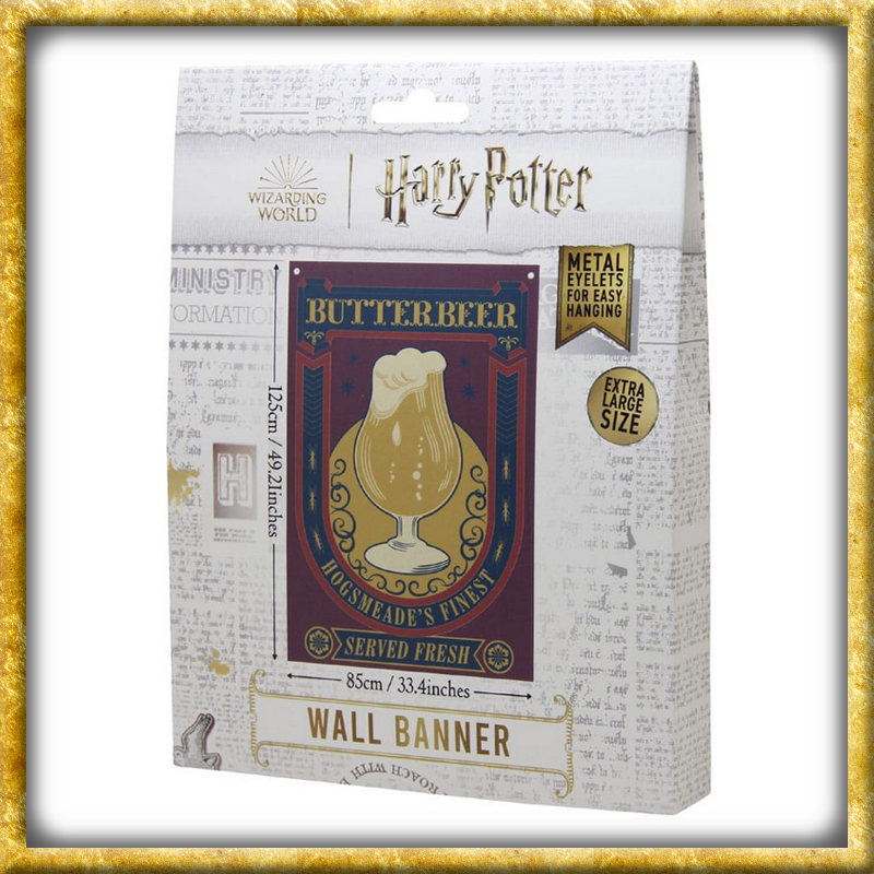 Frisch serviert... macht Euch auf den Weg nach Hogsmeade für einen köstlichen Becher Butterbier! Jedes offiziell lizenzierte Harry Potter-Wandbanner hat eine Grösse von 125 x 85cm und verfügt über Metallösen zum einfachen Aufhängen, wodurch es ideal ist, um Euren Raum zu personalisieren.