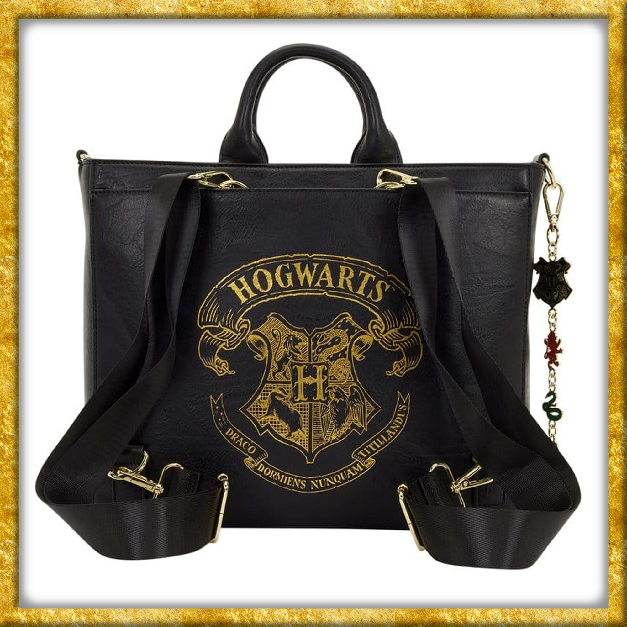 Aus dem Harry Potter Universum erscheint dieser offiziell lizenzierte Rucksack, welcher ebenfalls als Tragetasche verwendet werden kann. Der Brief von Hogwarts, wie auch das Logo der Zauberschule in Gold, zieren die Tasche auf beiden Seiten. Zudem ist ein Stylischer Anhänger mit den Wappen der 4 Häuser angebracht. Der aus Kunstleder gefertigte Rucksack bietet Platz für die nötigsten Habseligkeiten.