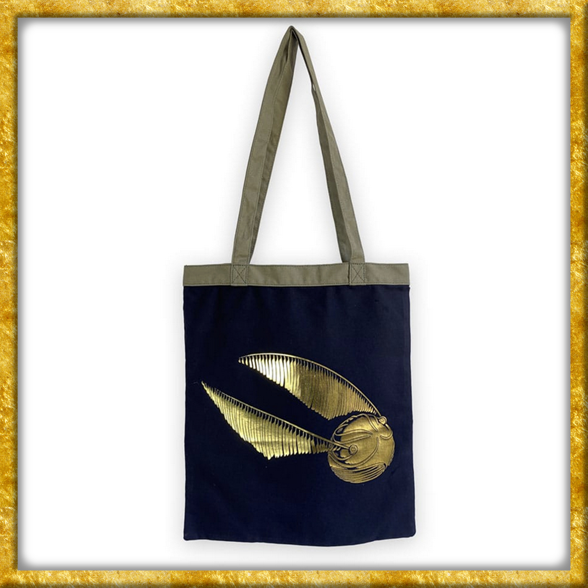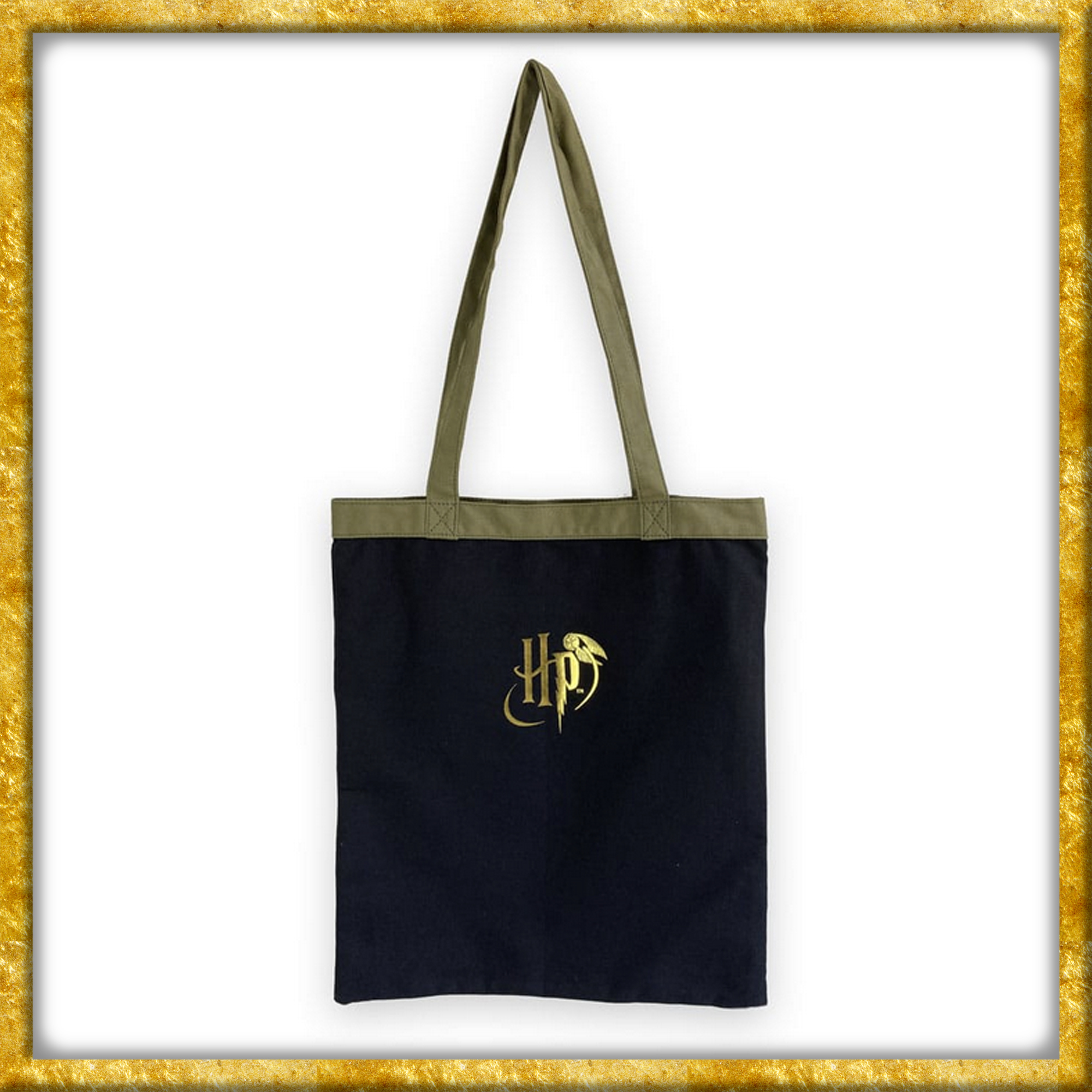 Aus dem Universum von Harry Potter erscheint diese offiziell lizenzierte Tragetasche mit Aufdruck des goldenen Schnatzes aus dem beliebten Spiel Quidditch. Die aus Polyester und Baumwolle gefertigte Tasche, weist Masse von 37cm x 42cm auf. Damit steht dem täglichen Einkaufsvergnügen nichts mehr im Wege.