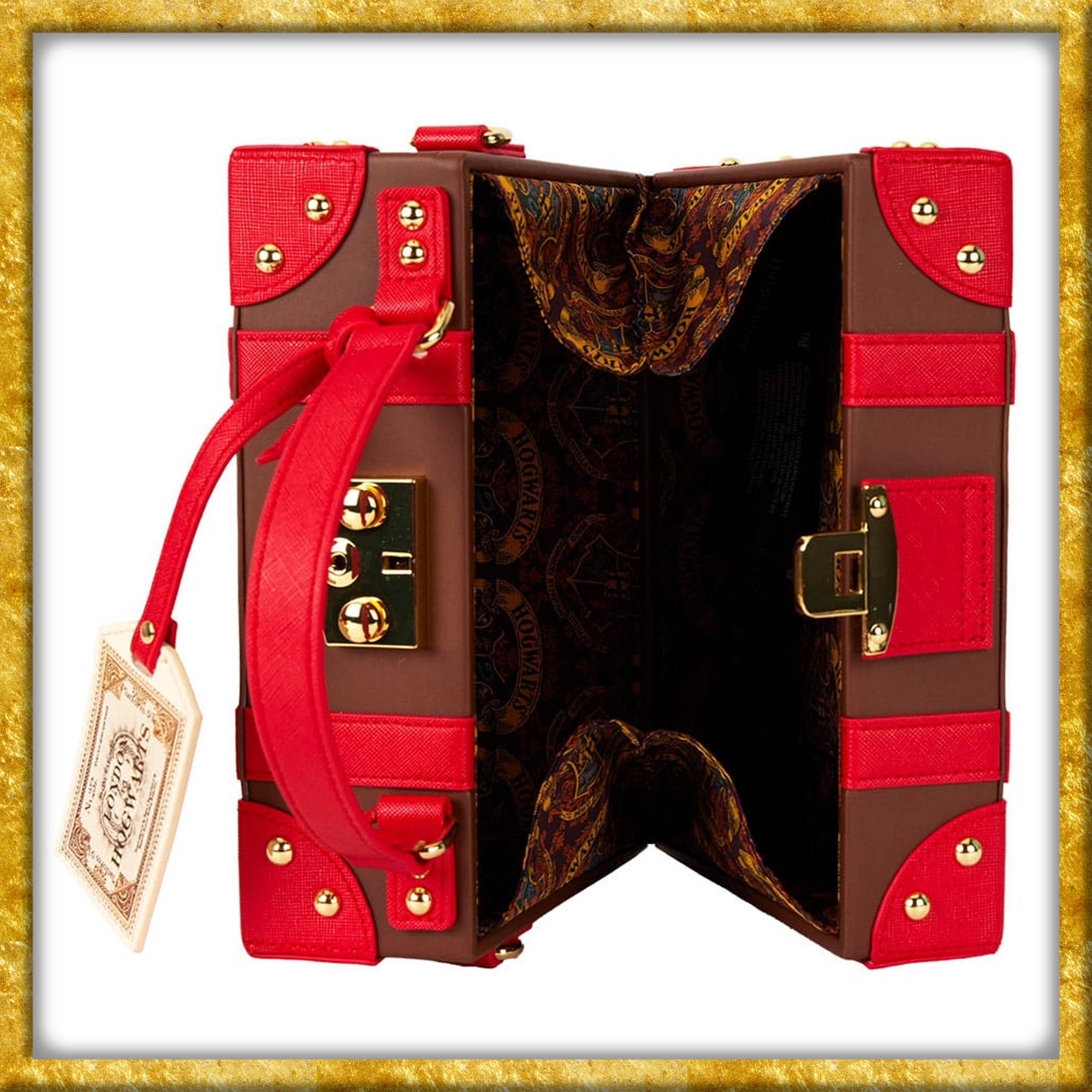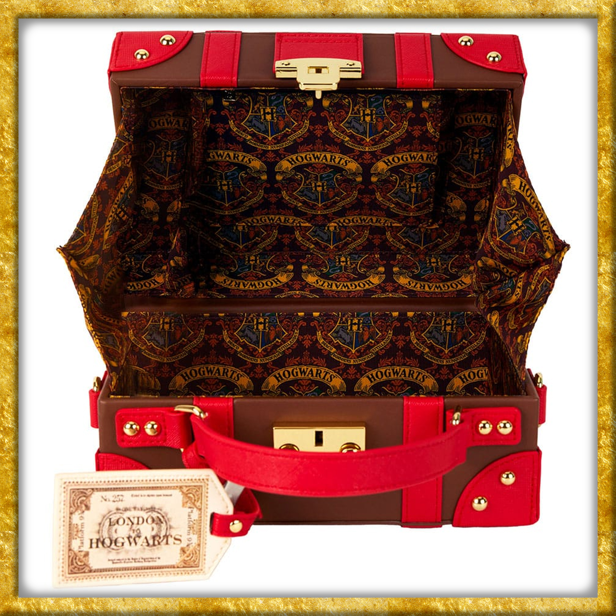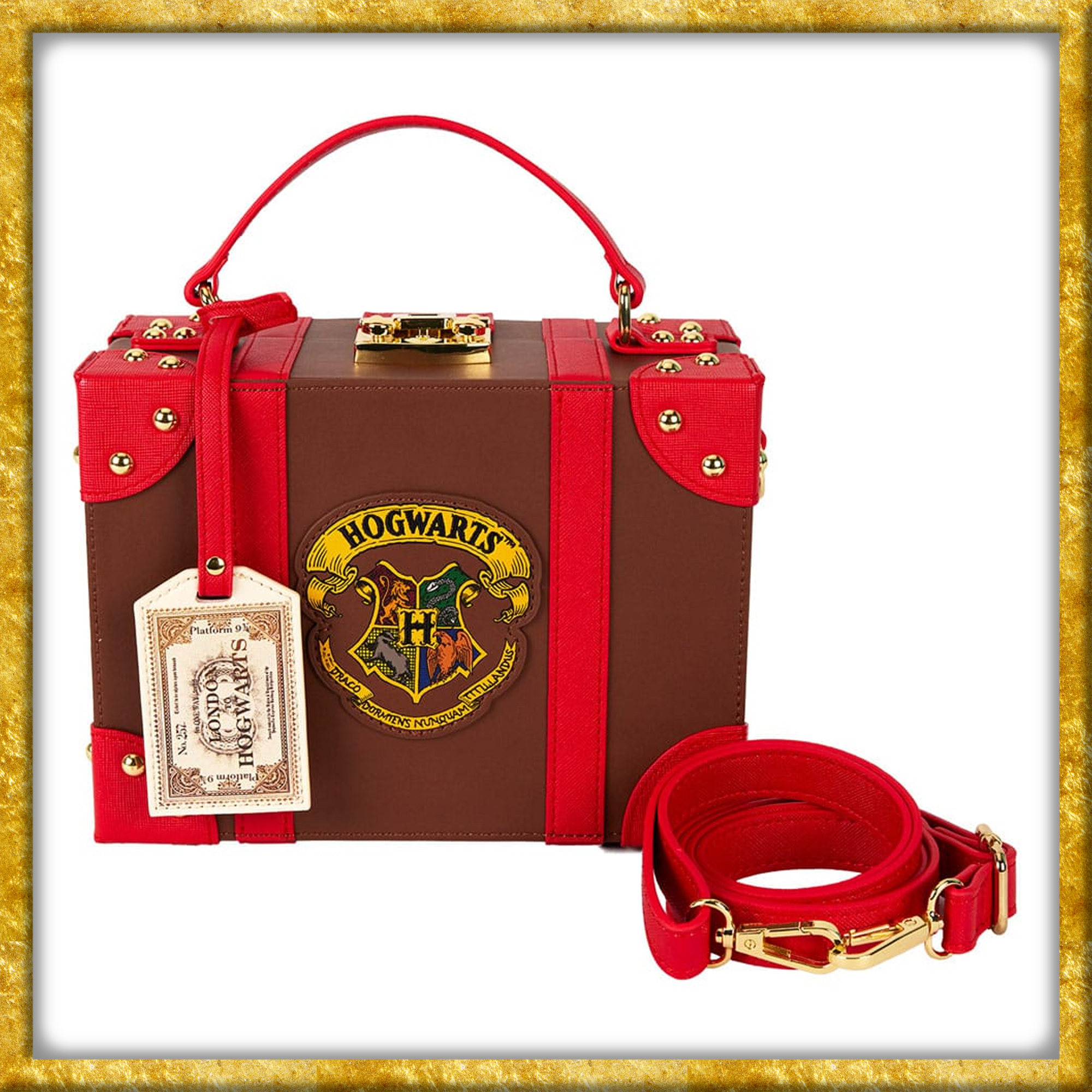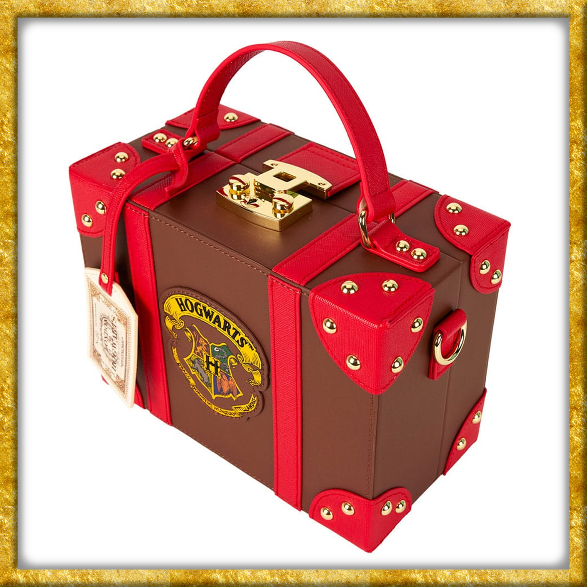 Diese offiziell lizenzierte Umhängetasche aus Harry Potter, erscheint in der Aufmachung eines Reisekoffers, wie ihn die Schüler mit in der Hogwarts Express nehmen. Der aus Kunstleder gefertigte Koffer, ist sowohl 23cm lang wie auch hoch und 10cm breit. So könnt Ihr am Bahnsteig jedem die Schau stehlen.