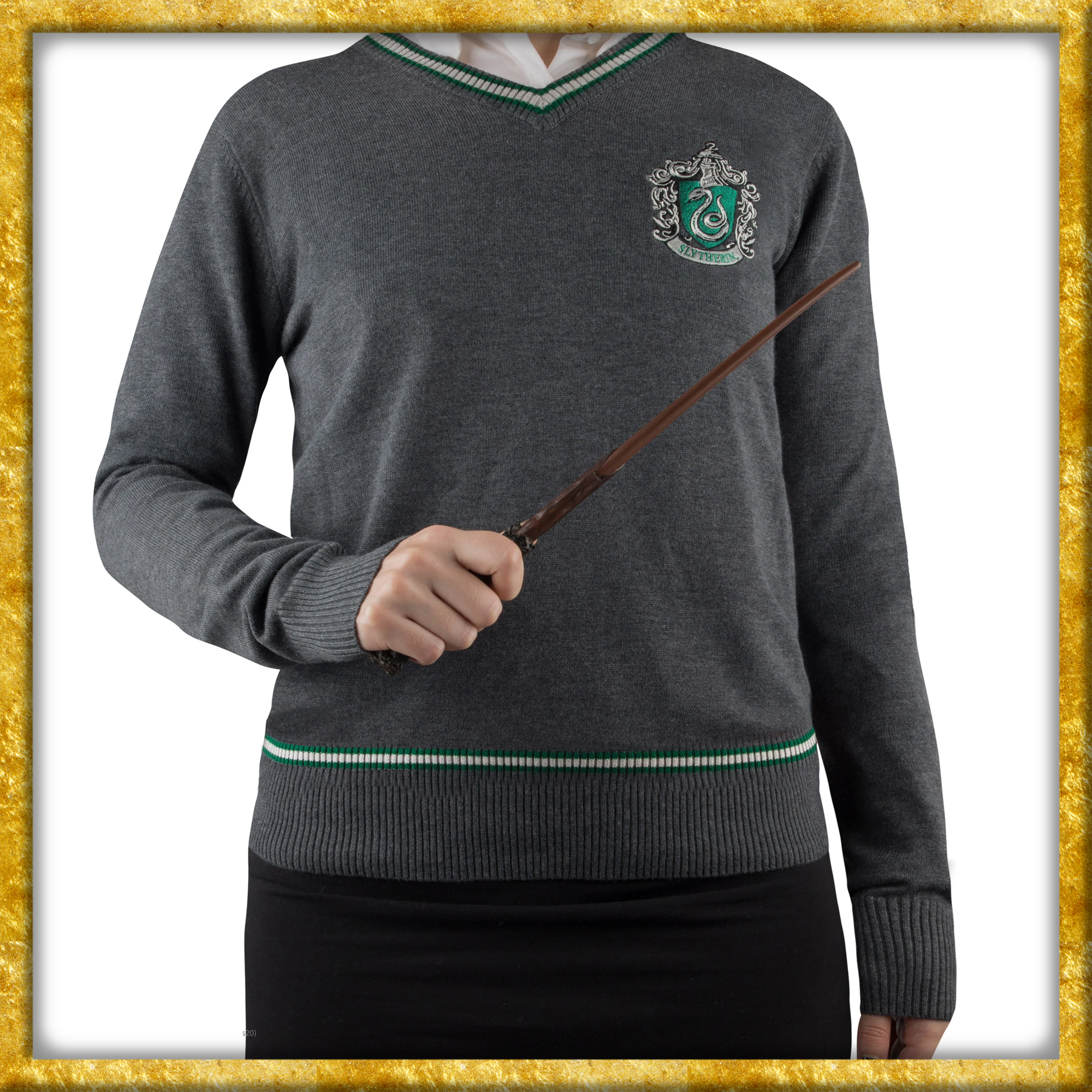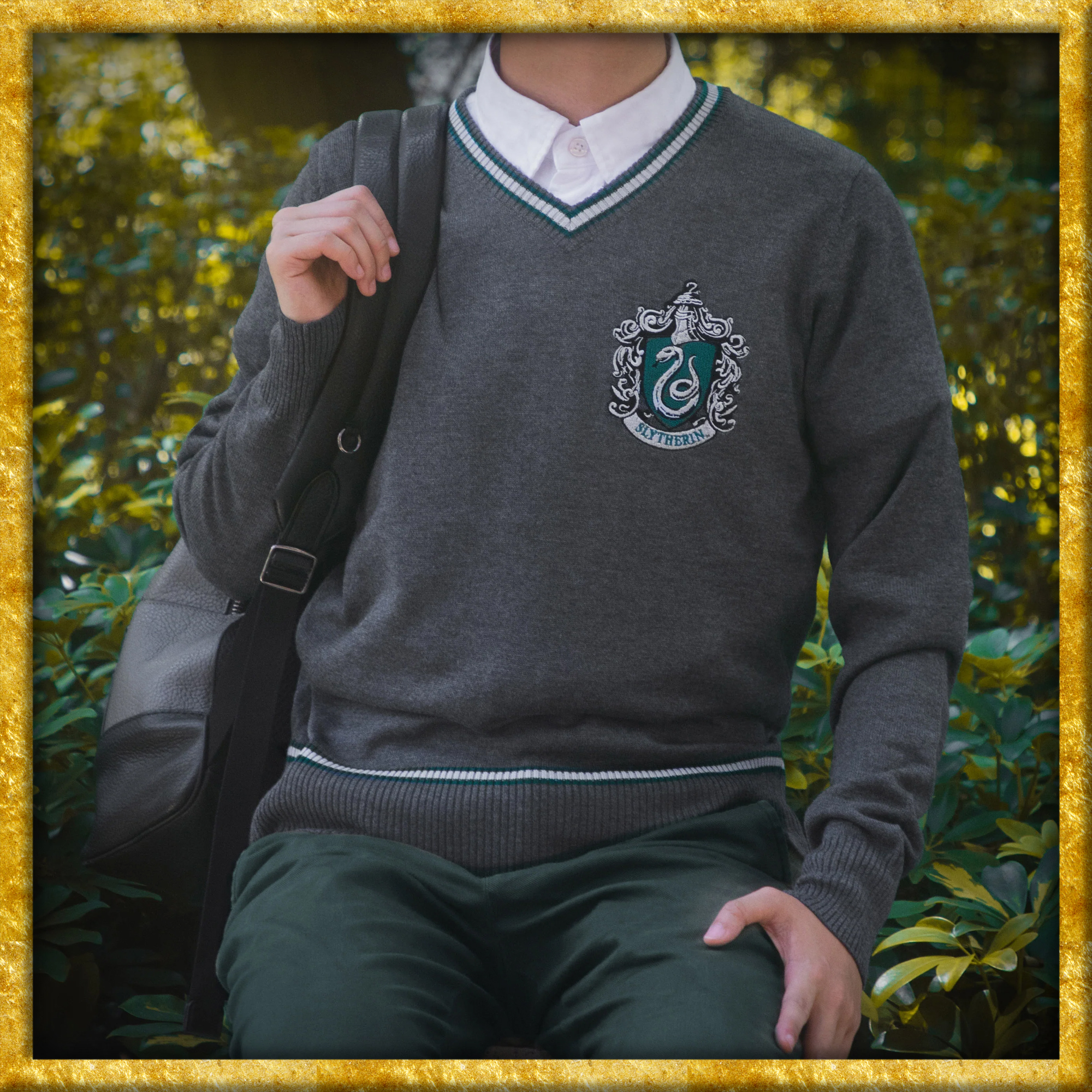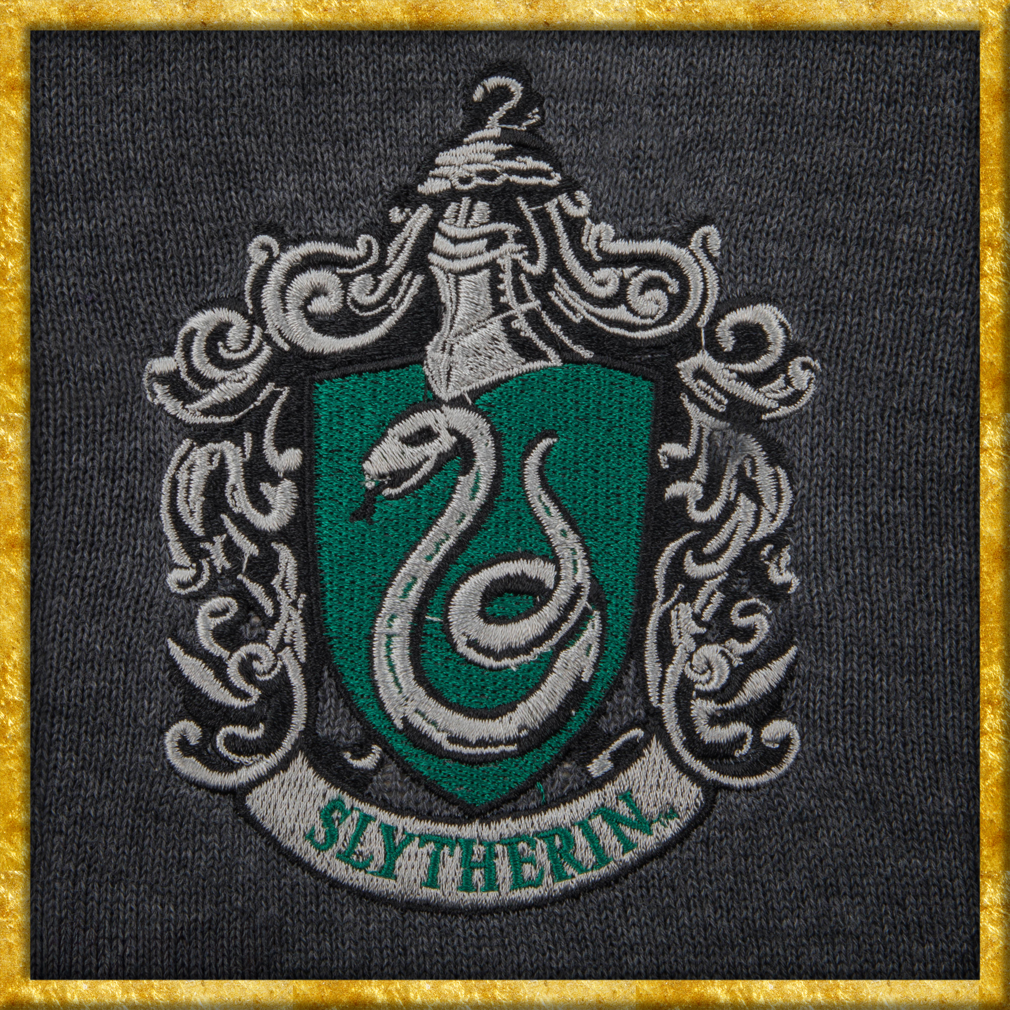 Zeige deinen Stolz auf das ehrgeizigste Haus von Hogwarts mit diesem hochwertigen Slytherin-Pullover, wie er aus der Harry Potter-Filmreihe bekannt ist. Mit seinem klassischen V-Ausschnitt und dem fein gestickten Slytherin-Wappen verbindet er magische Authentizität mit zeitlosem Stil.