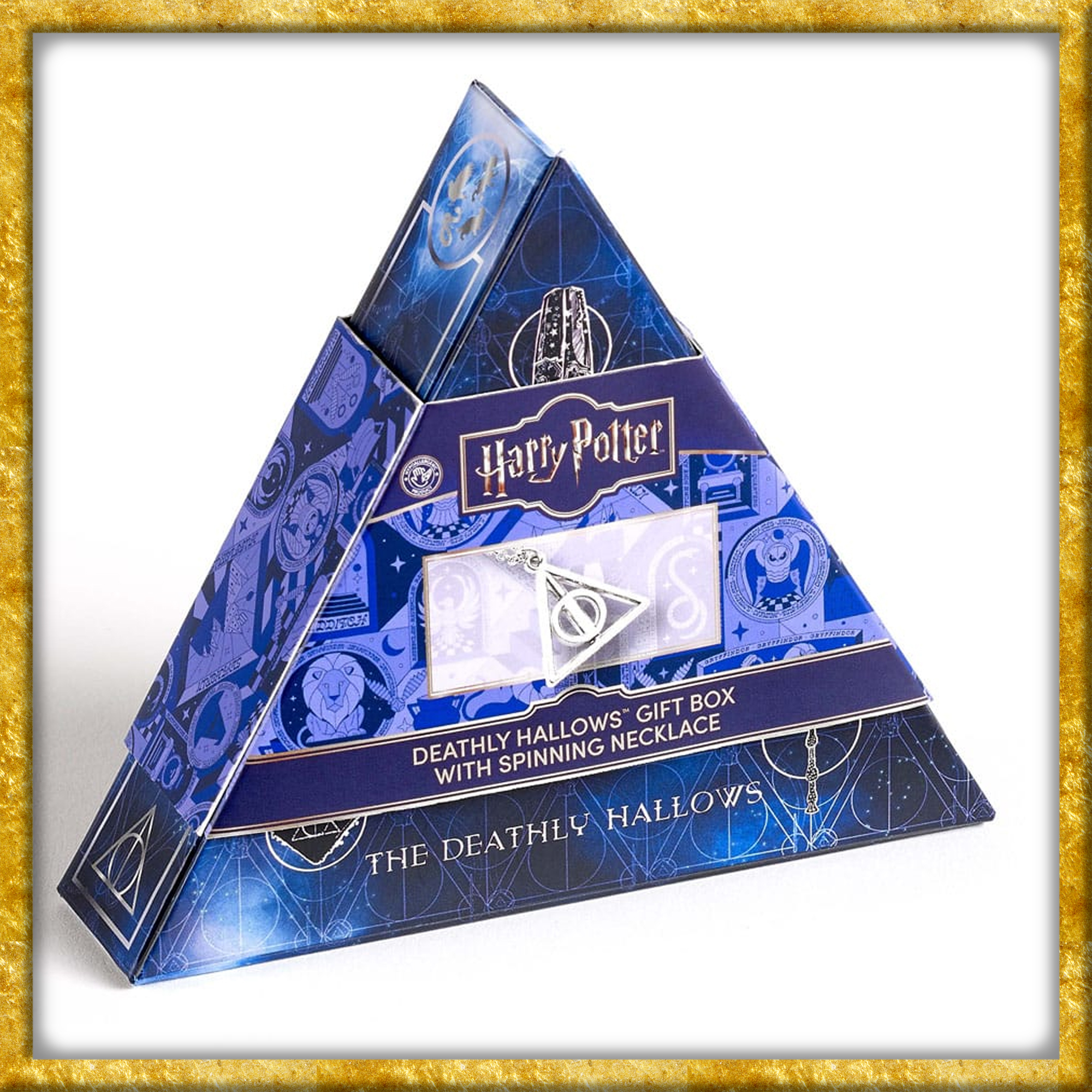 Aus Harry Potter erscheint dieses originelle Geschenkset, ganz dem Symbol der Heilgtümer des Todes gewidmet. Das Schmuck-Set enthält eine 60cm lange hypoallergene Halskette, welche das Symbol der Heiligtümer zeigt. Das Set wird in einer bedruckten Box geliefert.