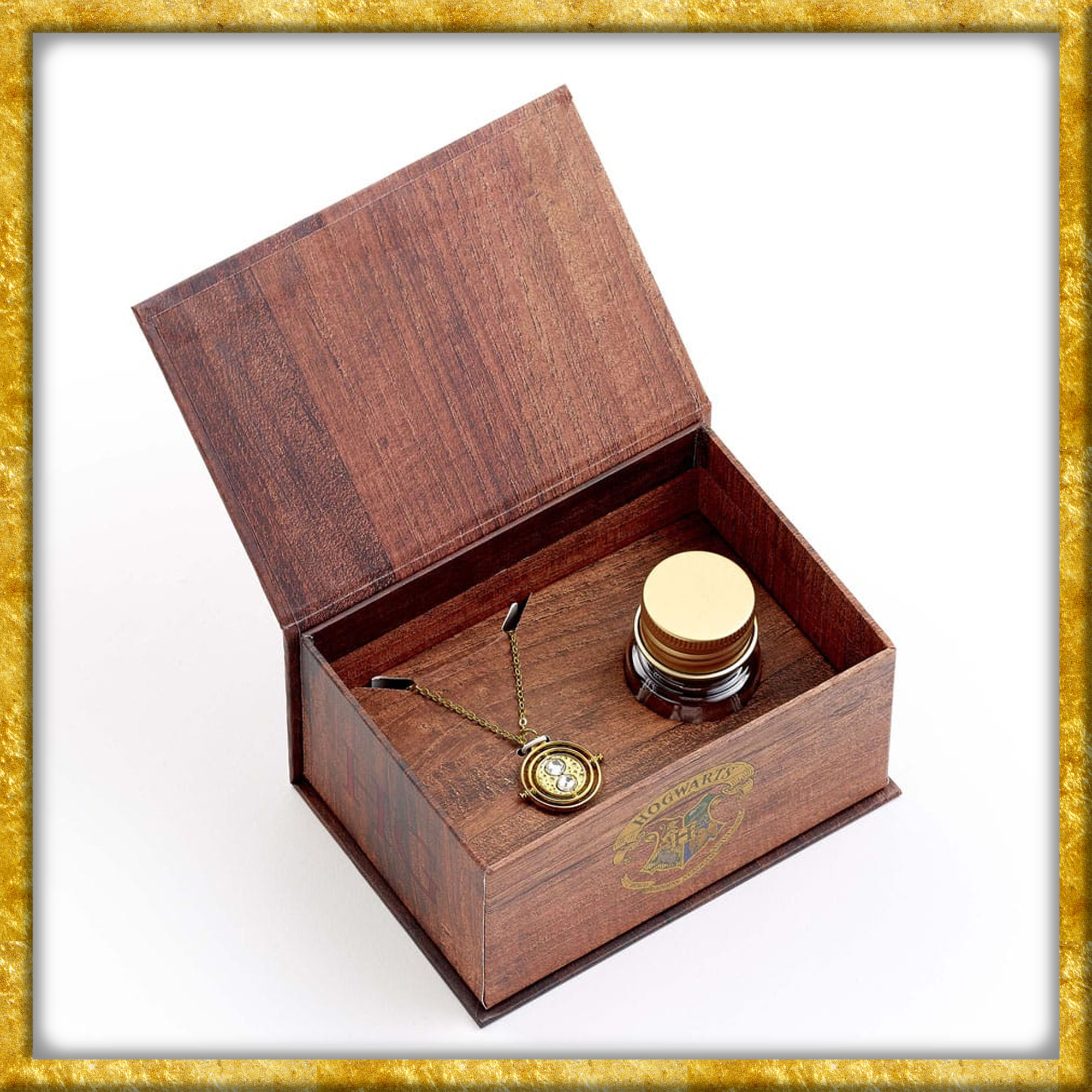 Aus Harry Potter erscheint dieses originelle Geschenkset, ganz der klugen Hexe Hermine und Ihrem Zeitumkehrer gewidmet. Das Schmuck-Set enthält eine 40cm lange hypoallergene Halskette mit einem Zeitumkehrer Anhänger ein Paar Ohringe, ebenfalls in Darstellung der Zeitumkehrer. Das Set wird in einer bedruckten Box geliefert.