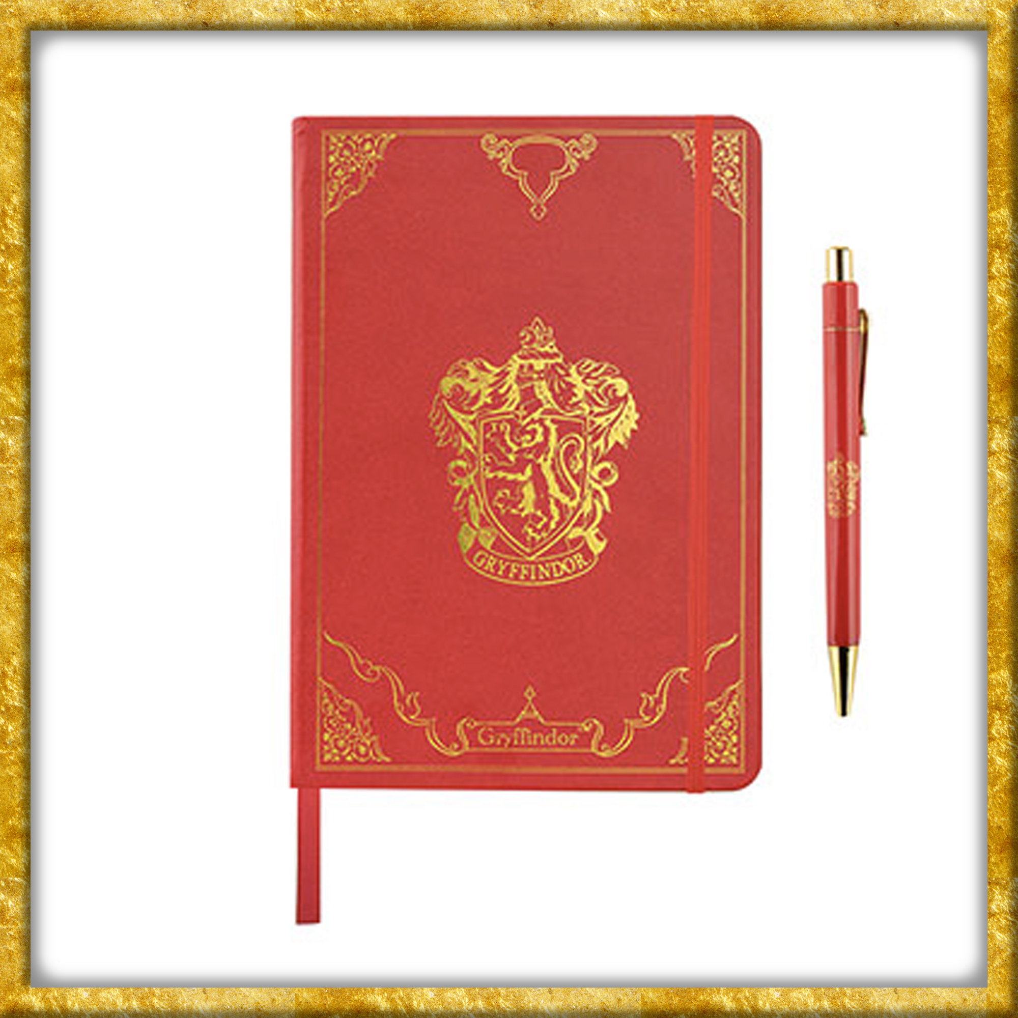 Offiziell lizenziertes Harry Potter Notizbuch in Rot auf welchem das Wappen des Hauses Gryffindor abgebildet ist. Das schöne Notizbuch ist 27cm lang und 21.6cm breit. Dazu wird ein passender Stift, auf welchem ebenfalls das Wappen Gryffindor ziert, mitgeliefert.