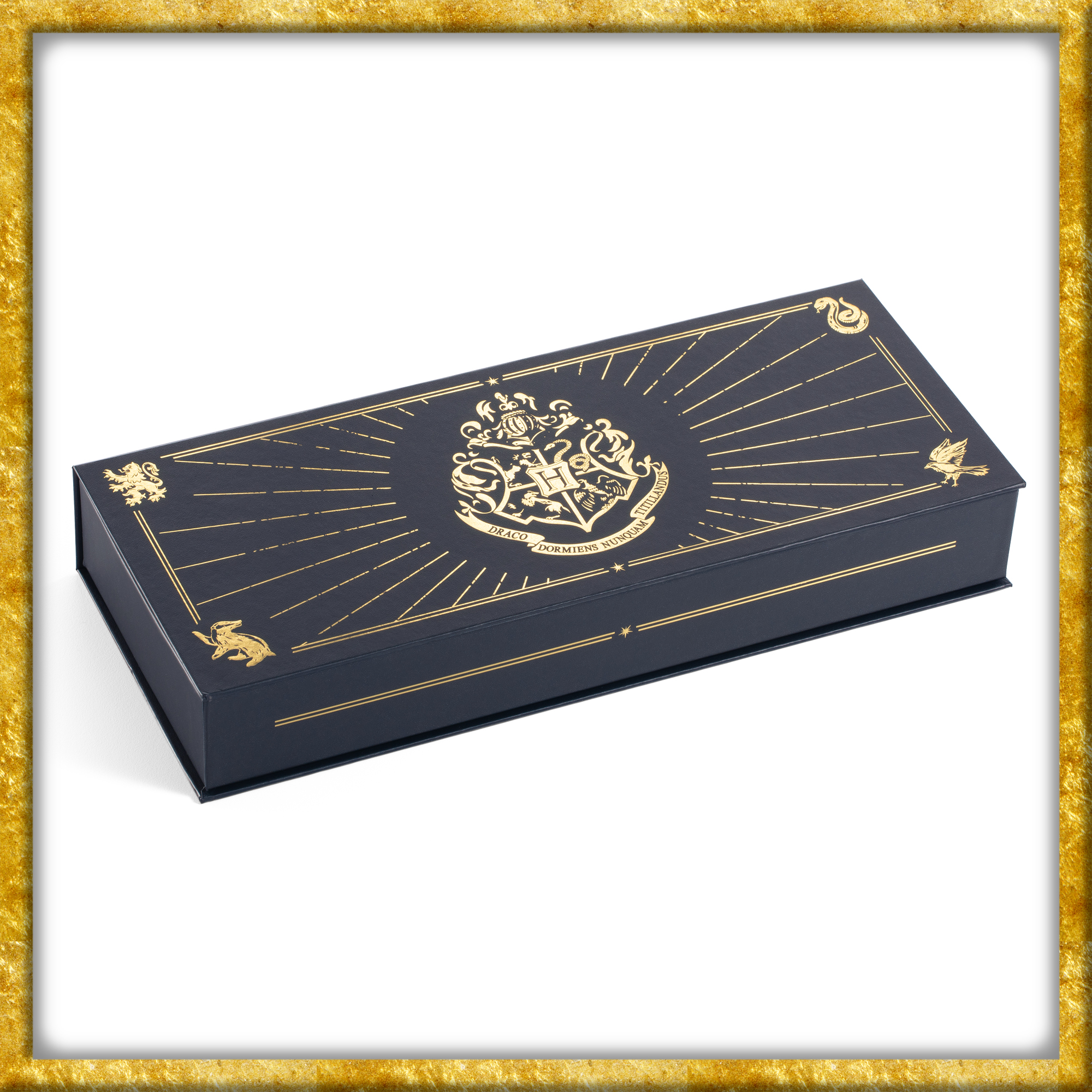 Geliefert wird das Schreibfeder-Set in einer edlen Aufbewahrungsbox aus Kunstleder, gestaltet im Stil der berühmten Schule für Hexerei und Zauberei. So ist nicht nur alles sicher verstaut, sondern auch ein echtes Sammlerstück geschaffen, das in keinem Harry-Potter-Regal fehlen darf. In Kombination mit einem Wachssiegel-Set wird daraus das ultimative Erlebnis für stilvolle, magische Briefe.