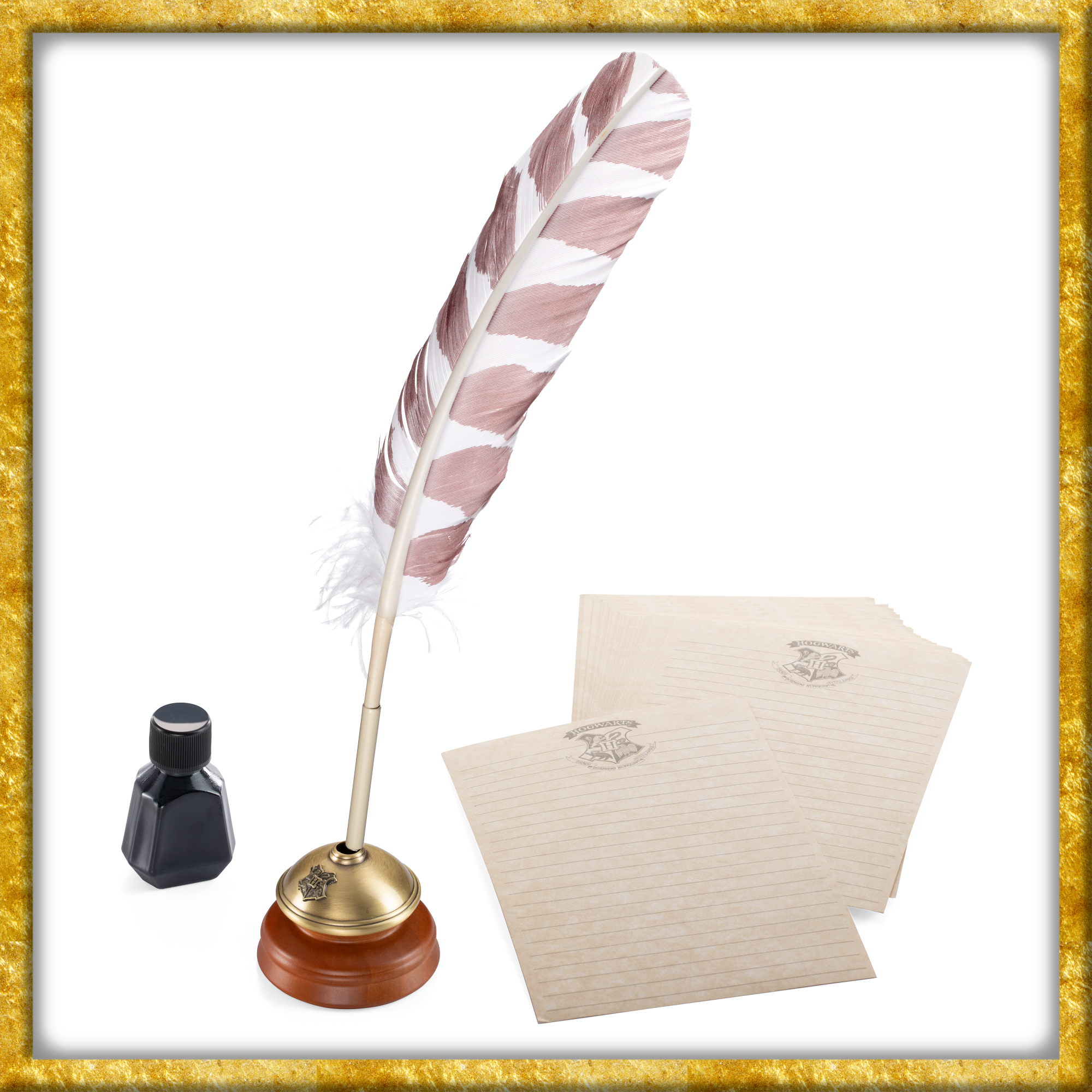 Erwecke die Magie alter Zeiten und lass deine Worte fliegen wie mit der Eulenpost. Mit diesem Harry Potter Schreibfeder-Set tauchst du ein in die Welt der Hexen und Zauberer und machst jede Notiz, jeden Brief und jede Geschichte zu etwas ganz Besonderem.